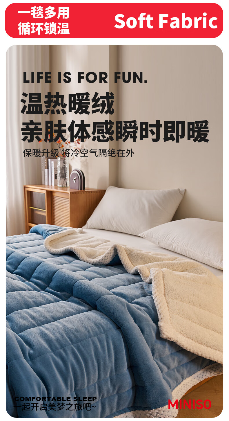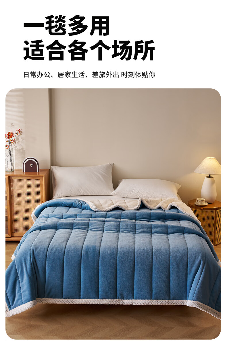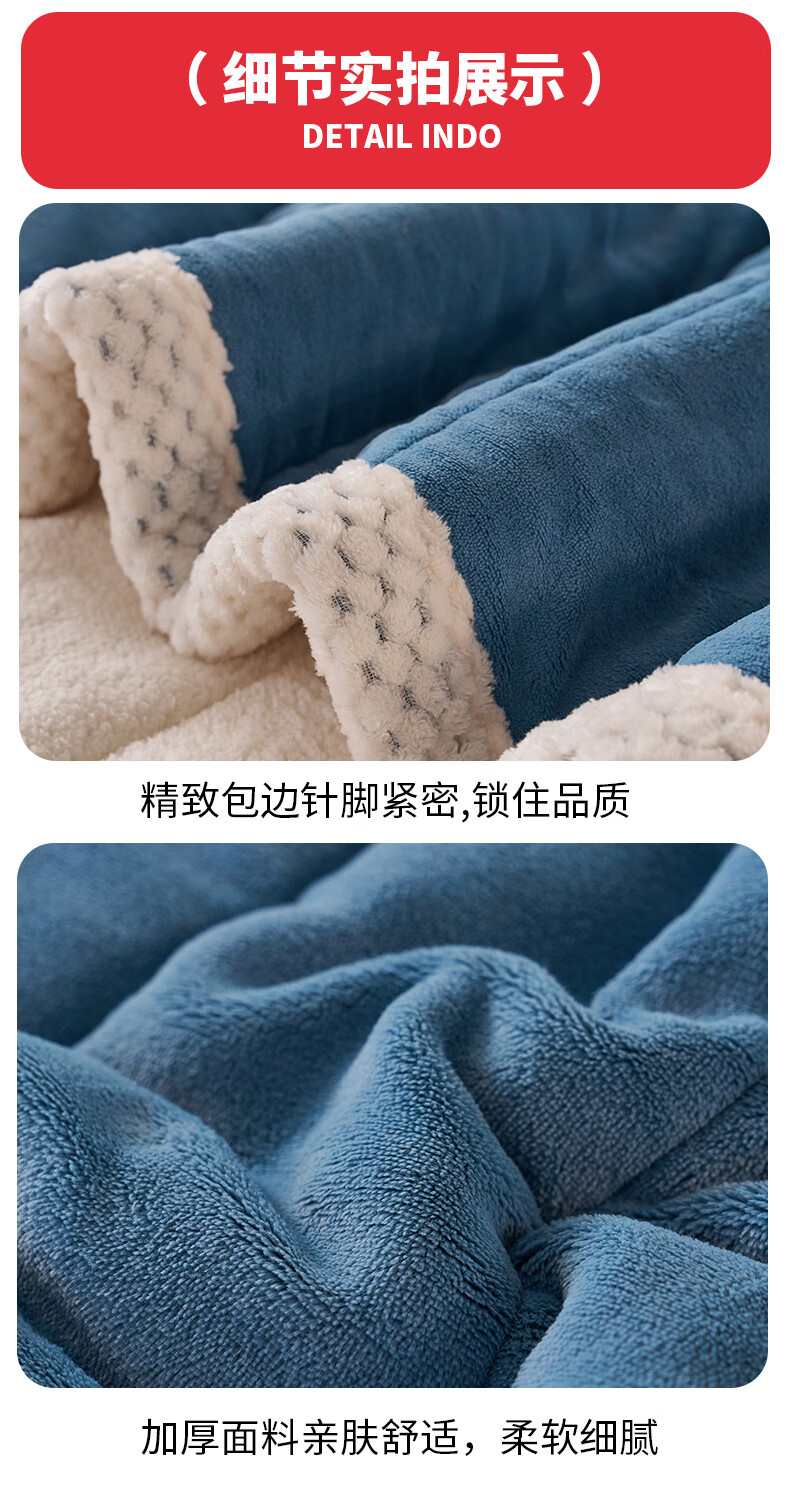 名创优品珊瑚绒毛毯三层冬季加厚加绒午休盖毯空调午睡毯办公室小毯子披肩 深灰+白【三层加厚保暖抗寒】 午睡毯:120*200cm