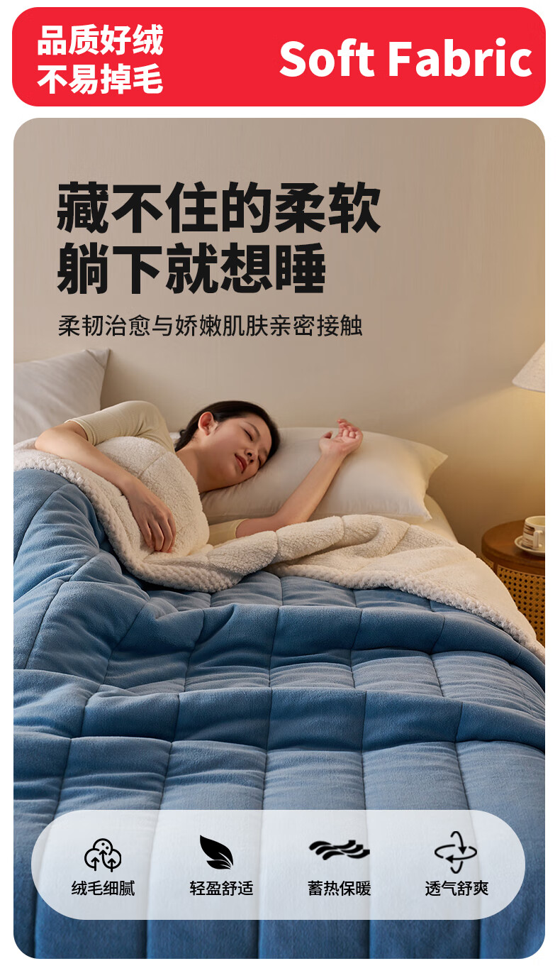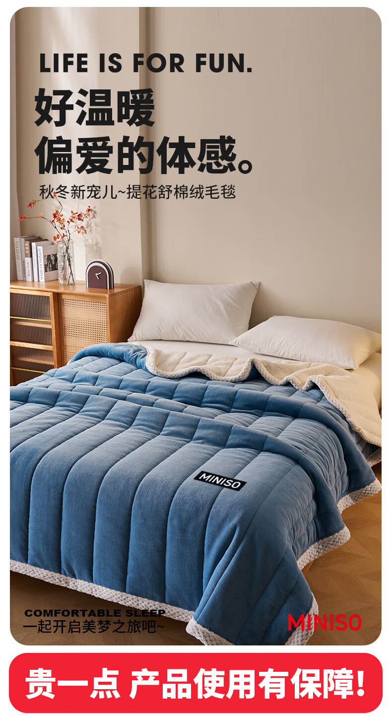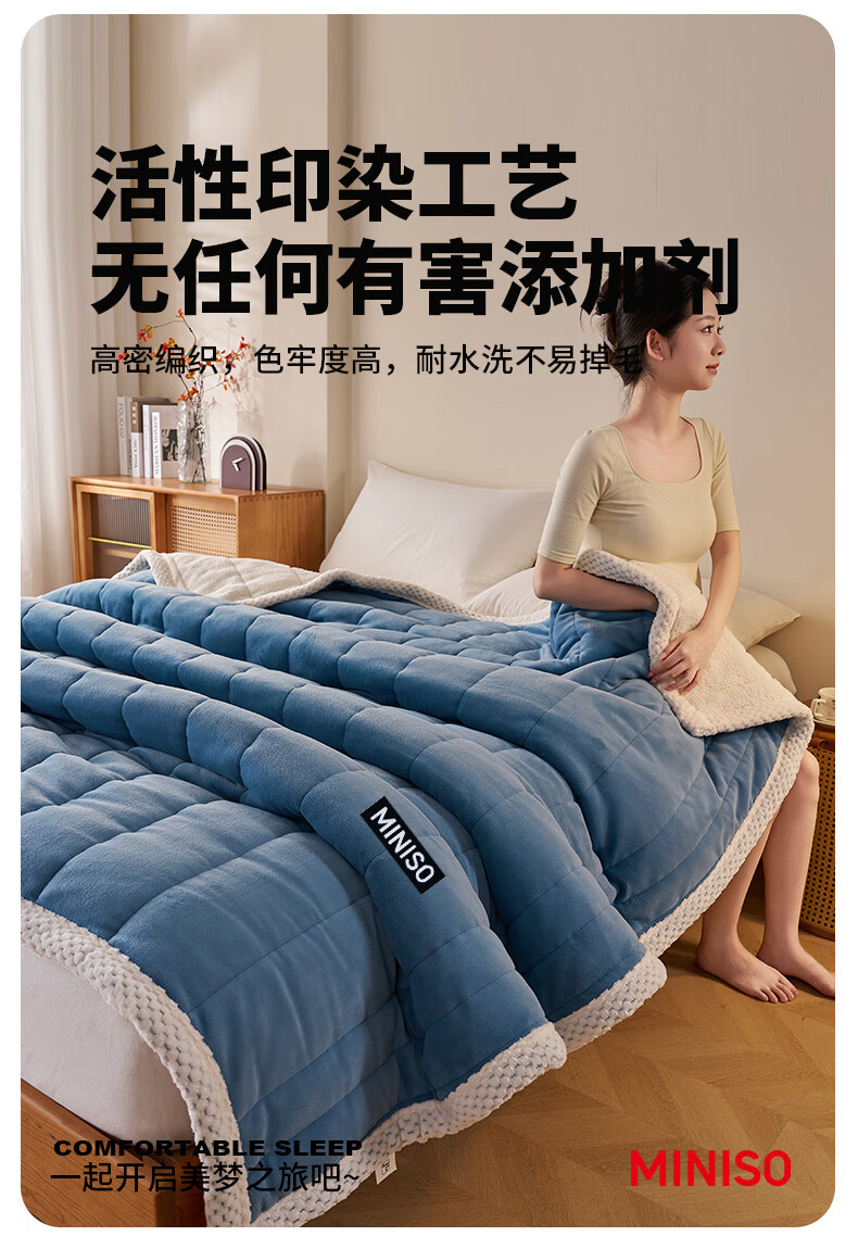 名创优品珊瑚绒毛毯三层冬季加厚加绒午休盖毯空调午睡毯办公室小毯子披肩 深灰+白【三层加厚保暖抗寒】 午睡毯:120*200cm