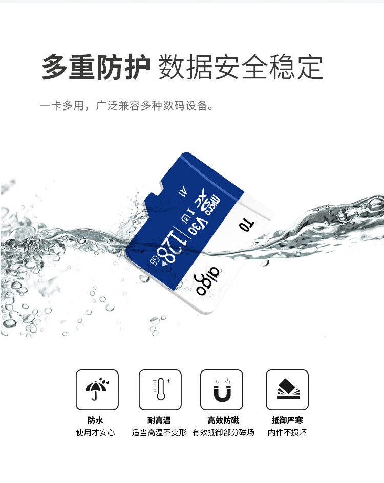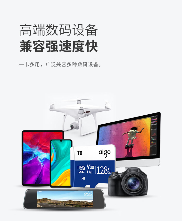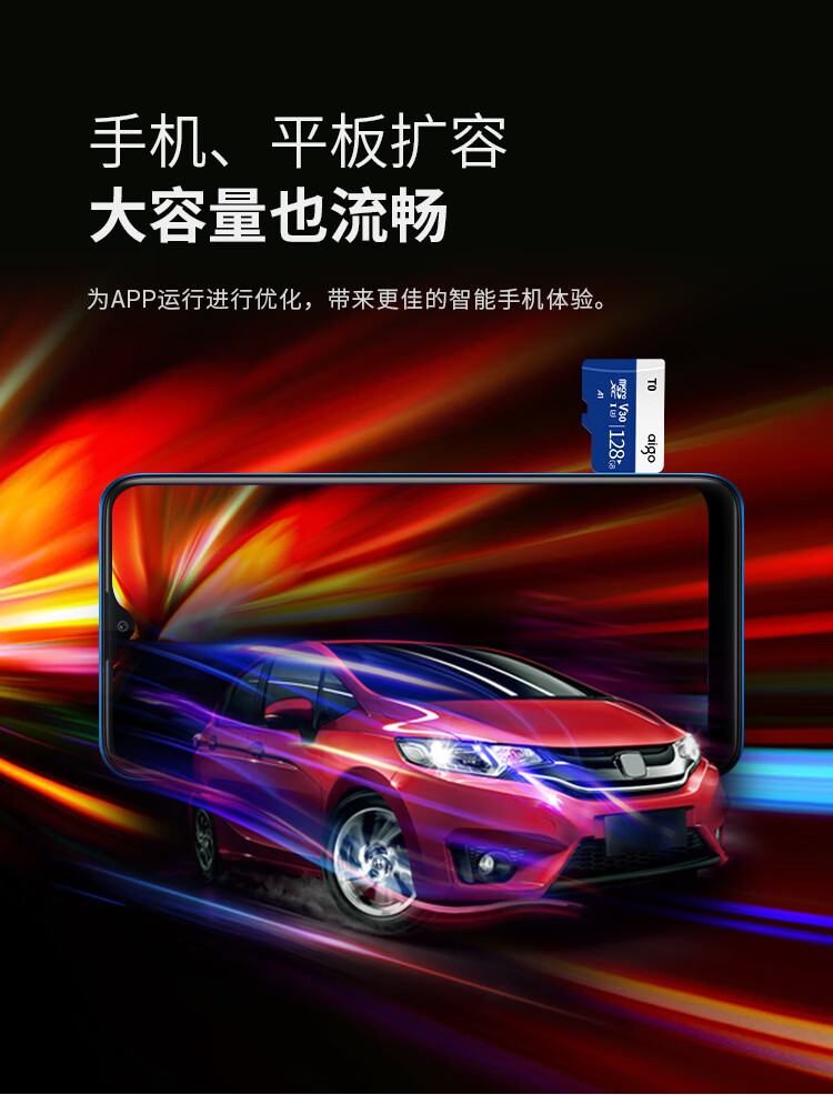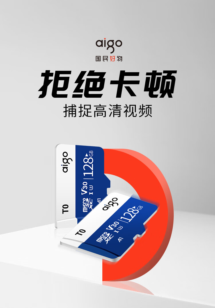 爱国者(aigo)128GB内存卡TF(MicroSD)存储卡A1 U3 V30 4K行车记录仪&监控摄像头手机平板相机游戏机储存卡 T0