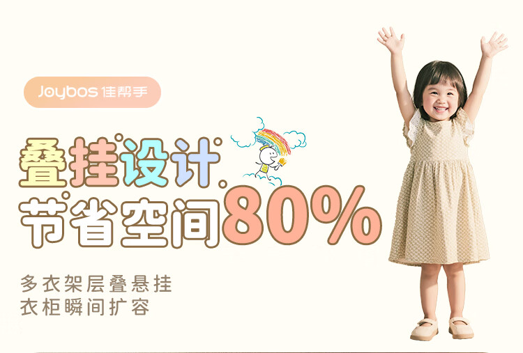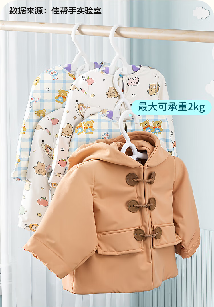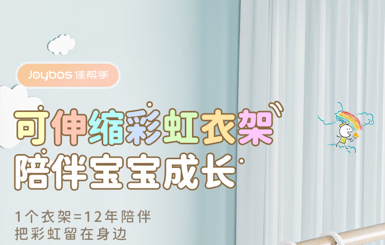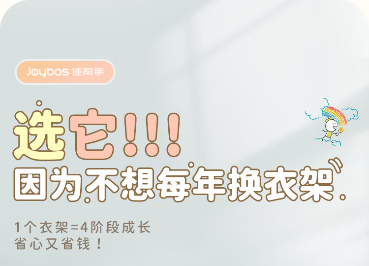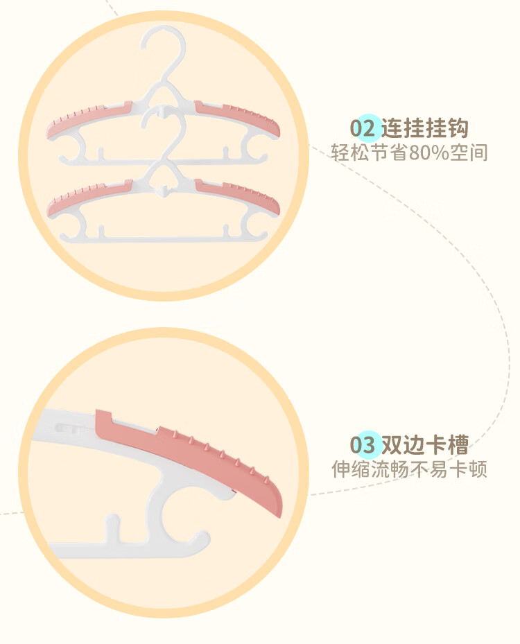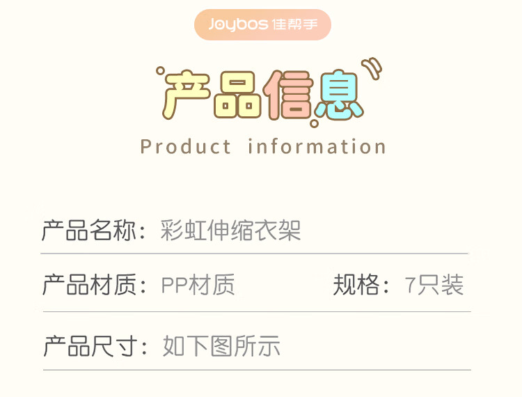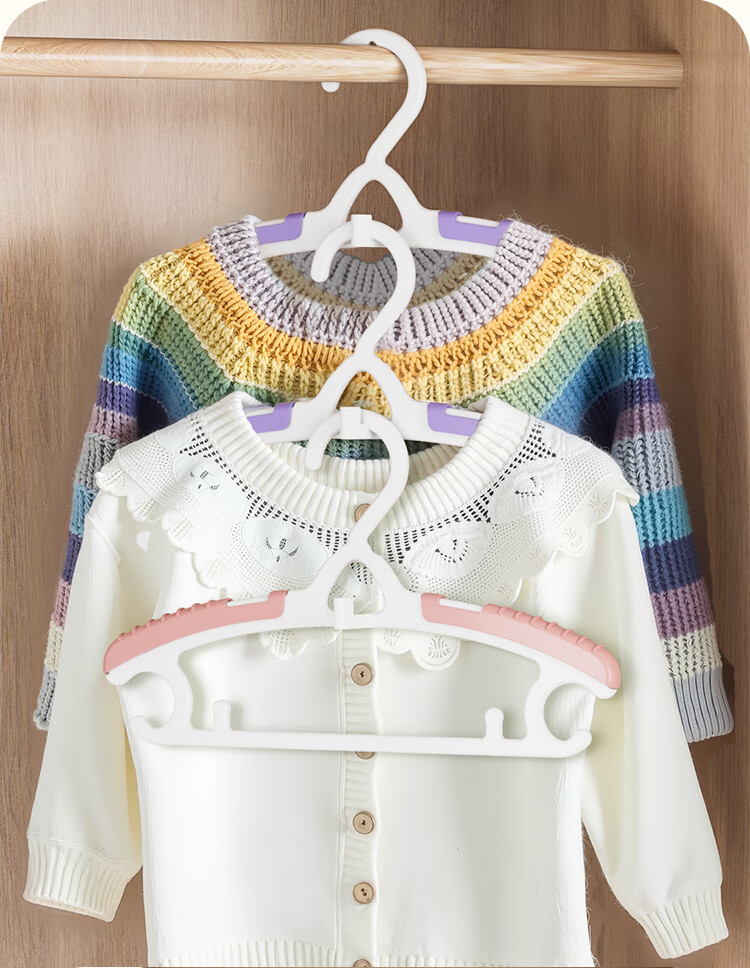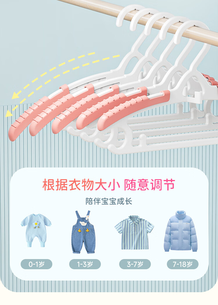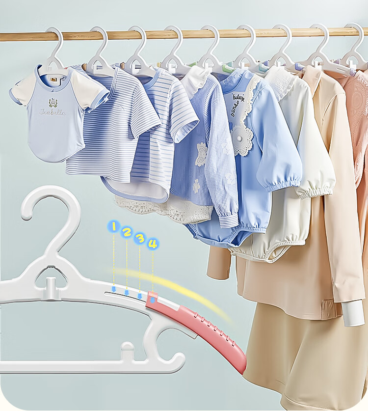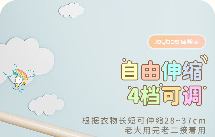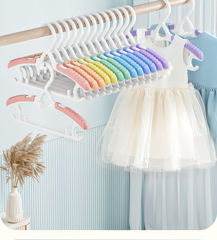 佳帮手儿童衣架 可伸缩宝宝婴儿晾衣架衣柜衣服挂架可叠挂彩虹7色14只