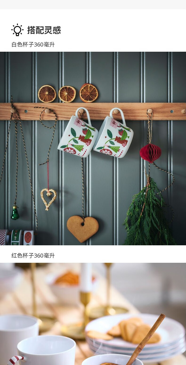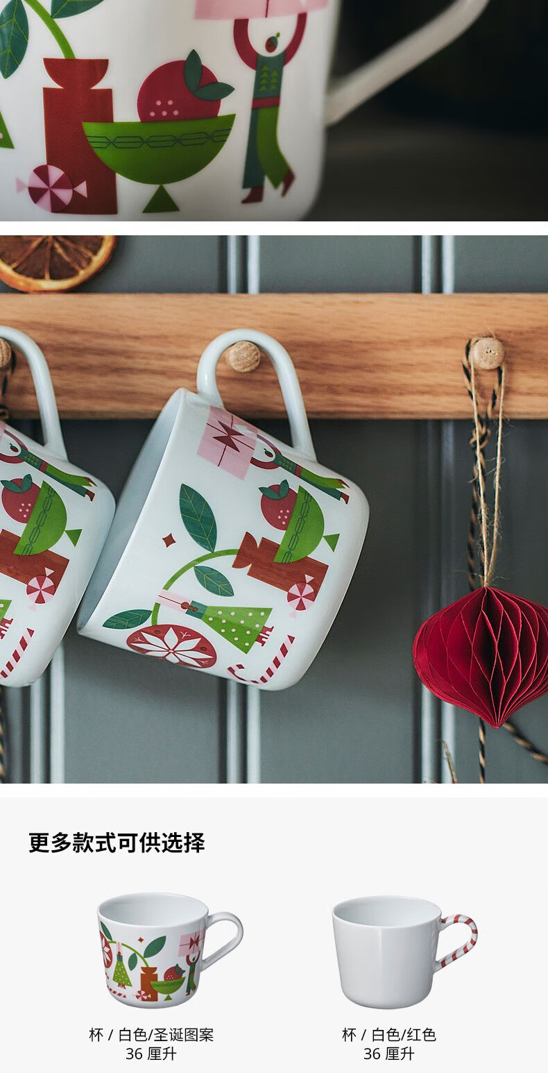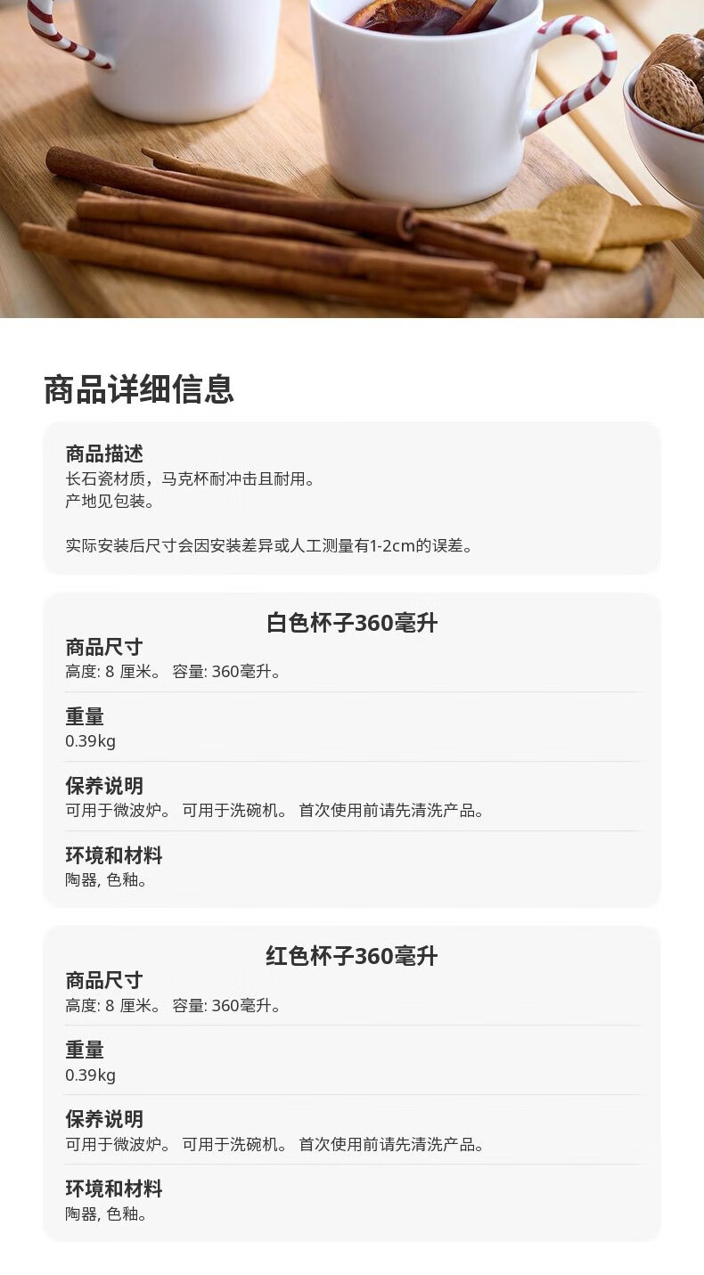 宜家(IKEA)【新品】VINTERFINT云芬特大杯喝水杯咖啡杯奶杯家用 白色红色杯360ml