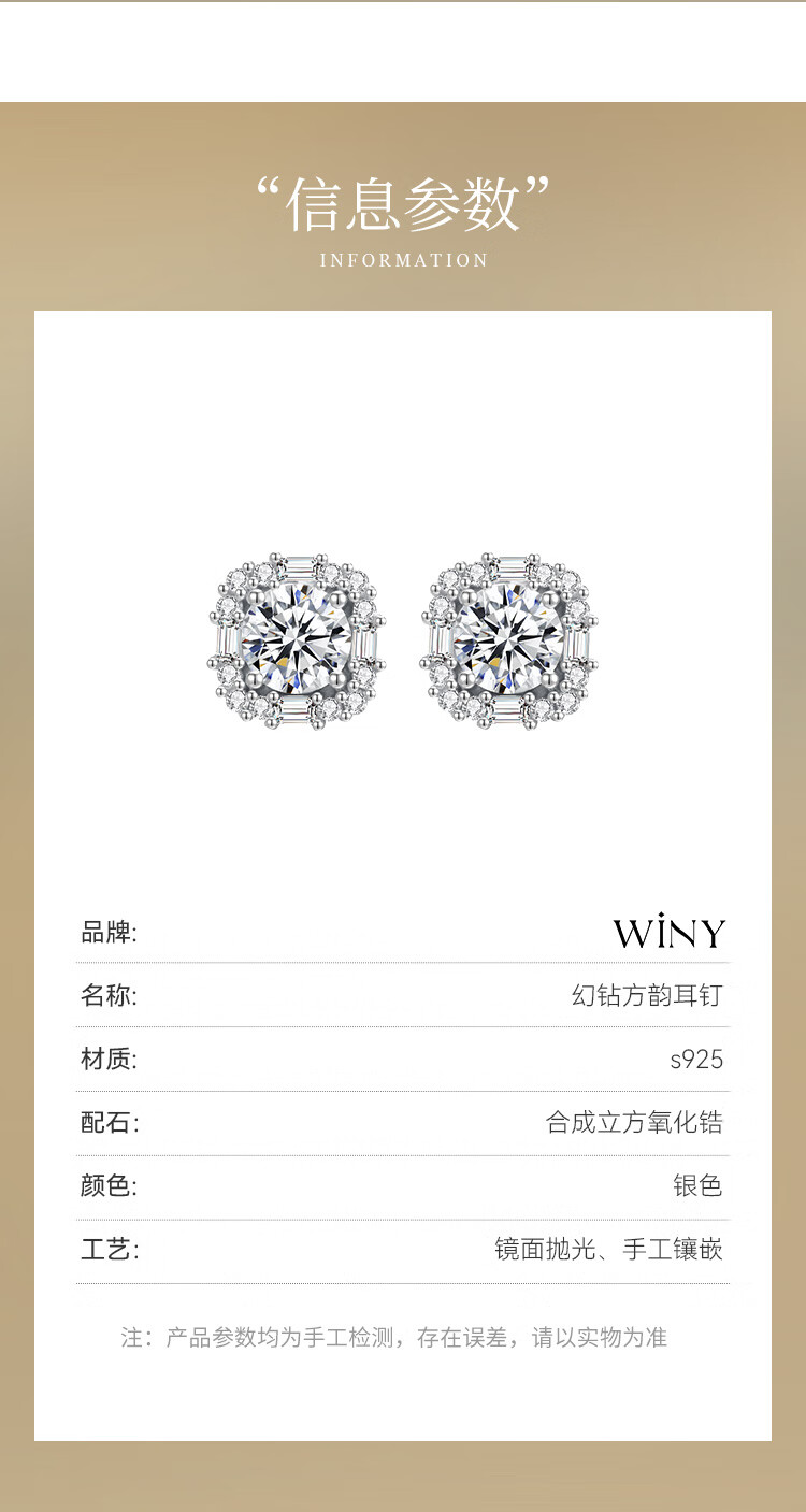 唯一(Winy)幻钻方韵耳钉925银松女朋友生日礼物高级轻奢小众