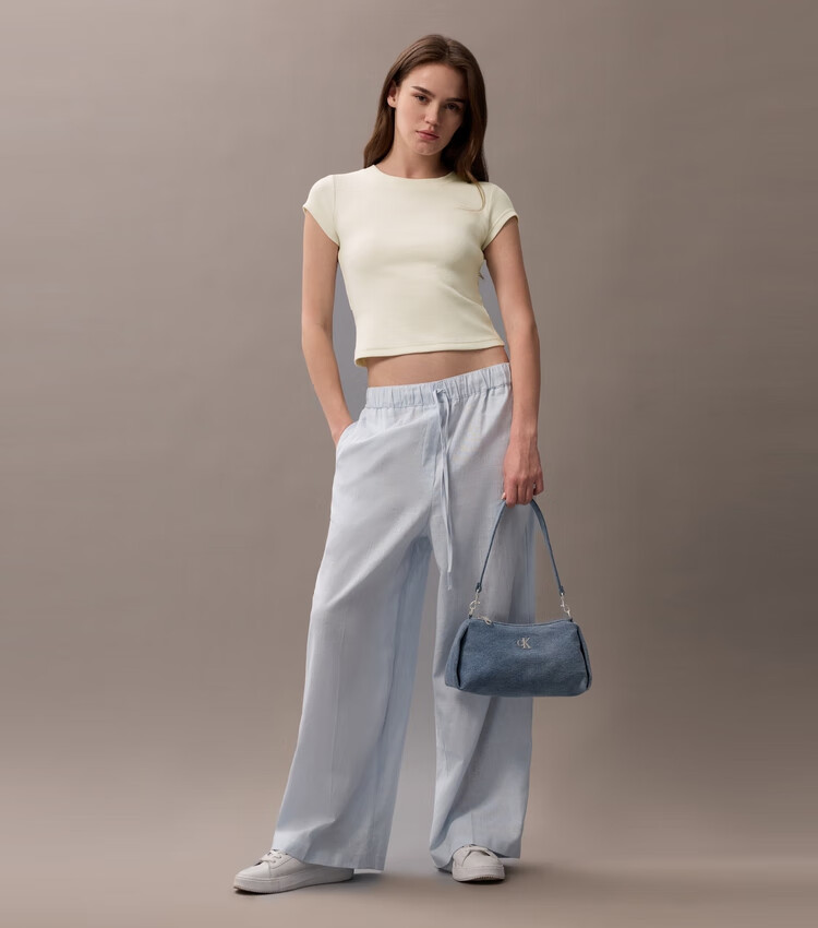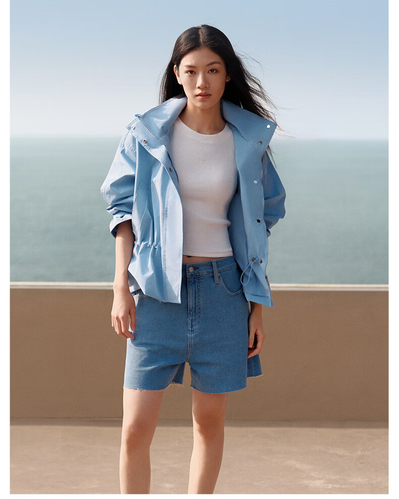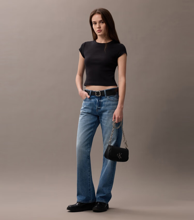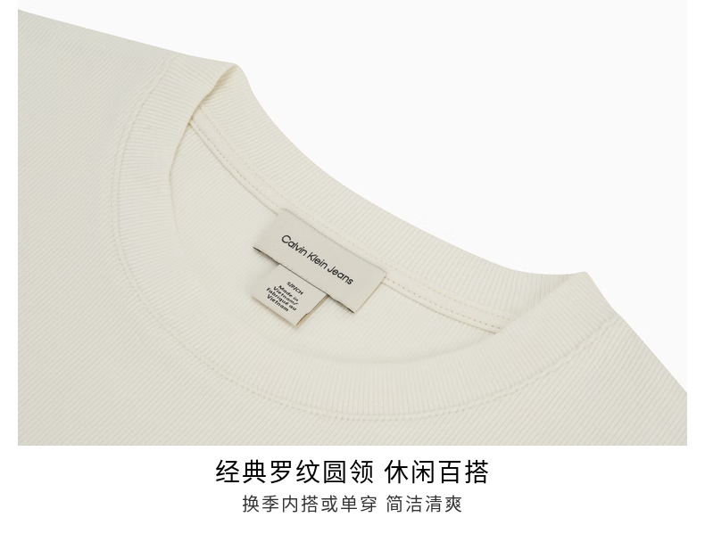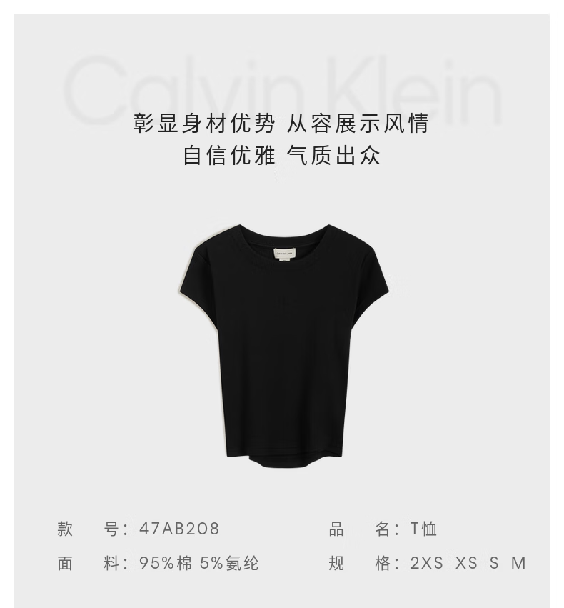 Calvin KleinJeans25夏季女士潮流休闲镂空ck辣妹正肩罗纹重磅短袖T恤上衣 UB1-太空黑 S