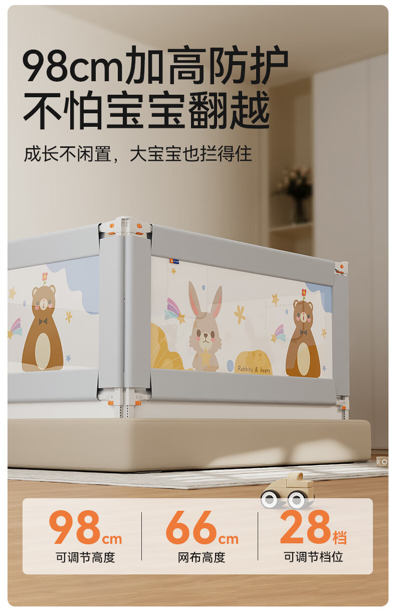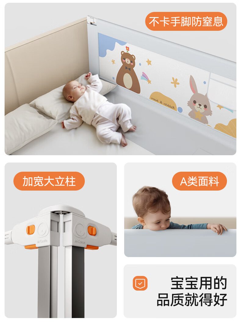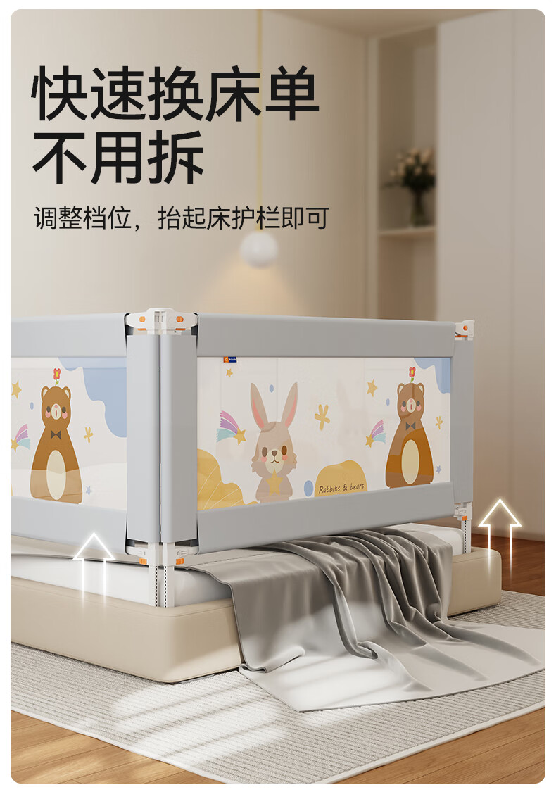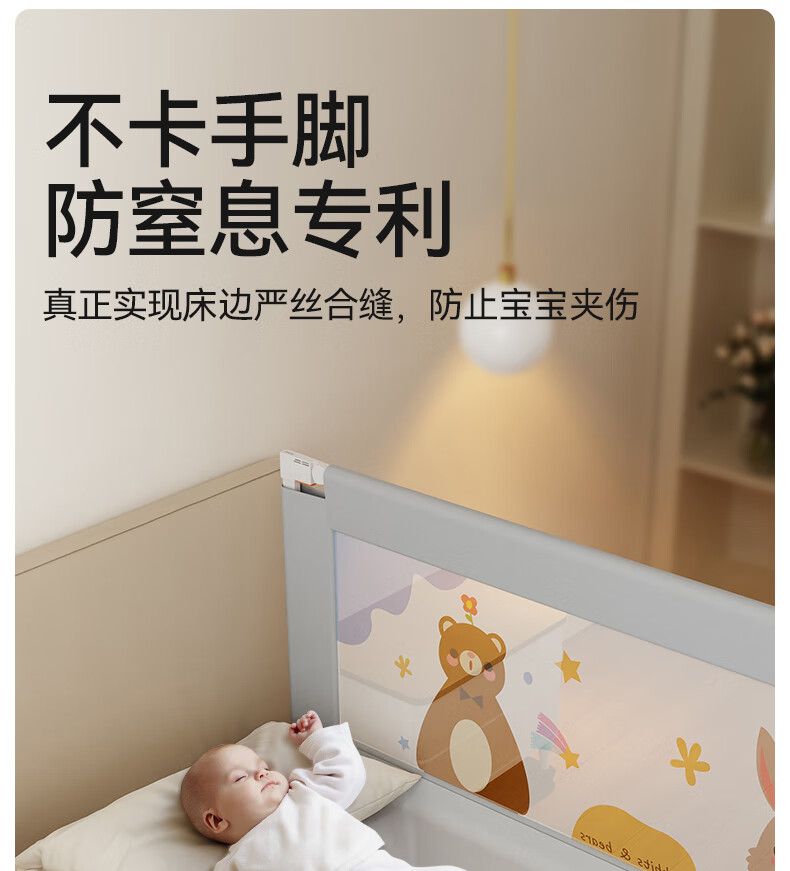 慕卡索床围栏安全防护栏婴儿童床上防摔床护栏宝宝床边防坠防窒息床挡板 守护熊 2.0米/单面装