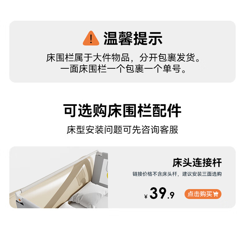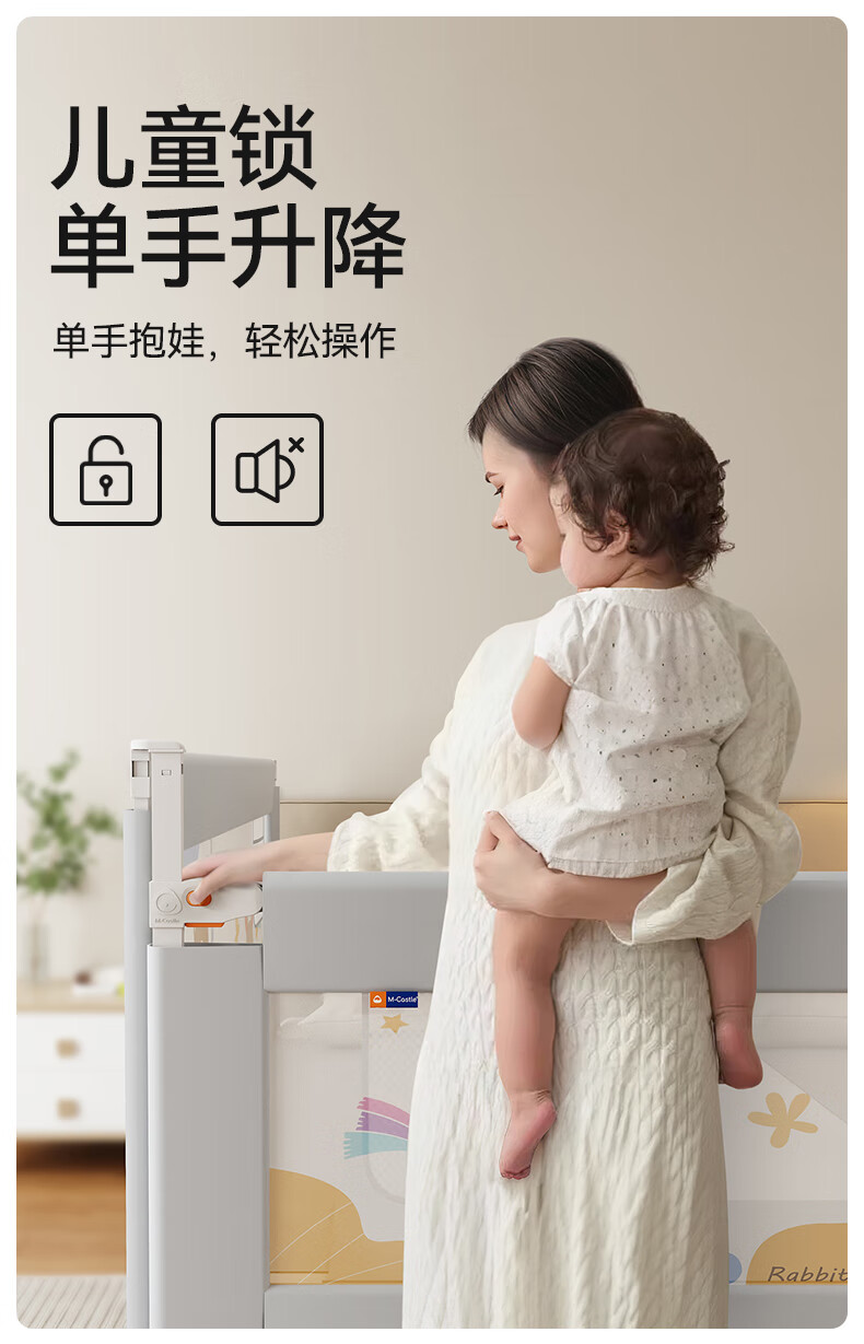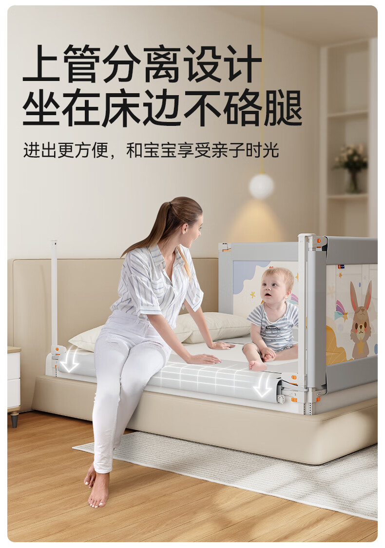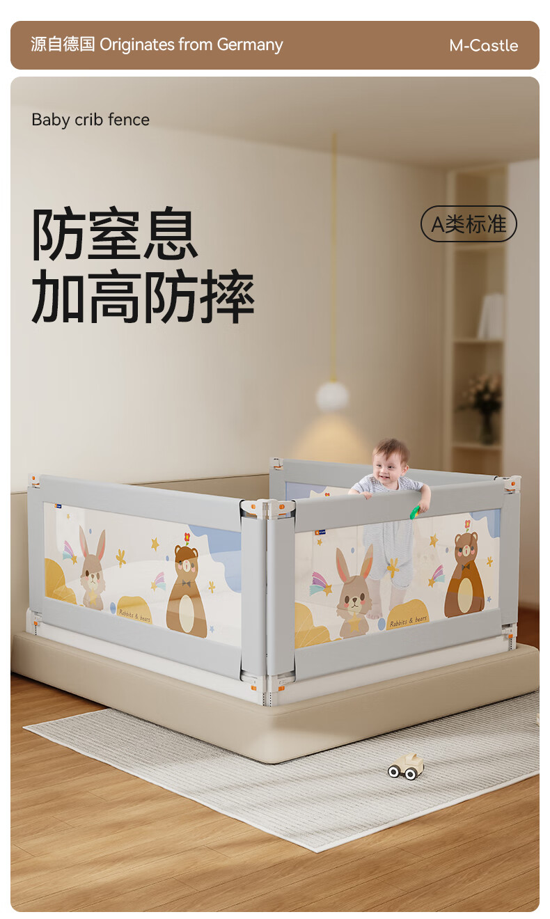 慕卡索床围栏安全防护栏婴儿童床上防摔床护栏宝宝床边防坠防窒息床挡板 守护熊 2.0米/单面装