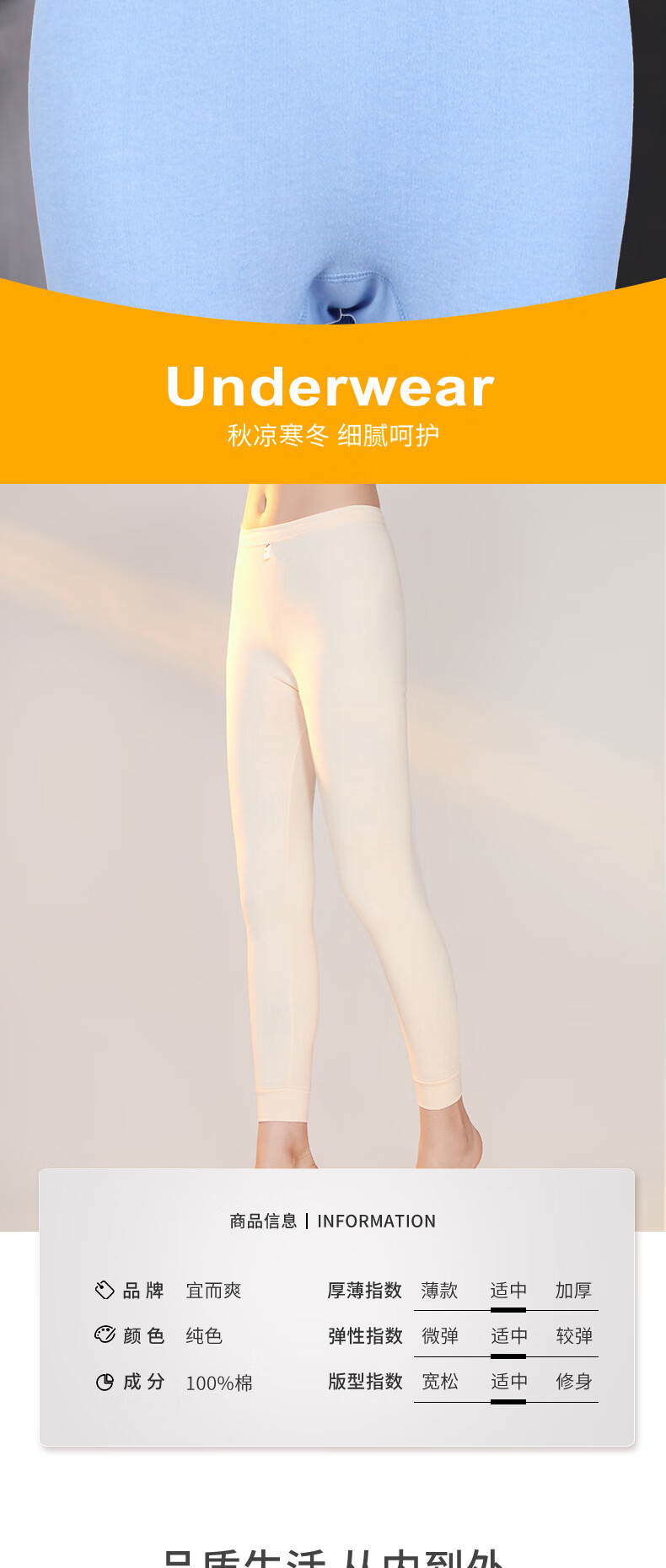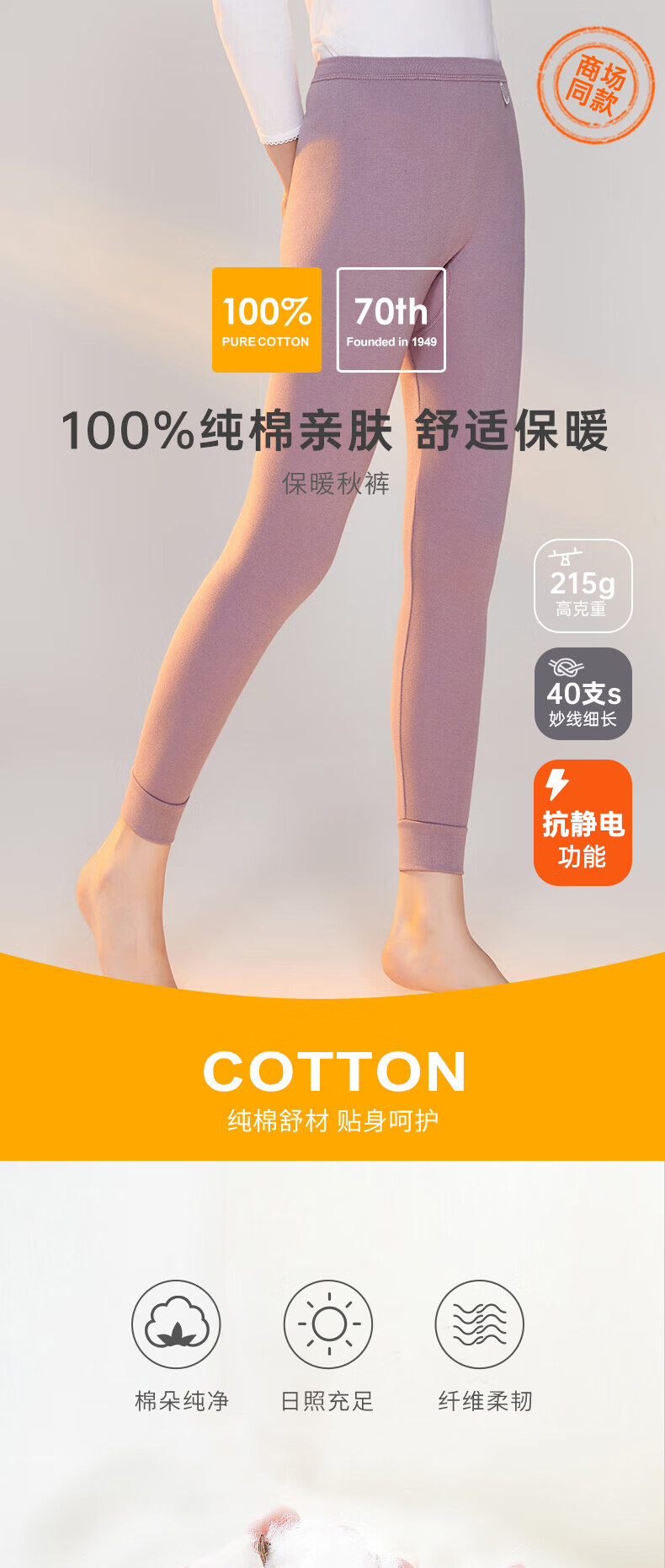 宜而爽【一等品100%纯棉】女士秋裤全棉保暖裤大码打底秋冬季棉毛裤女