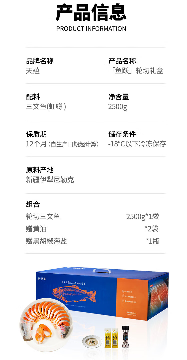 天蕴【整条轮切2.5kg礼盒】天蕰三文鱼礼盒鱼块虹鳟鱼中秋节日礼品