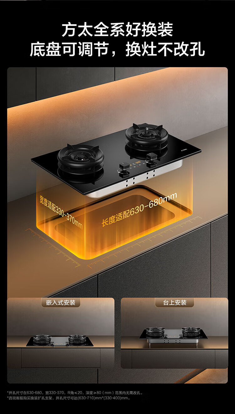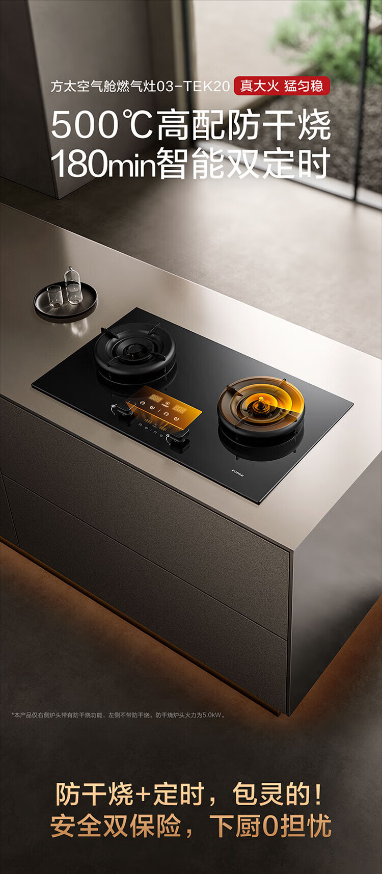 方太(FOTILE)燃气灶全新升级03-TEK20系列嵌入式天然气5.2kW猛火70%热效率定时防干烧可联动 政府补贴20%