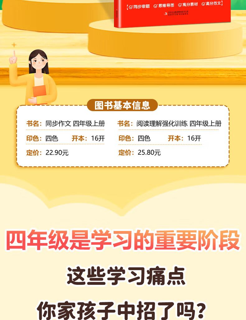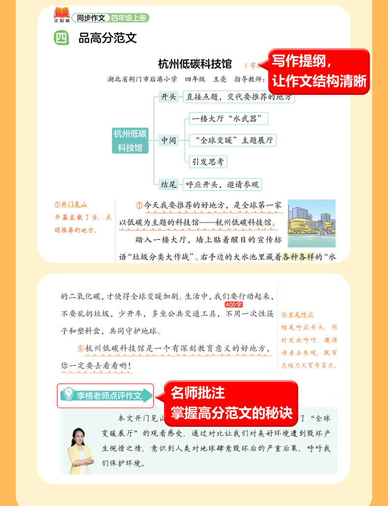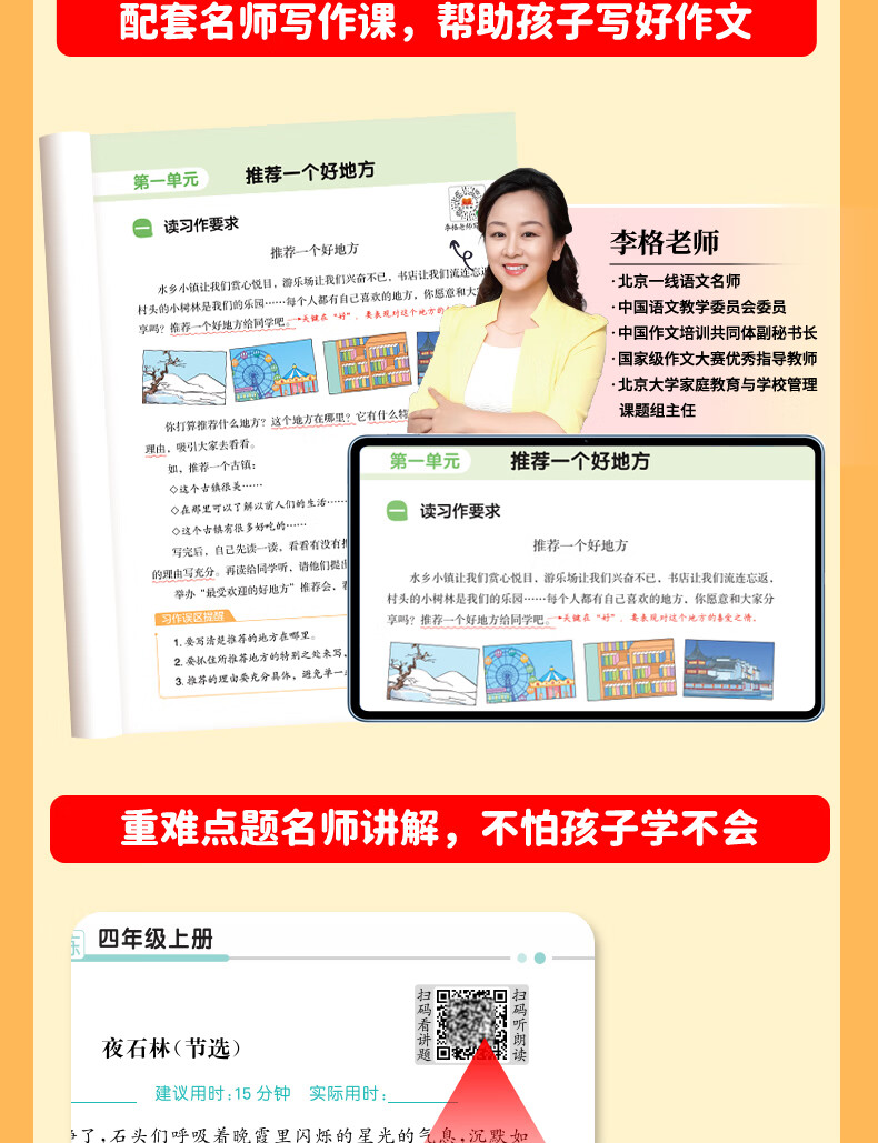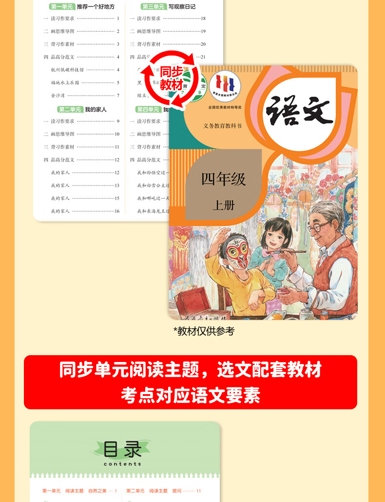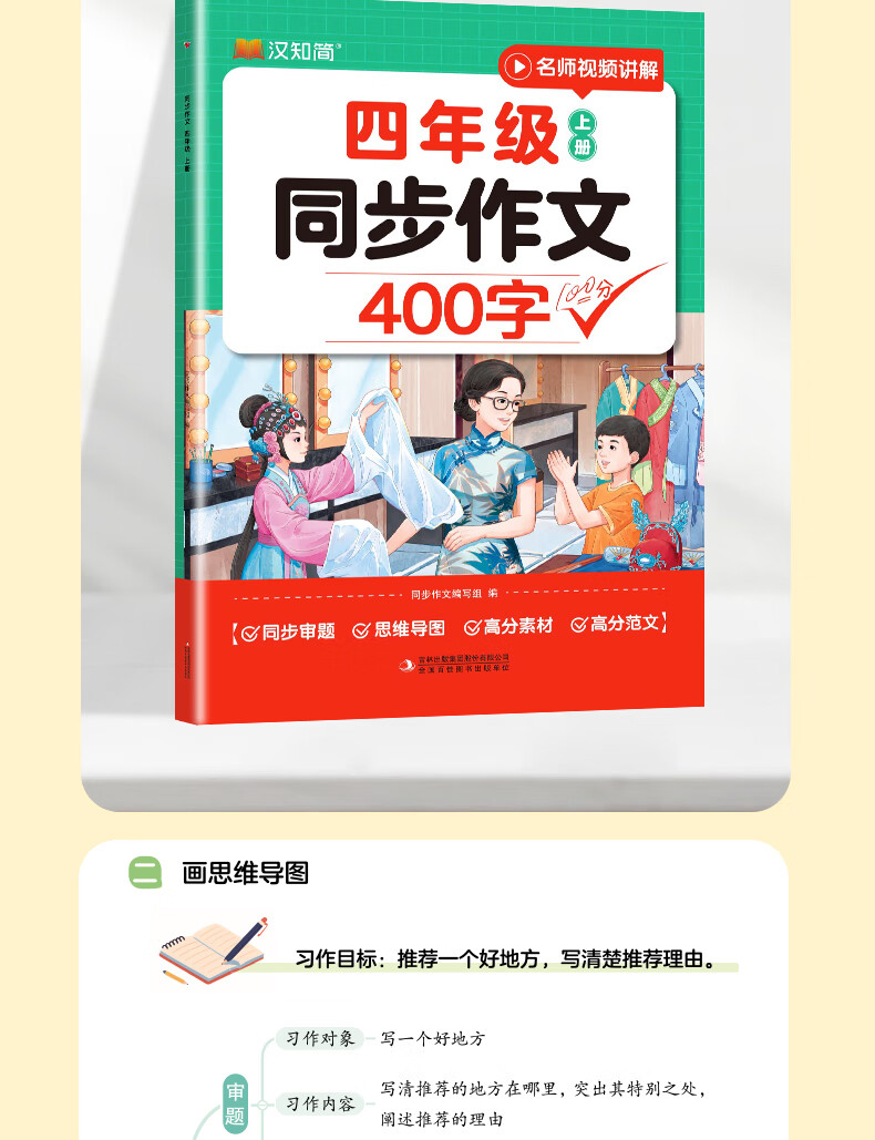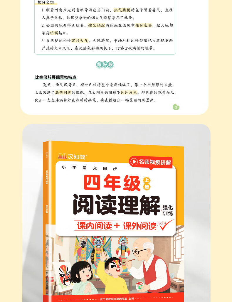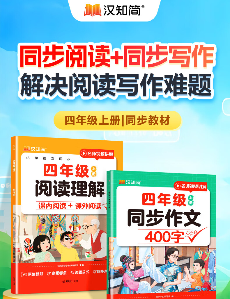 汉知简同步作文四年级人教版李格老师视频精讲小学语文四年级上册同步作文350字阅读理解专项训练书新教材高分素材范文考点100分作文素材积累 95%的家长选择【2本】同步作文+阅读理解