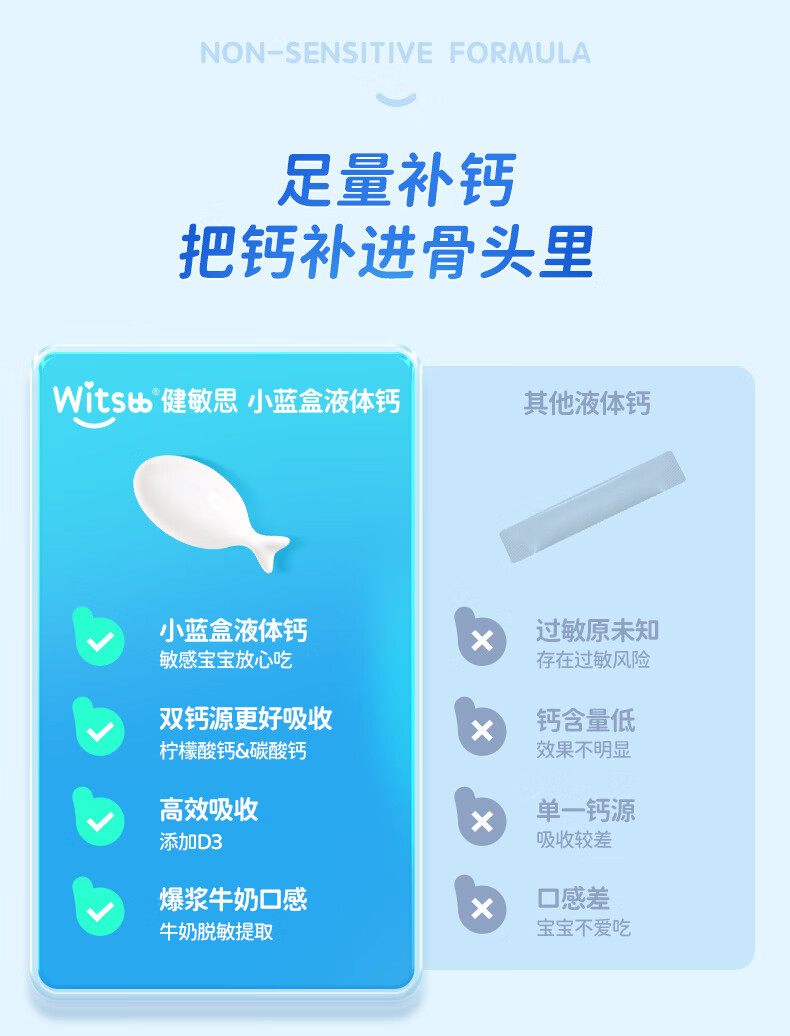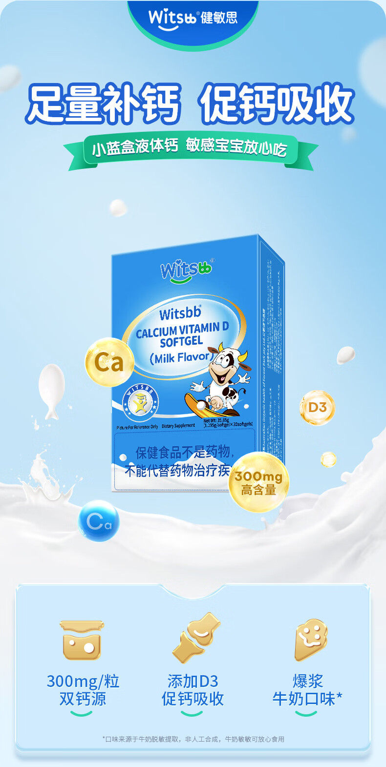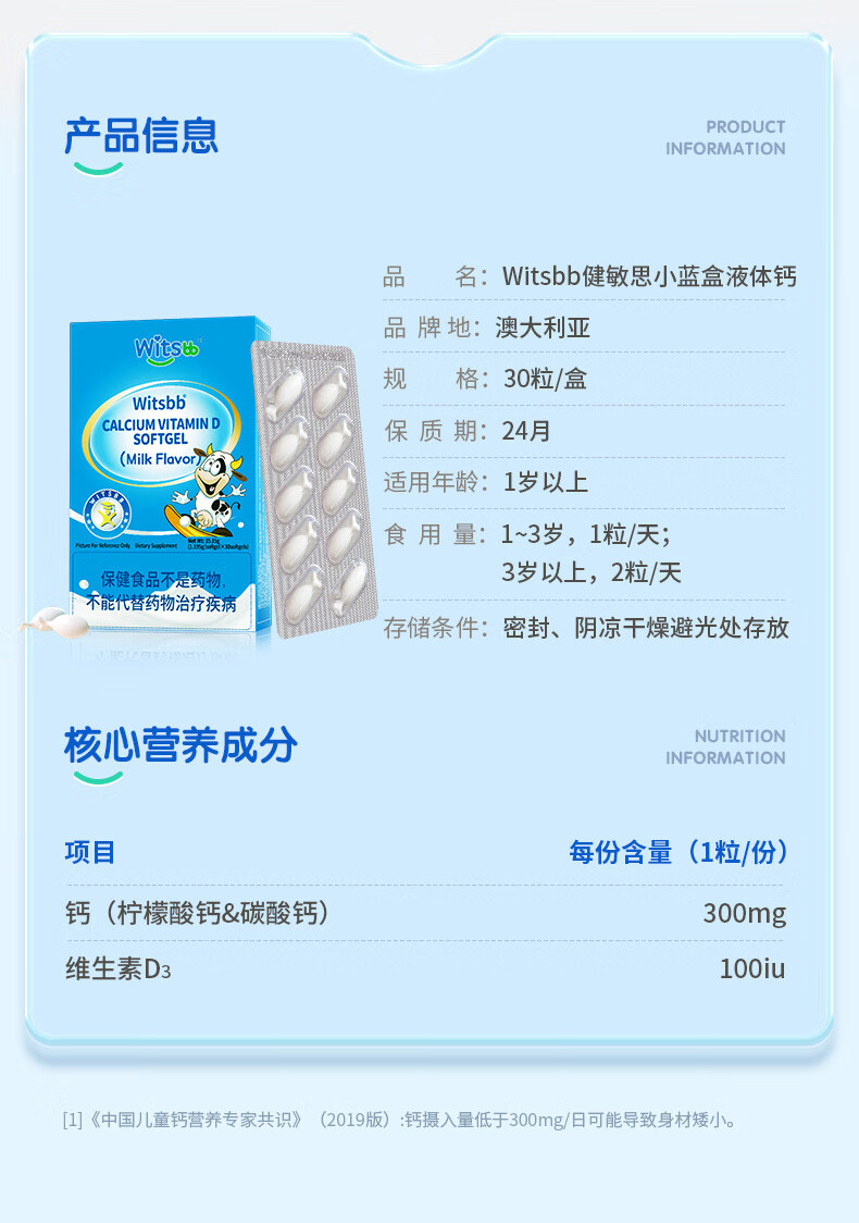健敏思小蓝盒液体钙 高钙量300mg含维生素d3儿童钙 30粒/盒 【2盒装】液体钙(高钙含量)