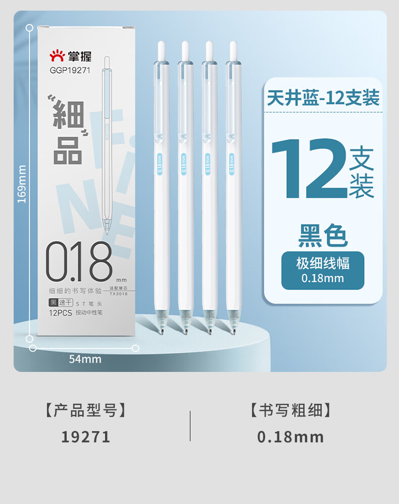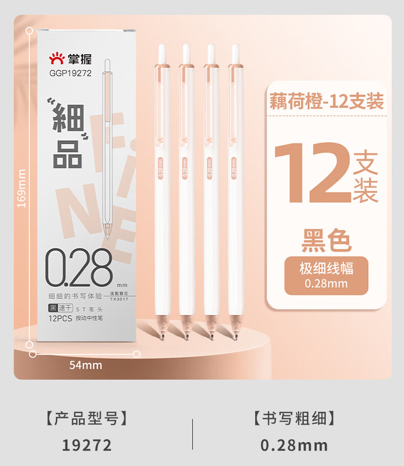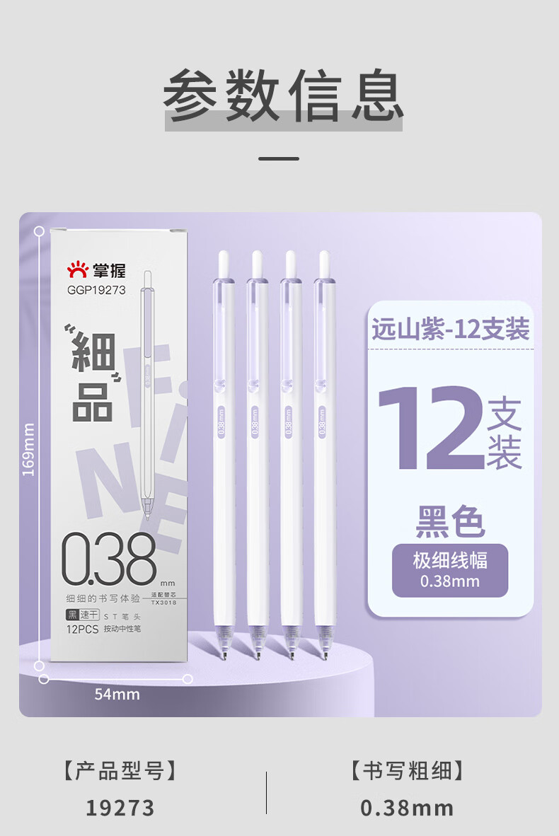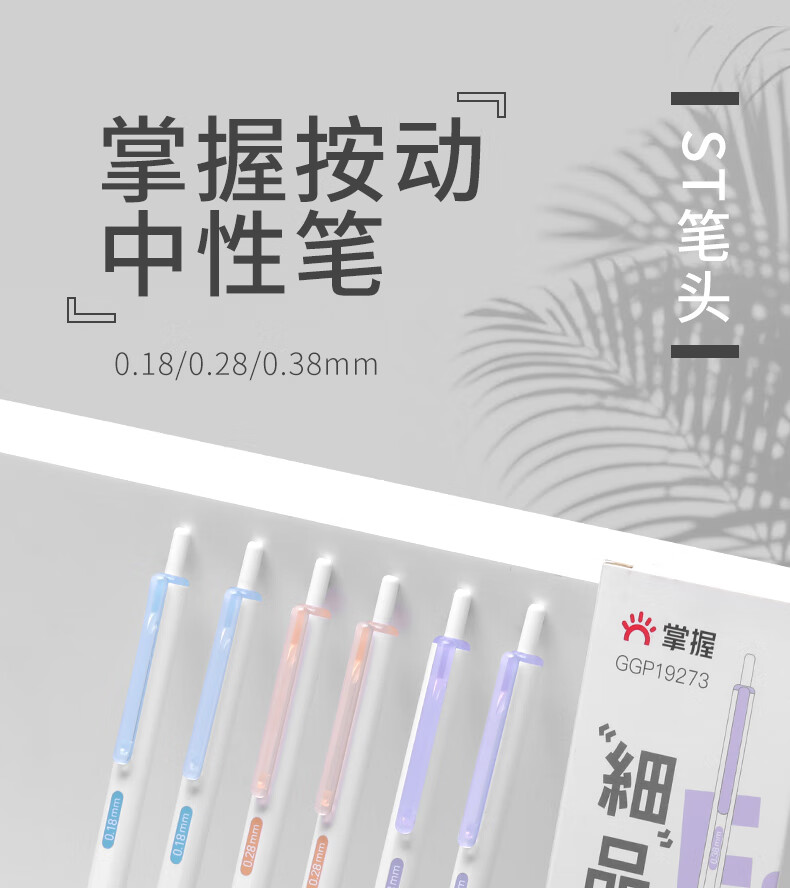 掌握速干极细按动中性笔0.38/0.28/0.18mm学生刷题笔记账笔签字笔办公用品开学季必备礼物 3支套装【紫色+橙色+蓝色】