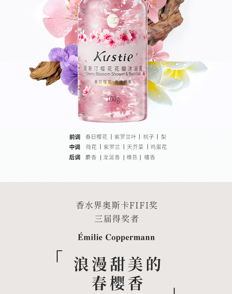 蔻斯汀(Kustie)樱花花瓣沐浴露100g 香氛洗浴温和清洁持久留香旅行便携