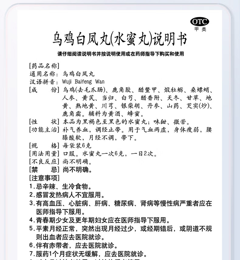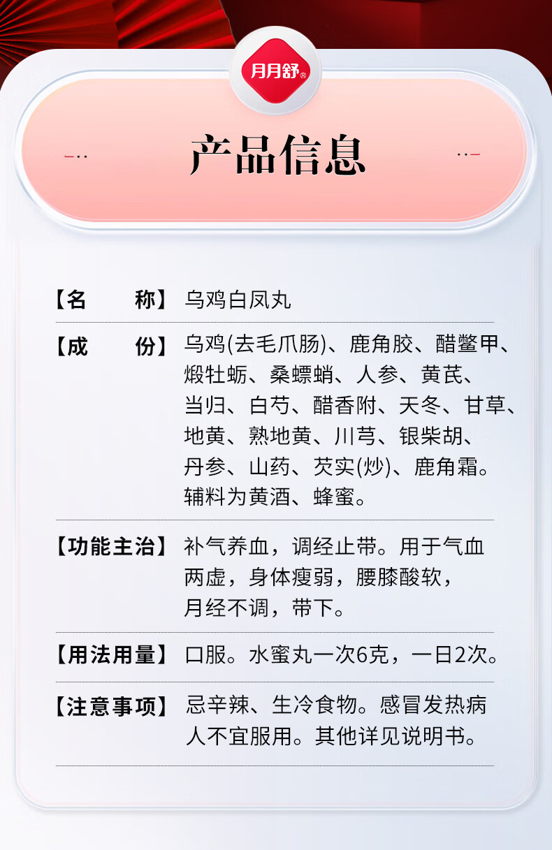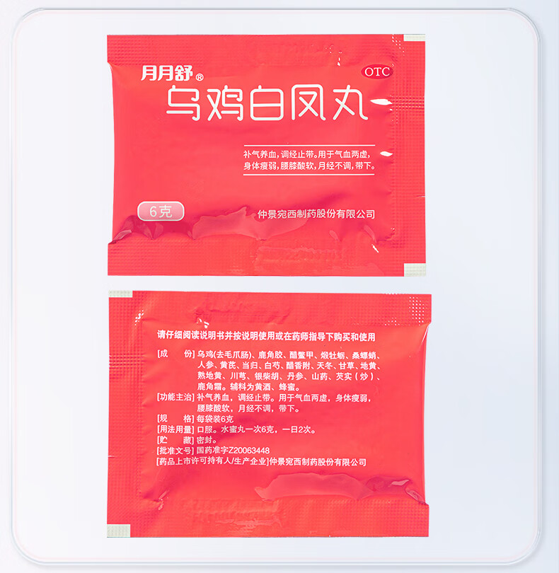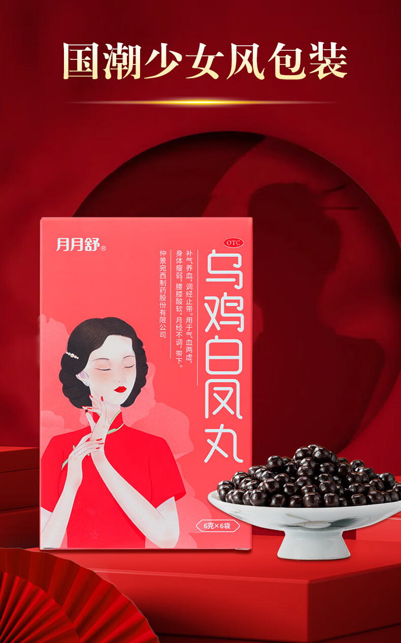 仲景 月月舒 乌鸡白凤丸 6g*6袋 女人补气养血调经止带气血两虚月经不调量少体弱乏力妇科用药非处方药自营