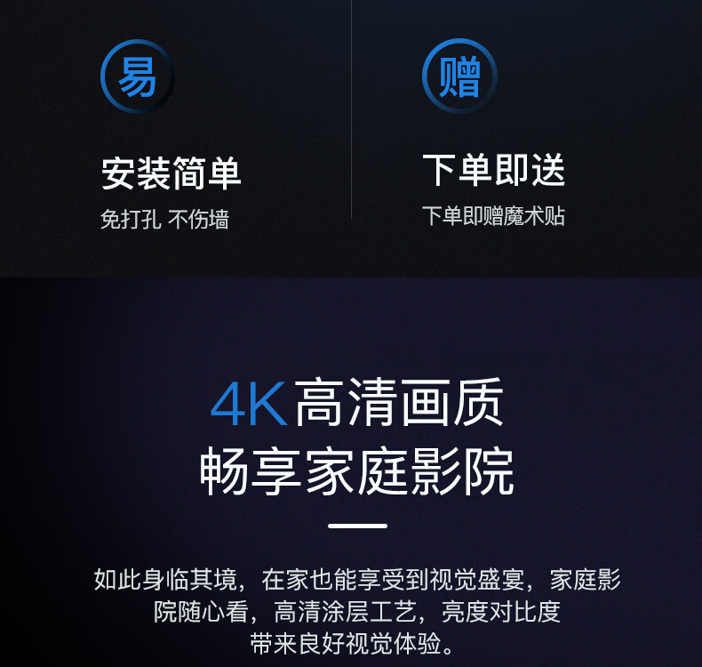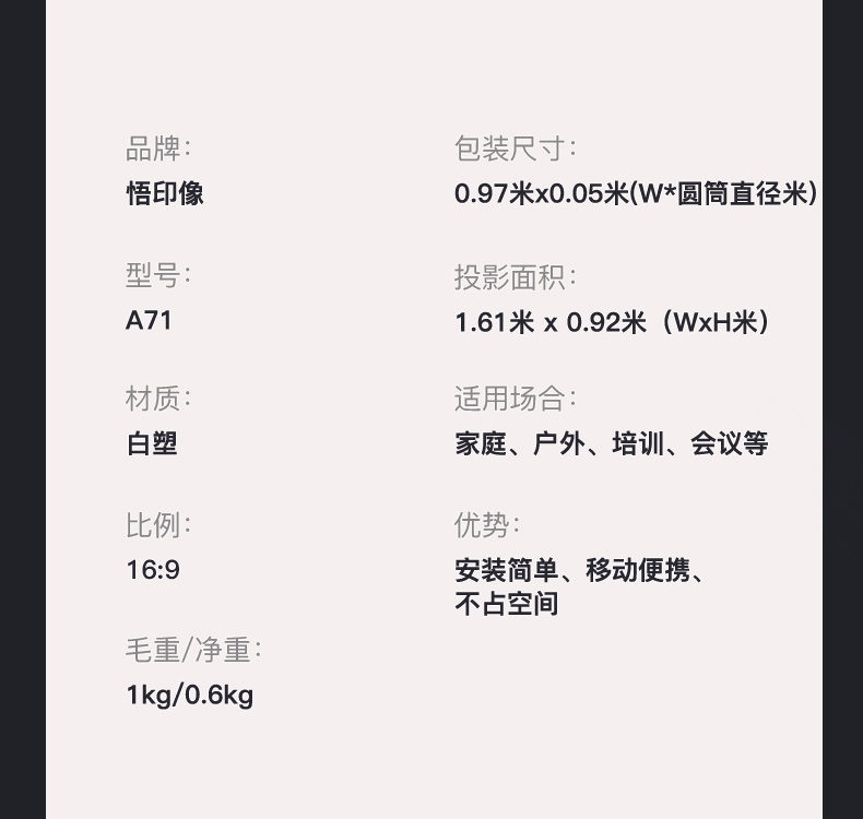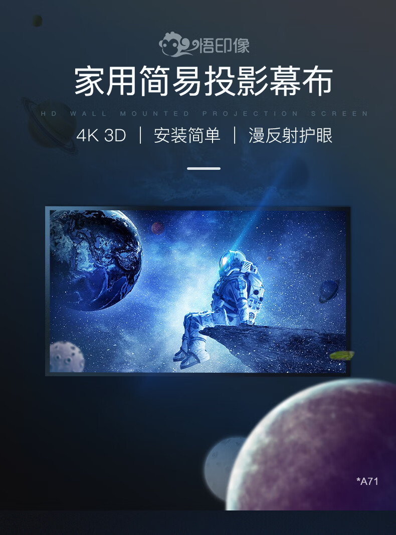 悟印像投影幕布72英寸16:9免打孔简易幕布贴墙幕布3D/4K高清投影机布 家用投影仪极米坚果小米当贝A71