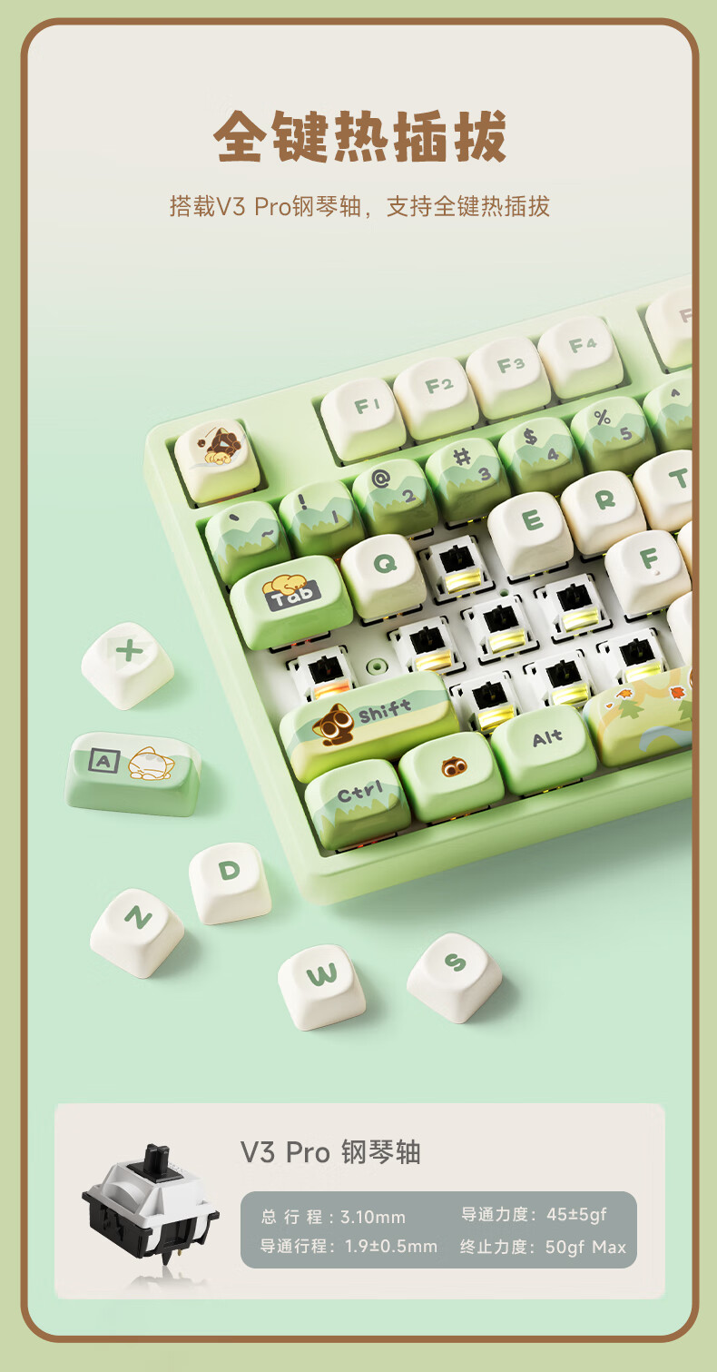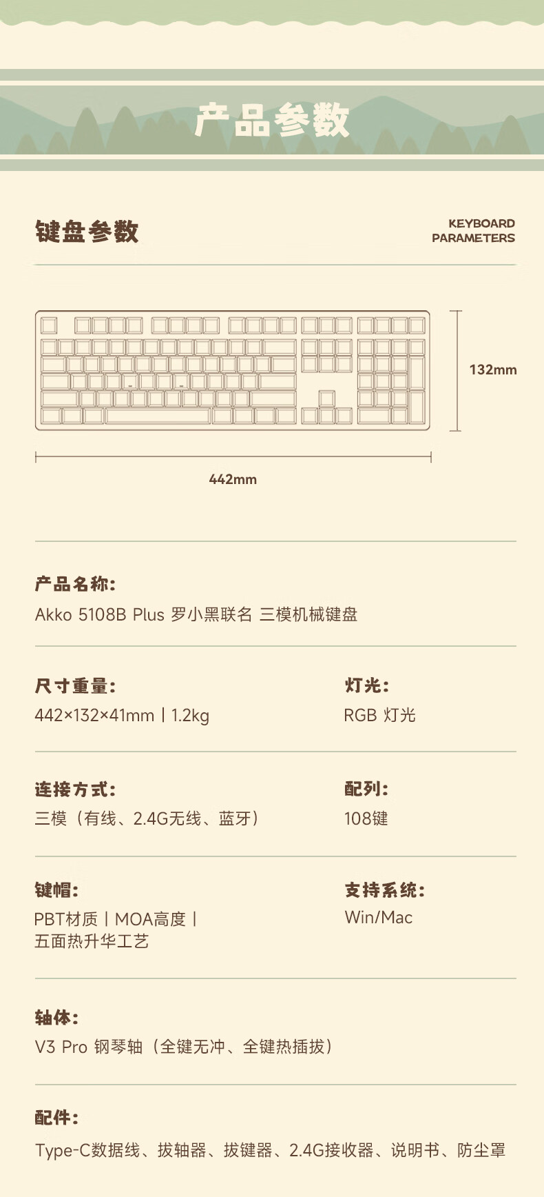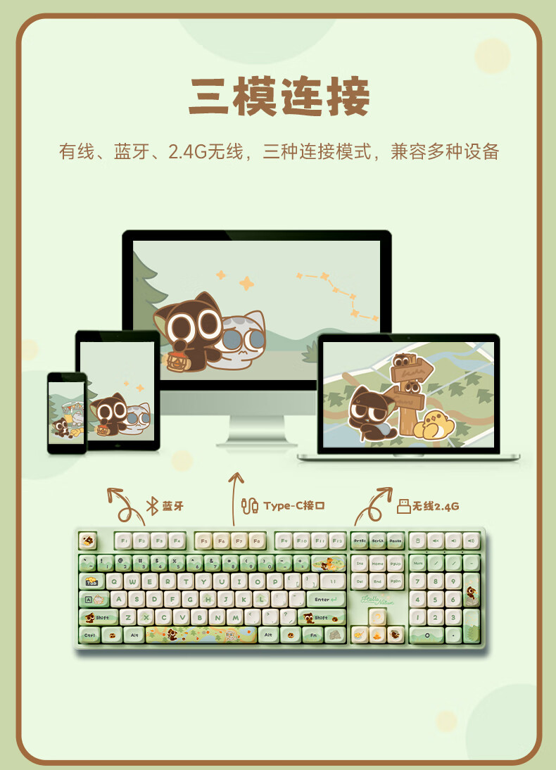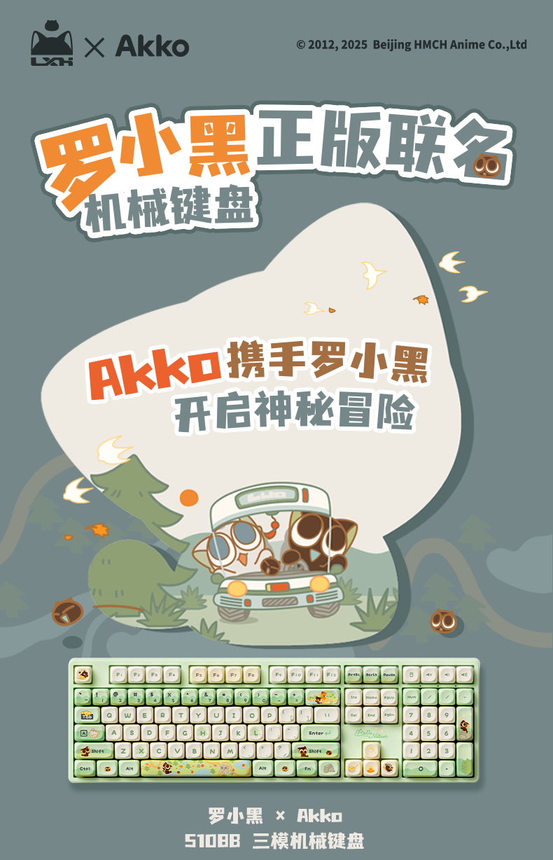 AKKO罗小黑战记联名三模机械键盘电竞游戏108键电脑有线全键办公蓝牙无线键盘