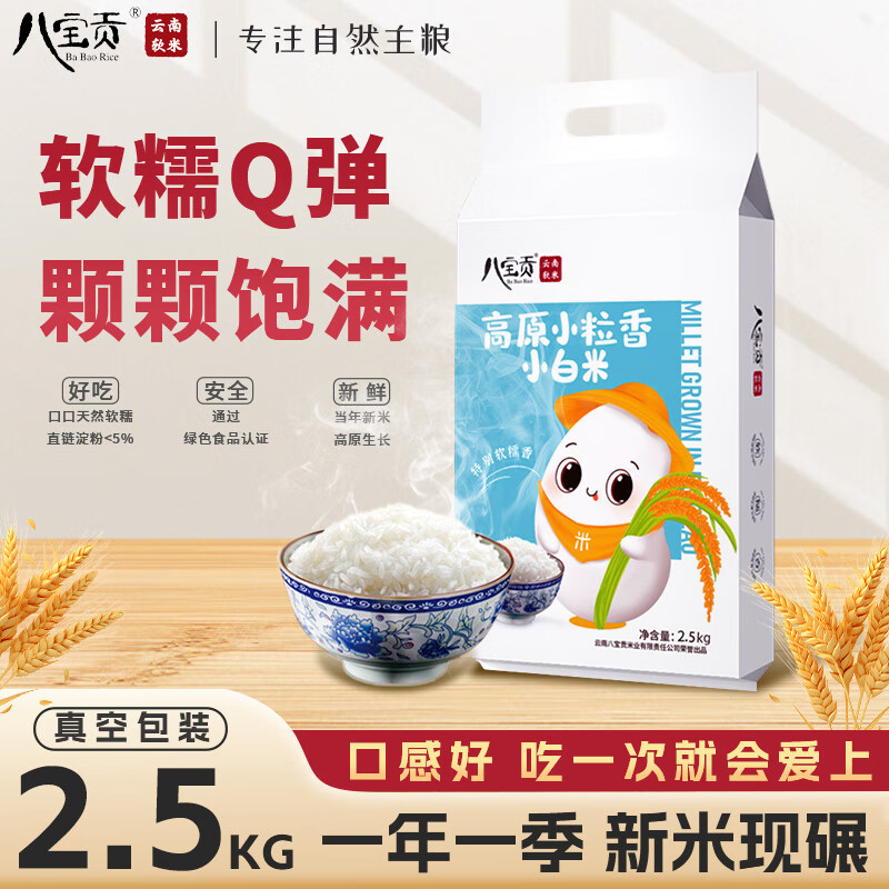 八宝贡 BA BAO RICE云南大米贡米云南小白米2.5kg新米长粒米一季稻主食真空包装