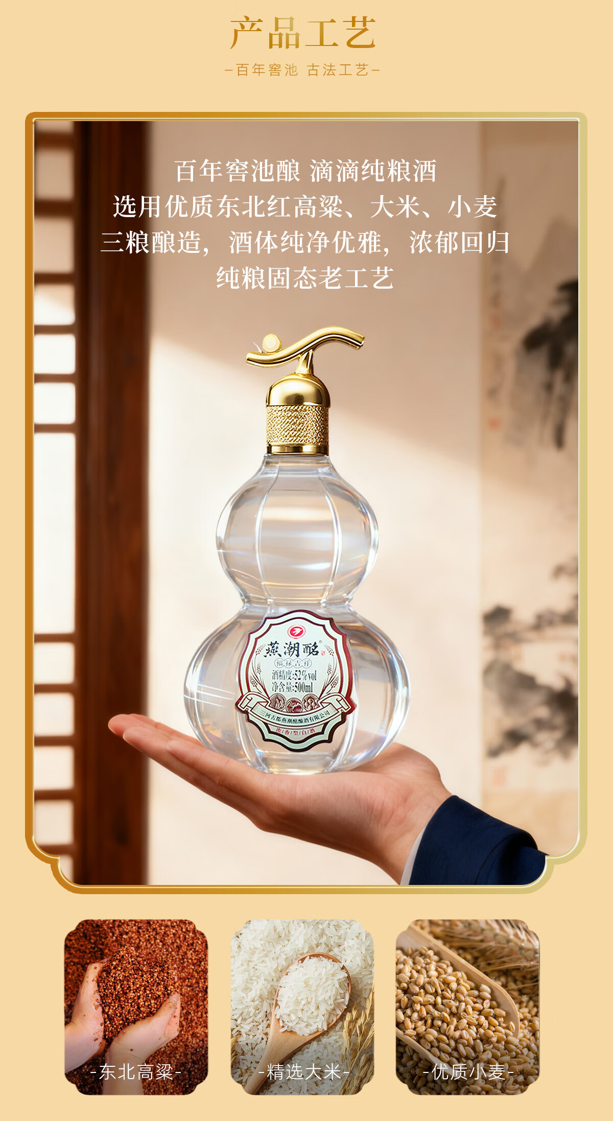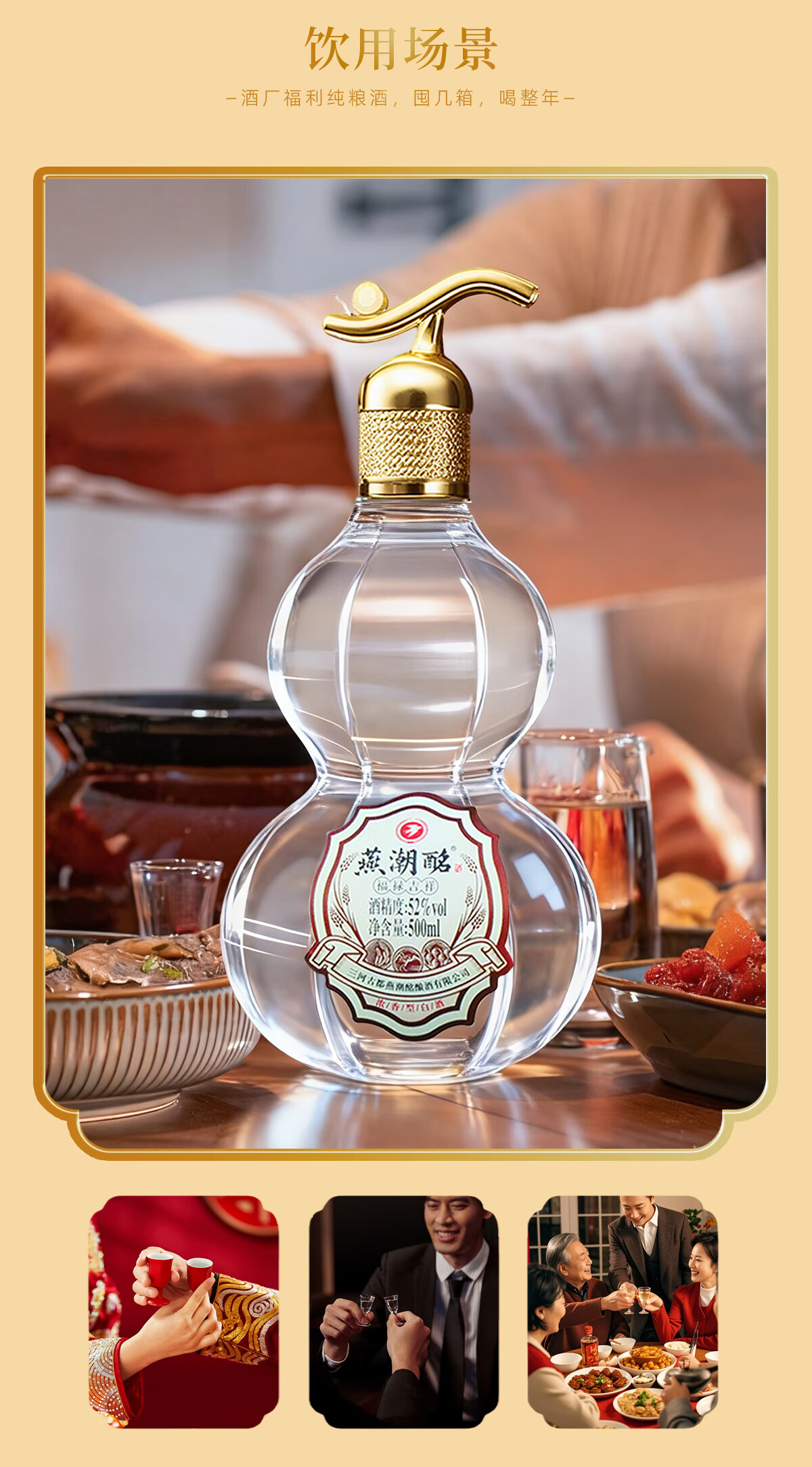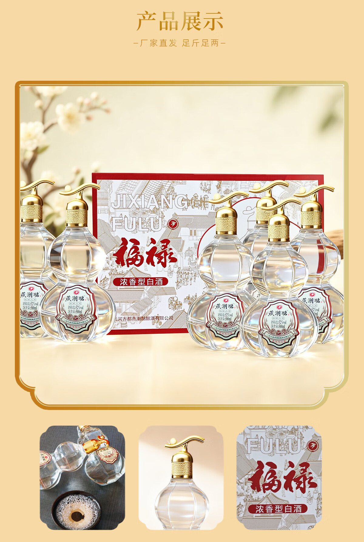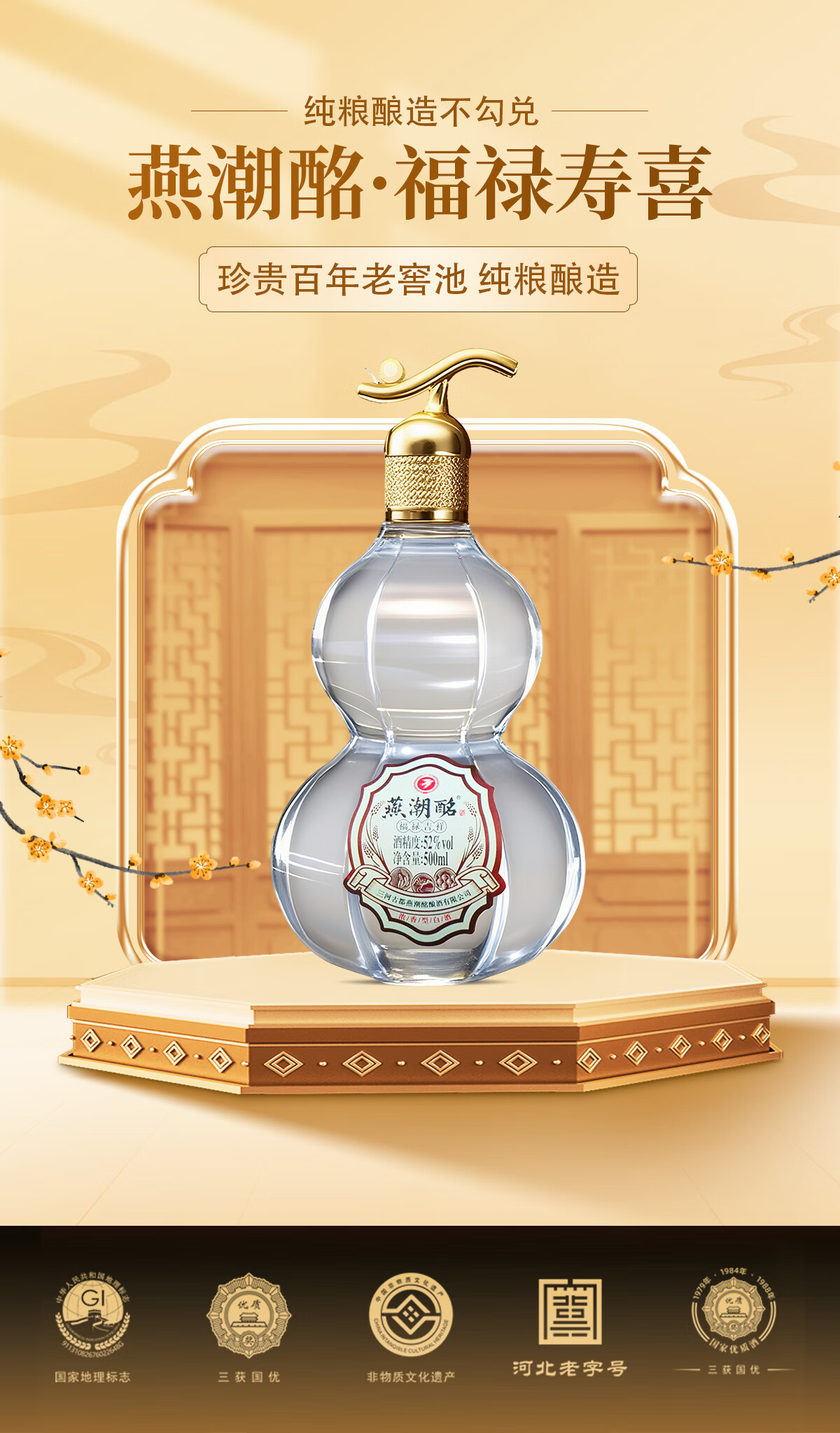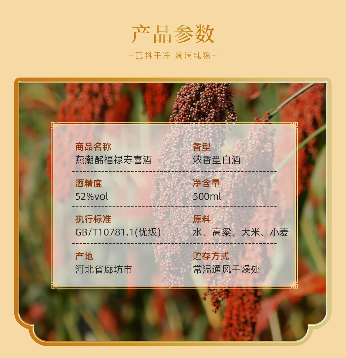 燕潮酩河北老字号 福禄吉祥浓香型白酒纯粮酿造 送礼品鉴 52度500ML*6瓶