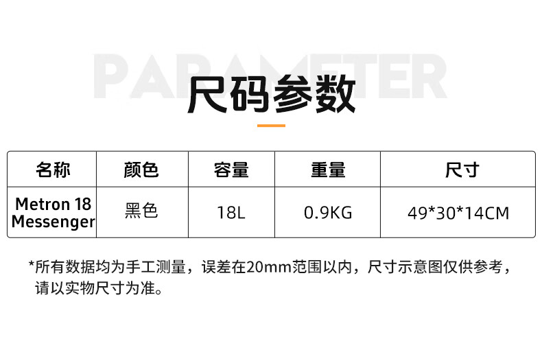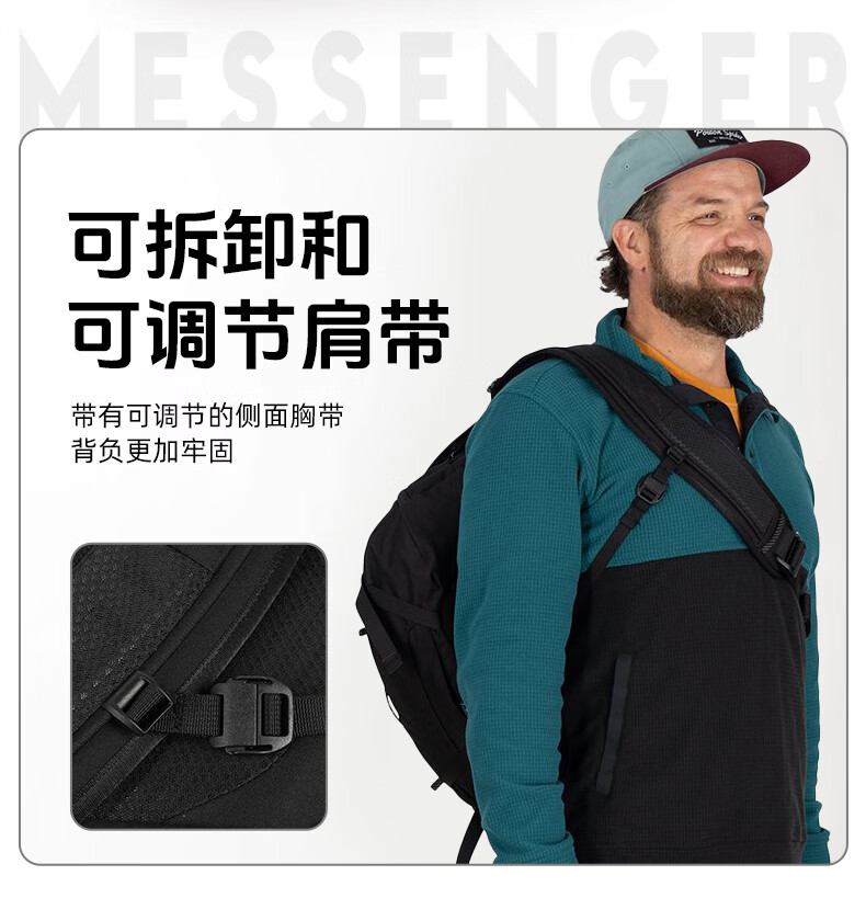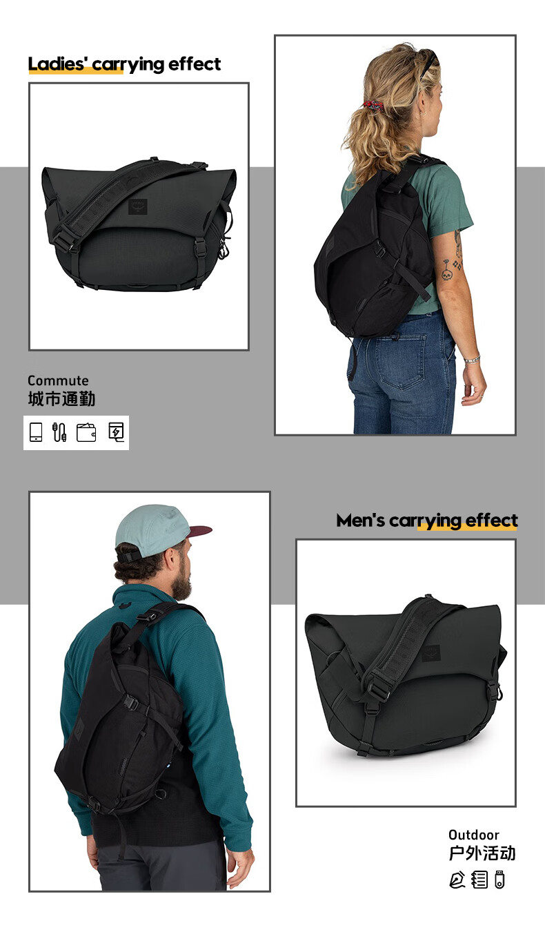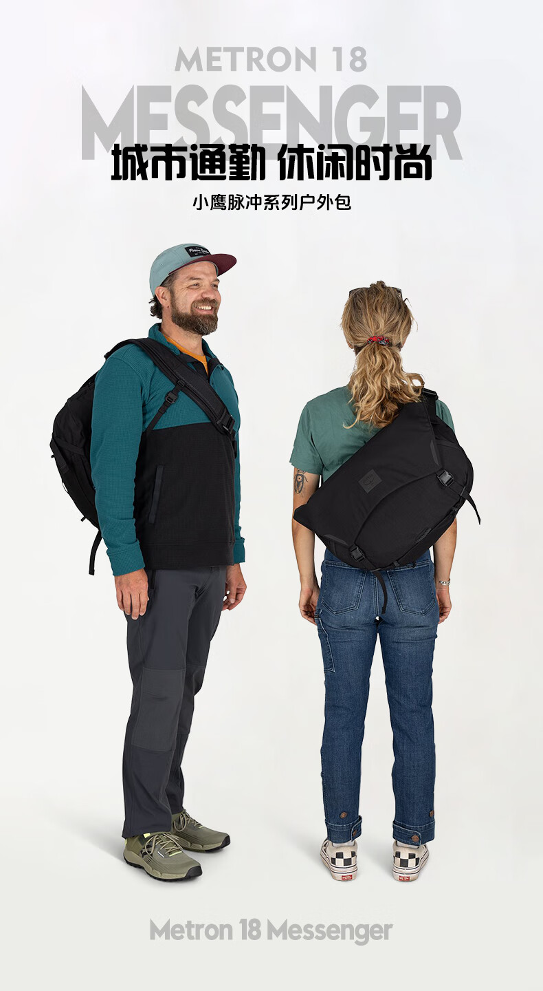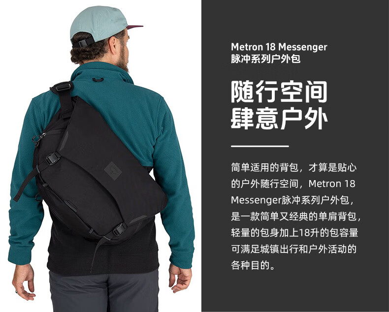 OSPREY小鹰户外包 Metron Messenger 脉冲邮差包 男女通用斜挎包单肩包 18L 黑色 OS