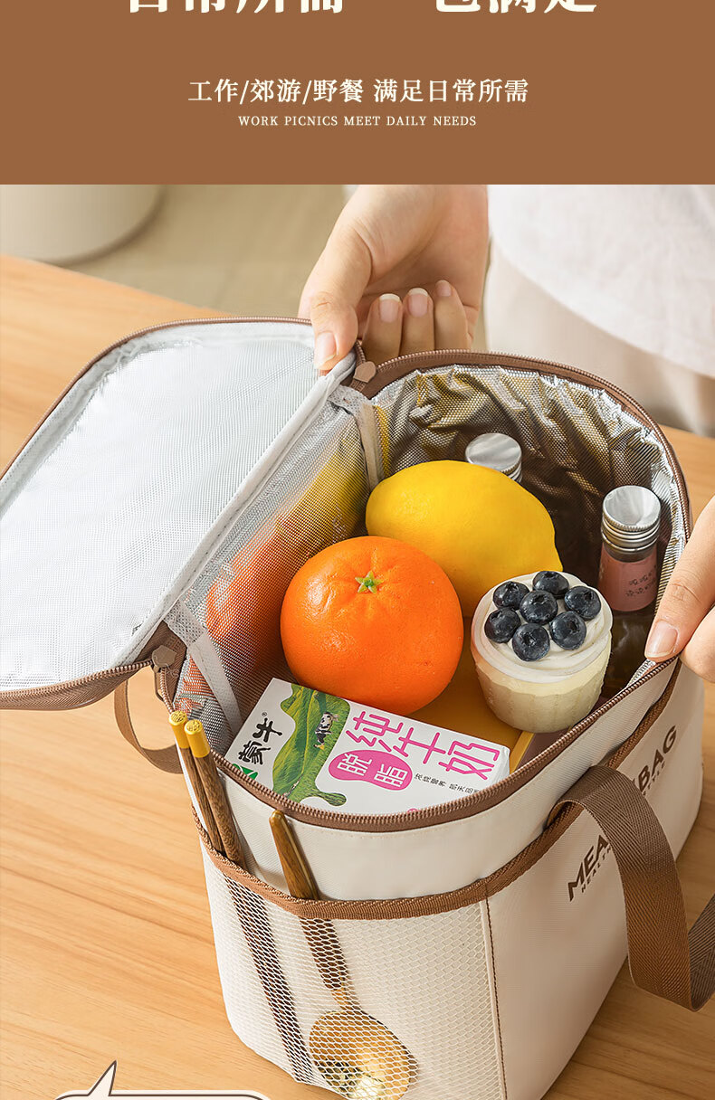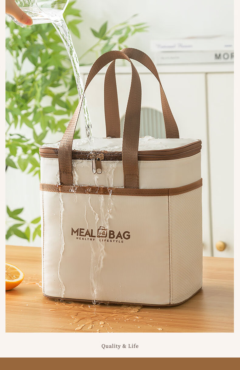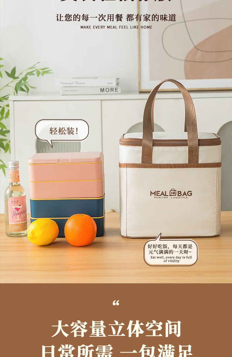 AILUKI日本饭盒保温袋手提袋子加厚铝箔上班族小学生带饭专用防水午餐包 咖色大号__耐磨尼龙 29*22*20cm
