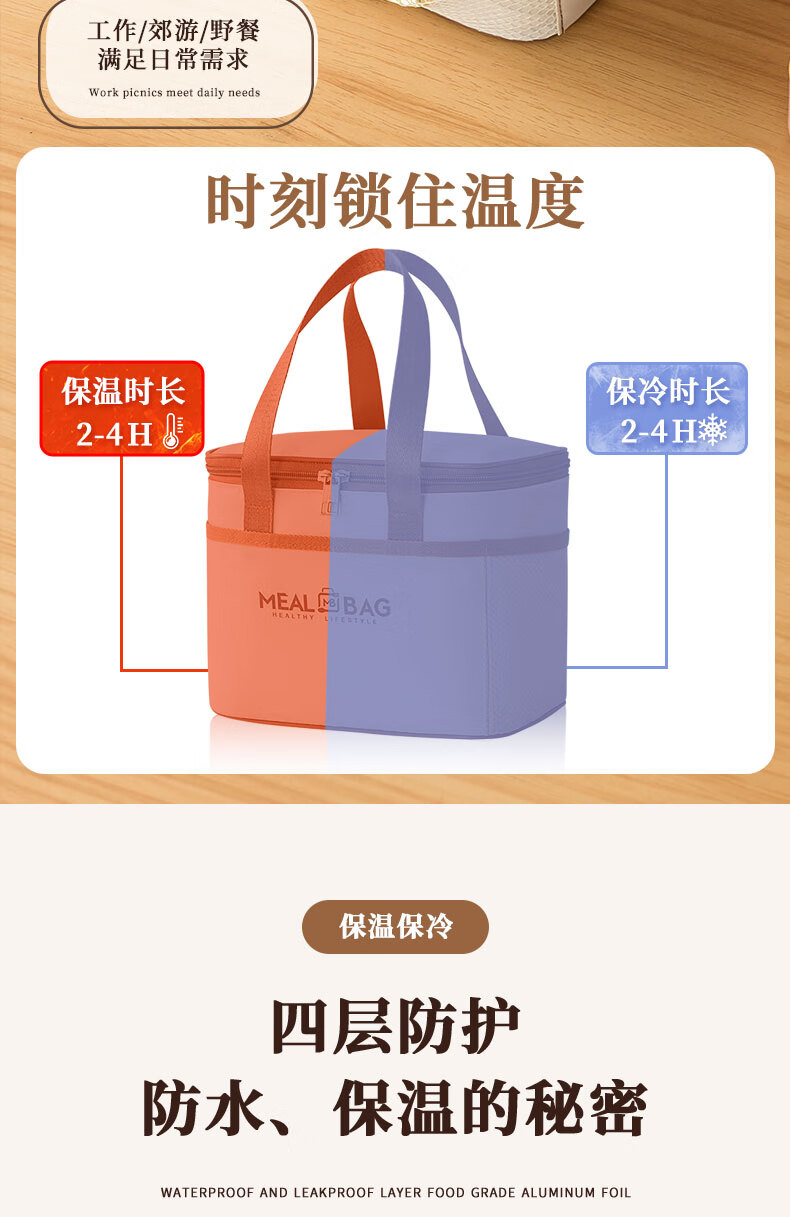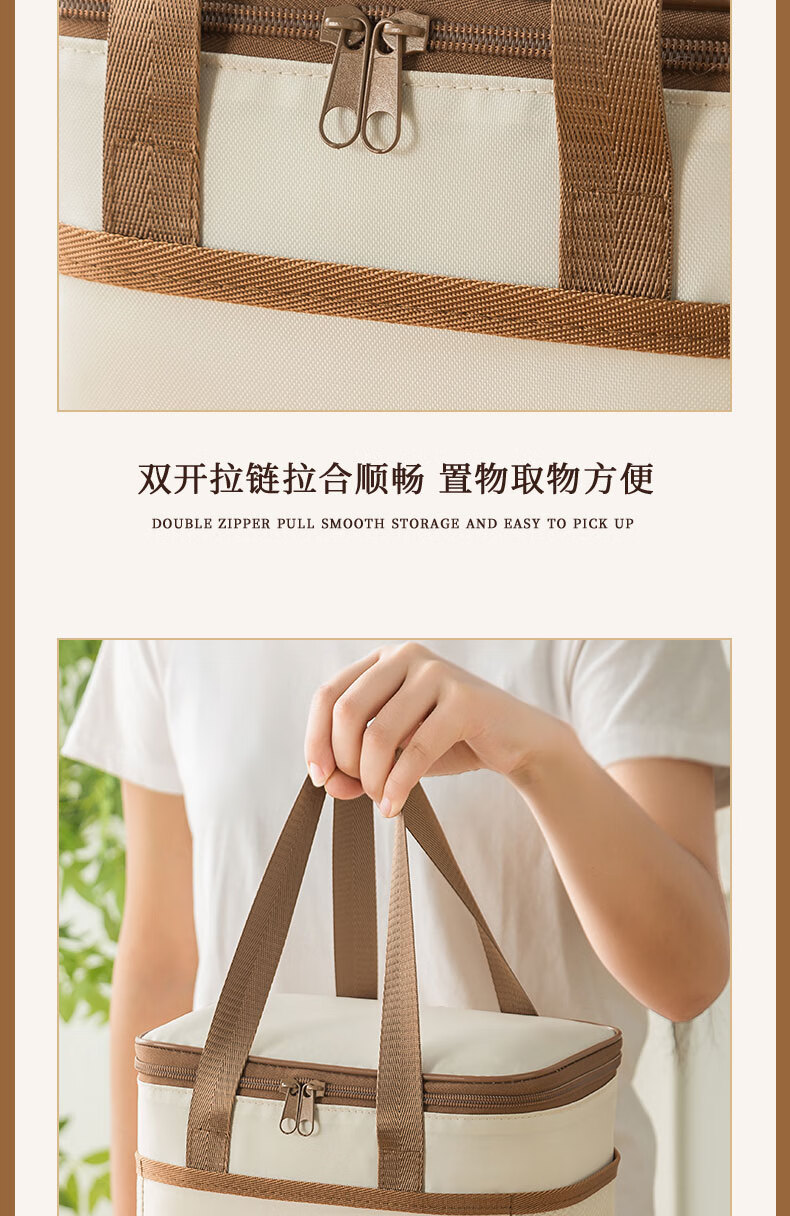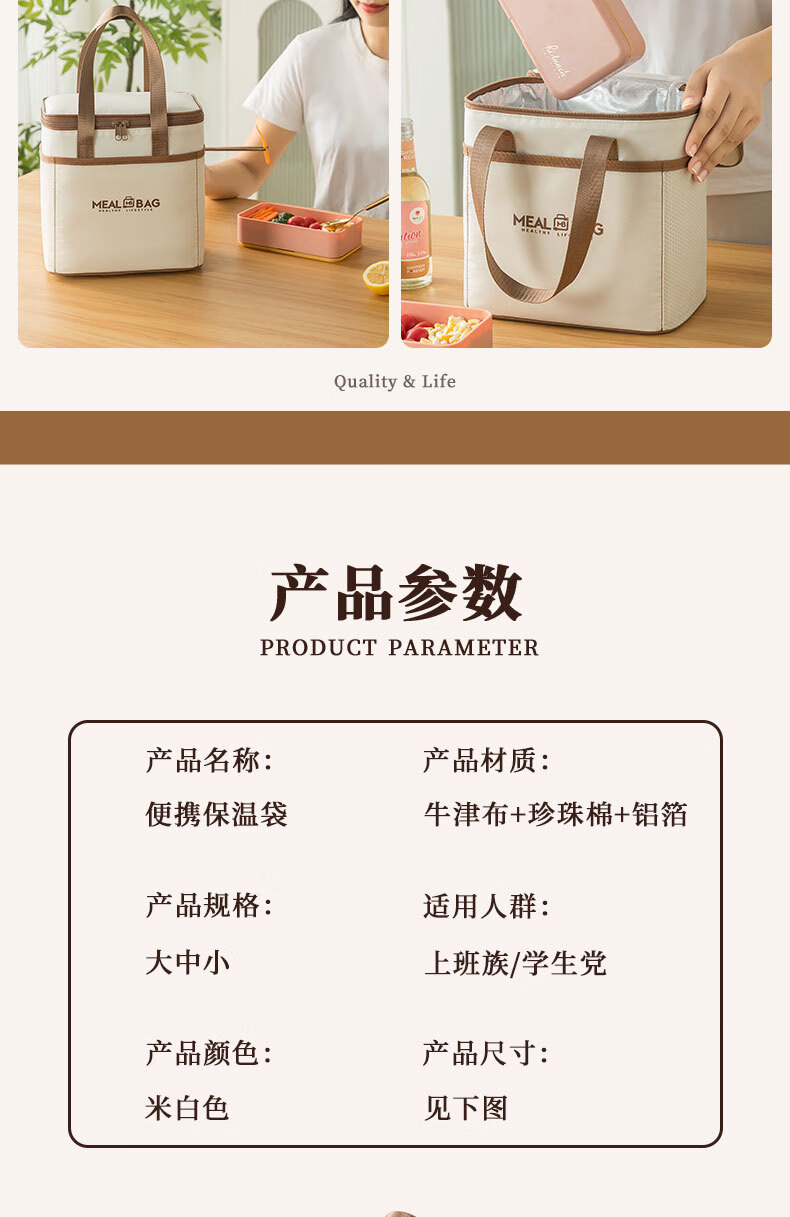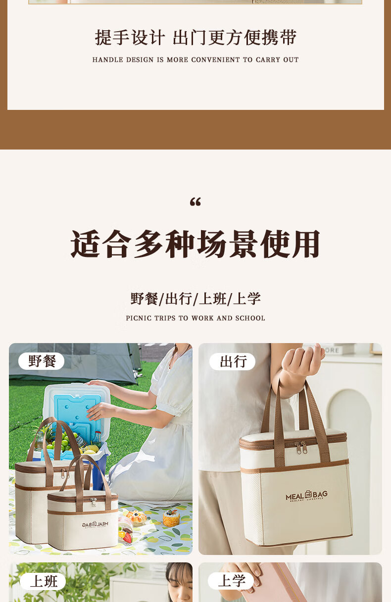 AILUKI日本饭盒保温袋手提袋子加厚铝箔上班族小学生带饭专用防水午餐包 咖色大号__耐磨尼龙 29*22*20cm