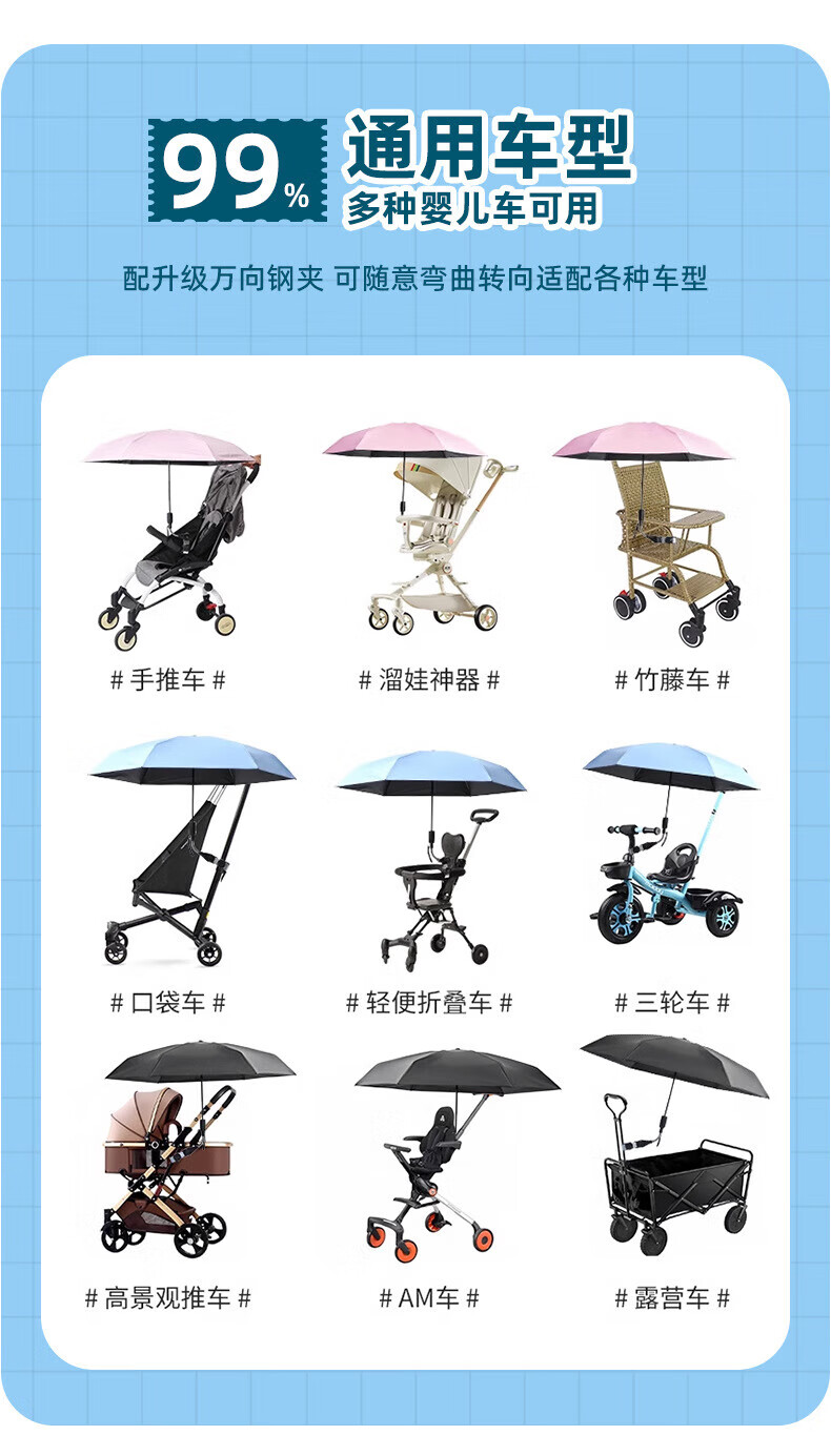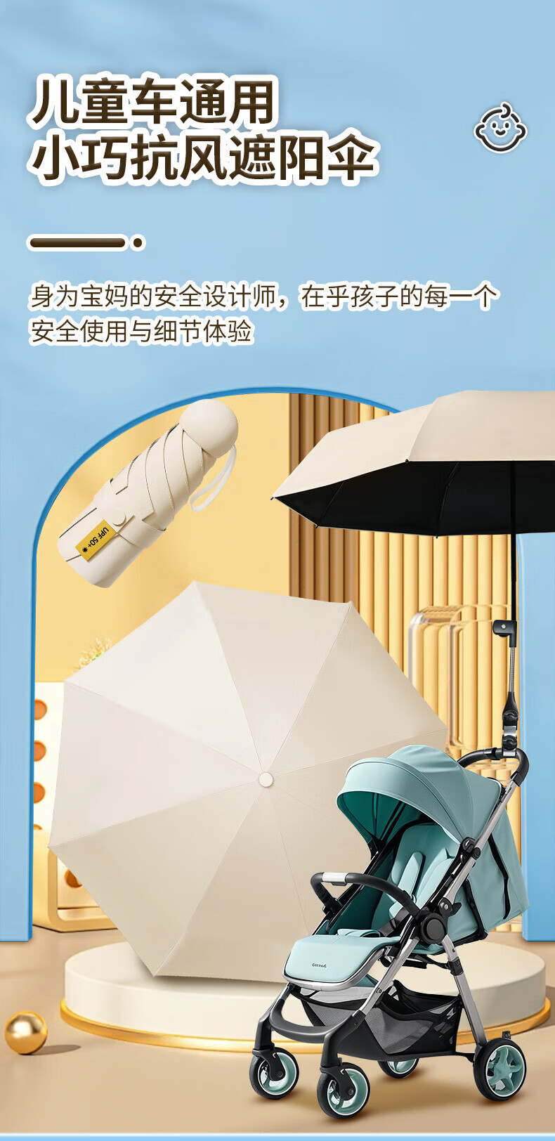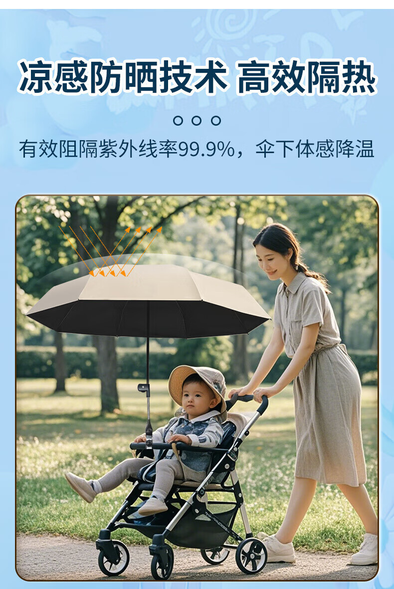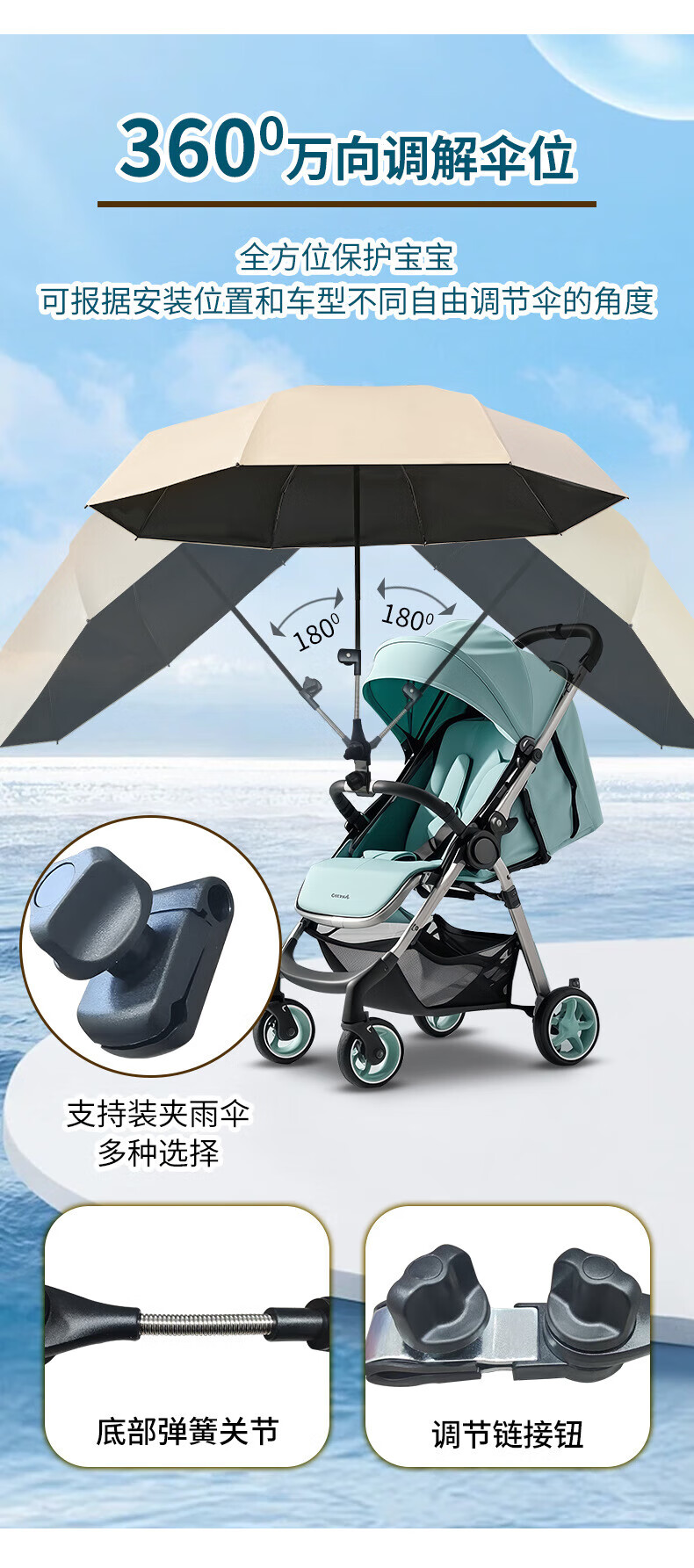 DEATKN德国加大婴儿车遮阳伞儿童户外专用防晒通用可折叠太阳伞遛娃 五折8骨]梧桐米加大96CM可折叠