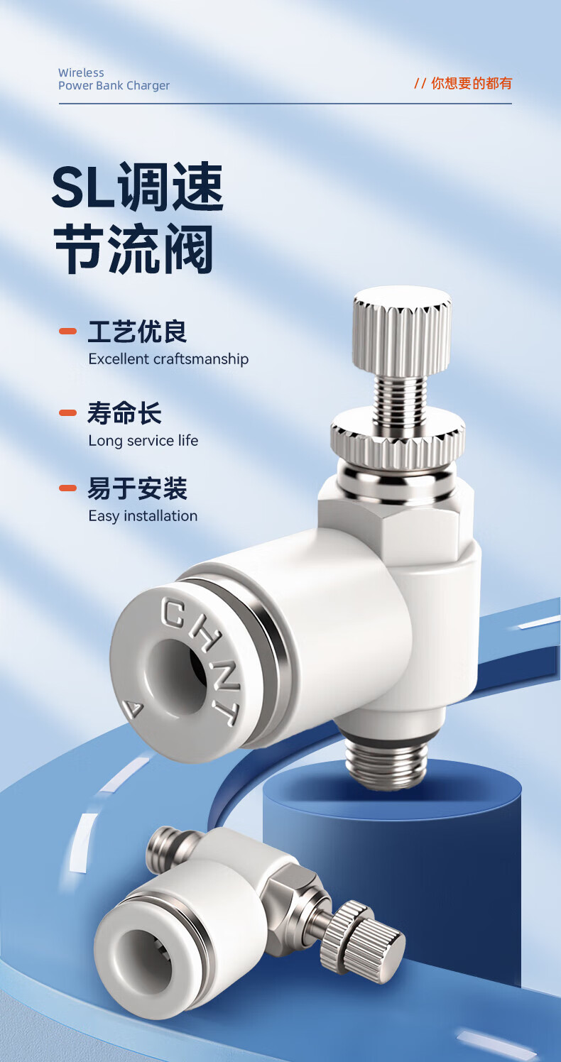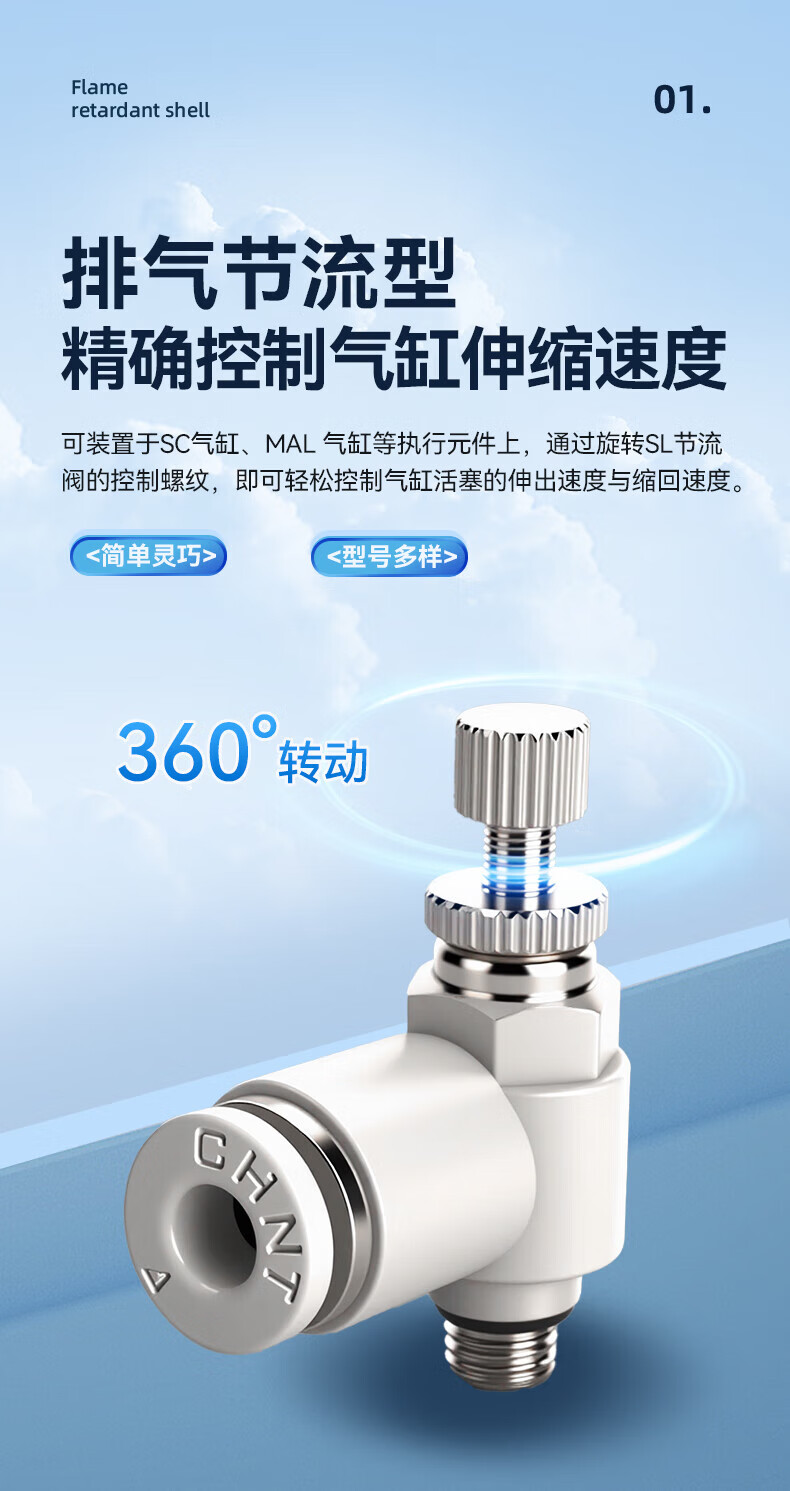 正泰(CHNT)气动气管快速接头 SL排气节流阀 气动元件调速限速节流阀 ZTP-SL4-M5