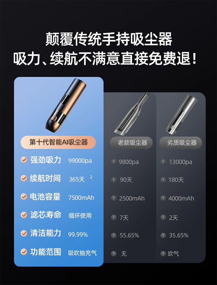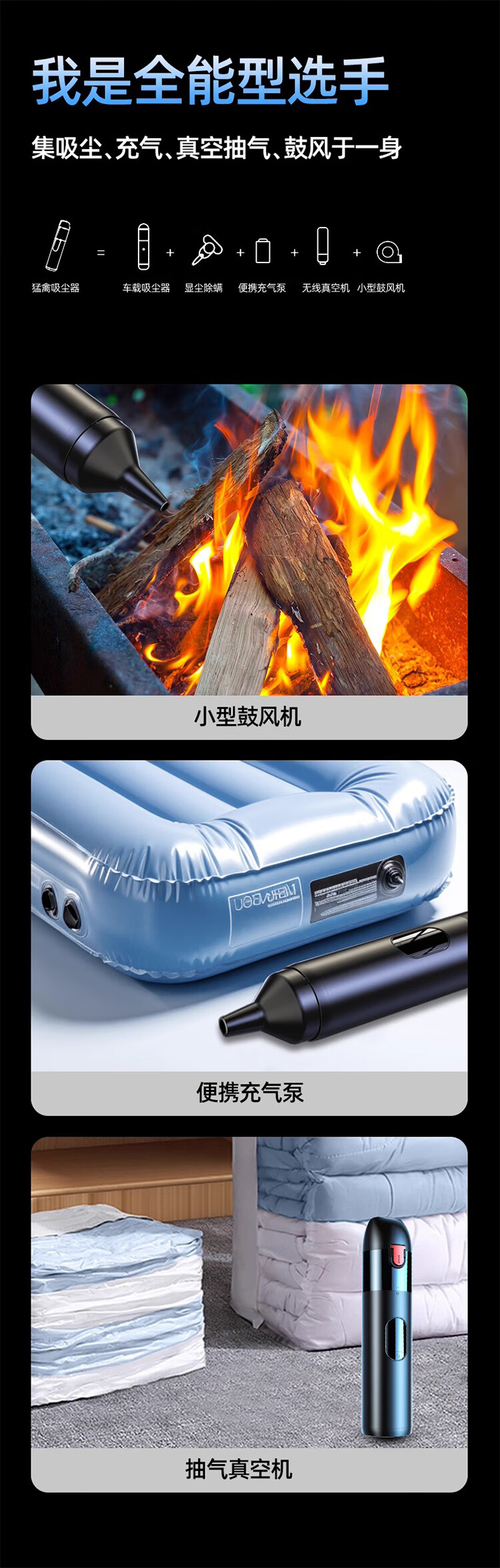 筏芯【德国】车载吸尘器手持吸尘器大吸力吸吹一体便携式车内用小型迷你家用桌面无线充电超强吸力高端 黑【旗舰八核Pro】标准大吸力|超长续航|吸吹抽充