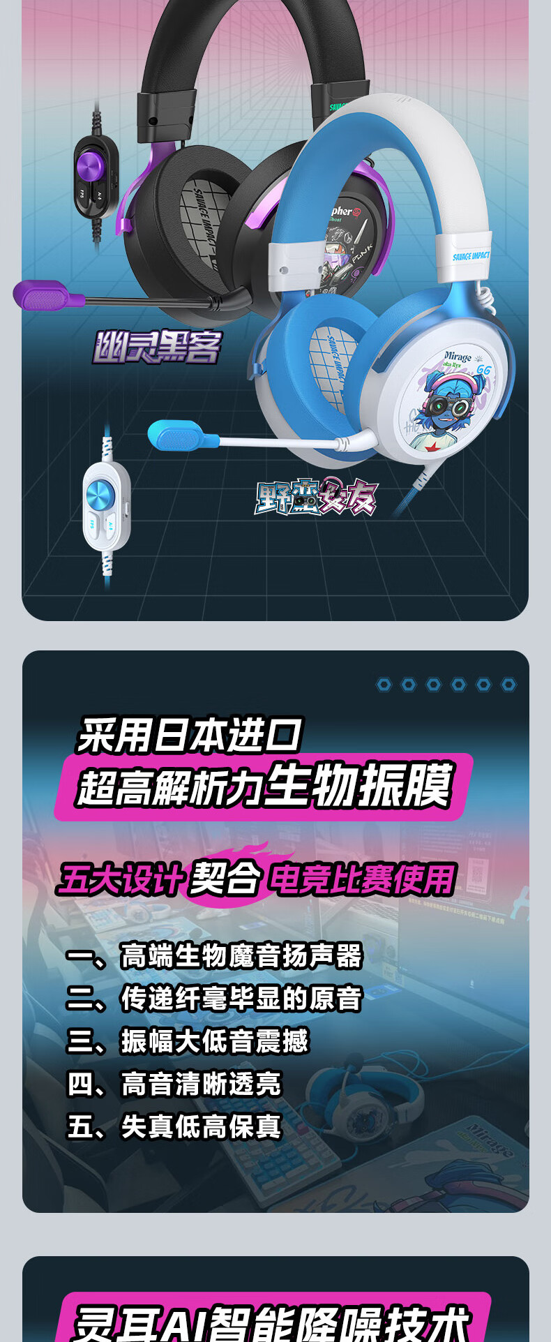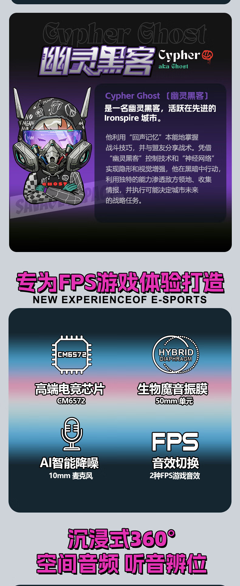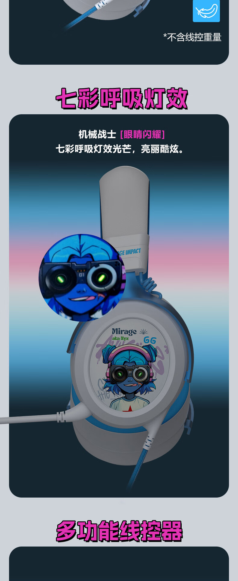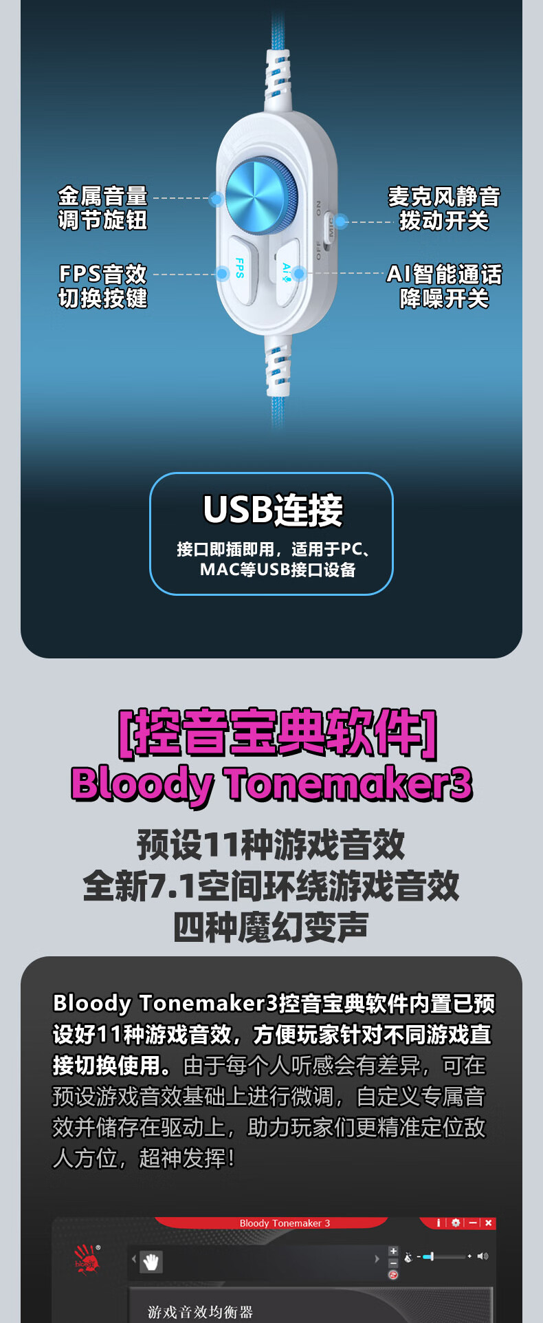 双飞燕(A4TECH)野蛮部落M595PRO 有线游戏耳机头戴式血手幽灵7.1吃鸡神器CS三角洲行动无畏契约电竞耳机 幽灵黑客