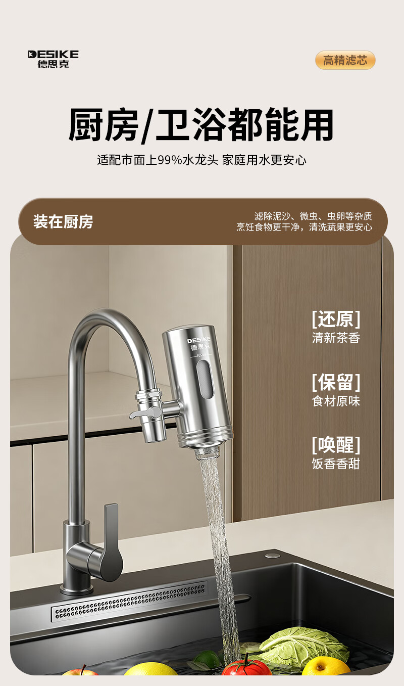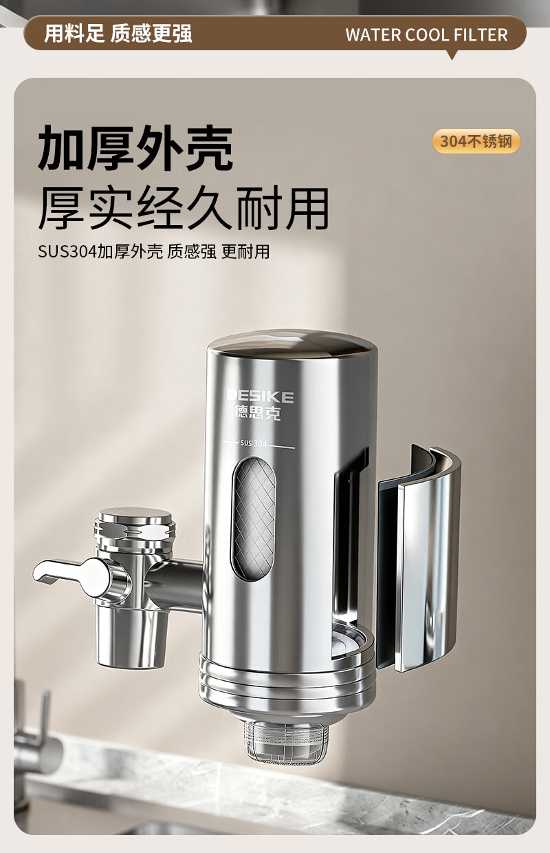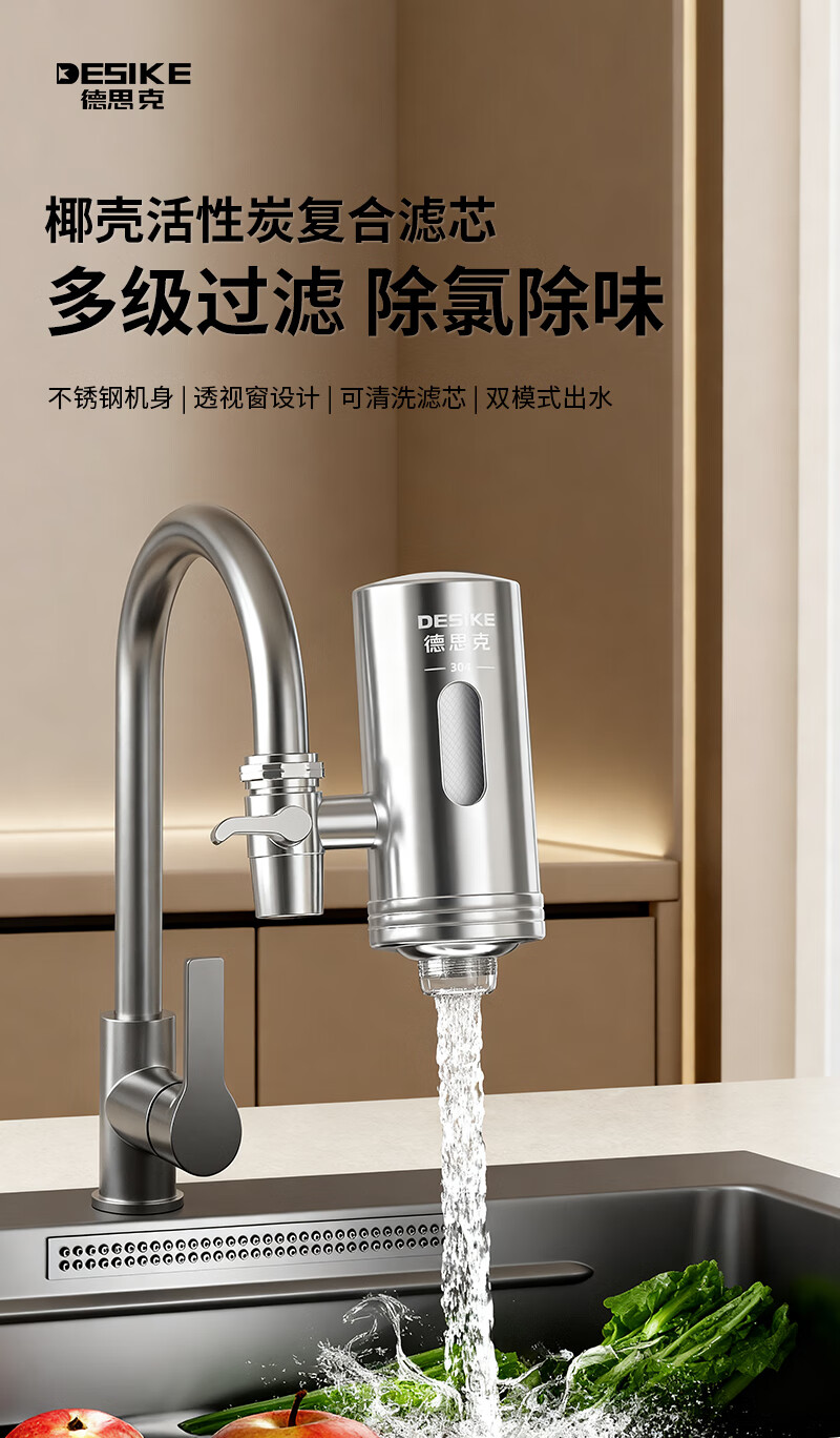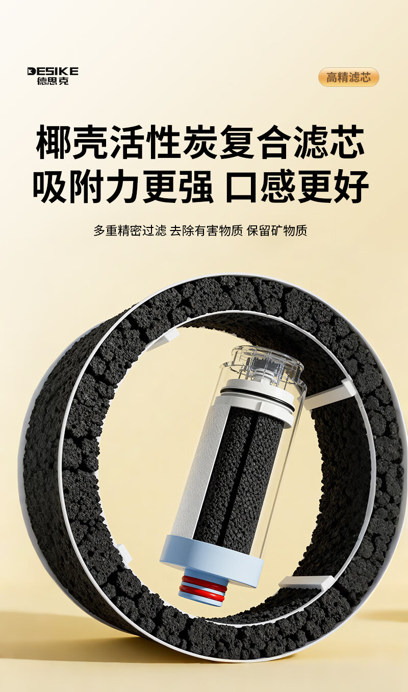德思克水龙头净水器除水垢余氯家用过滤水垢前置过滤器家用厨房自来水多层过滤 一机六芯【进口椰壳活性碳滤芯】