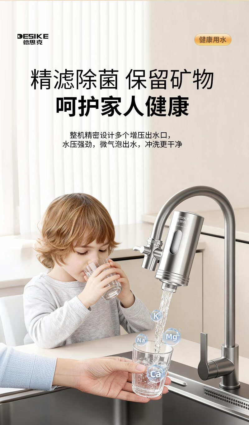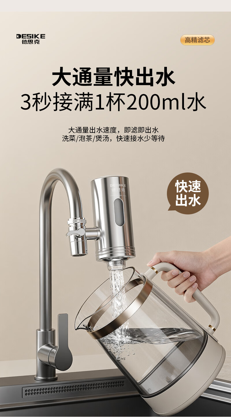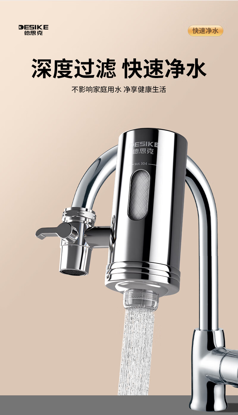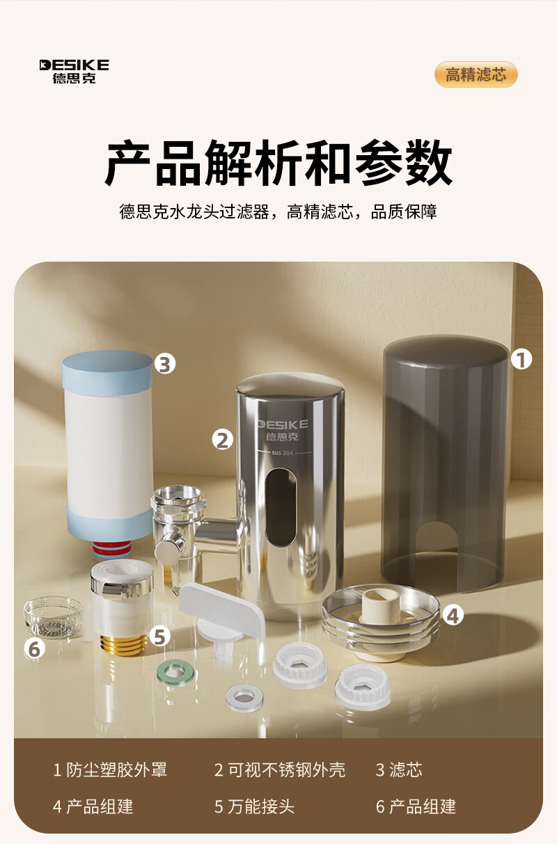 德思克水龙头净水器除水垢余氯家用过滤水垢前置过滤器家用厨房自来水多层过滤 一机六芯【进口椰壳活性碳滤芯】
