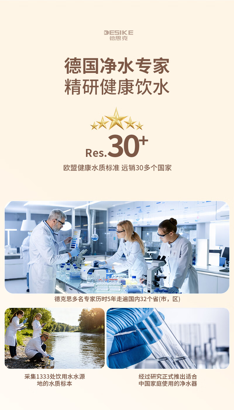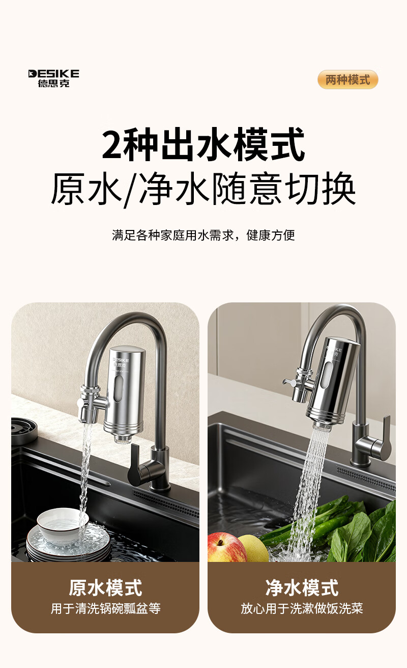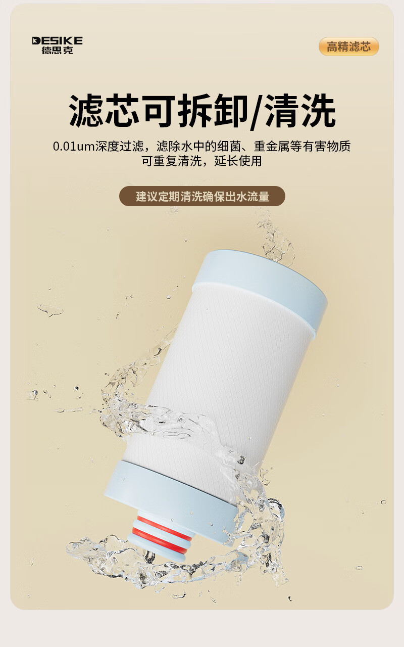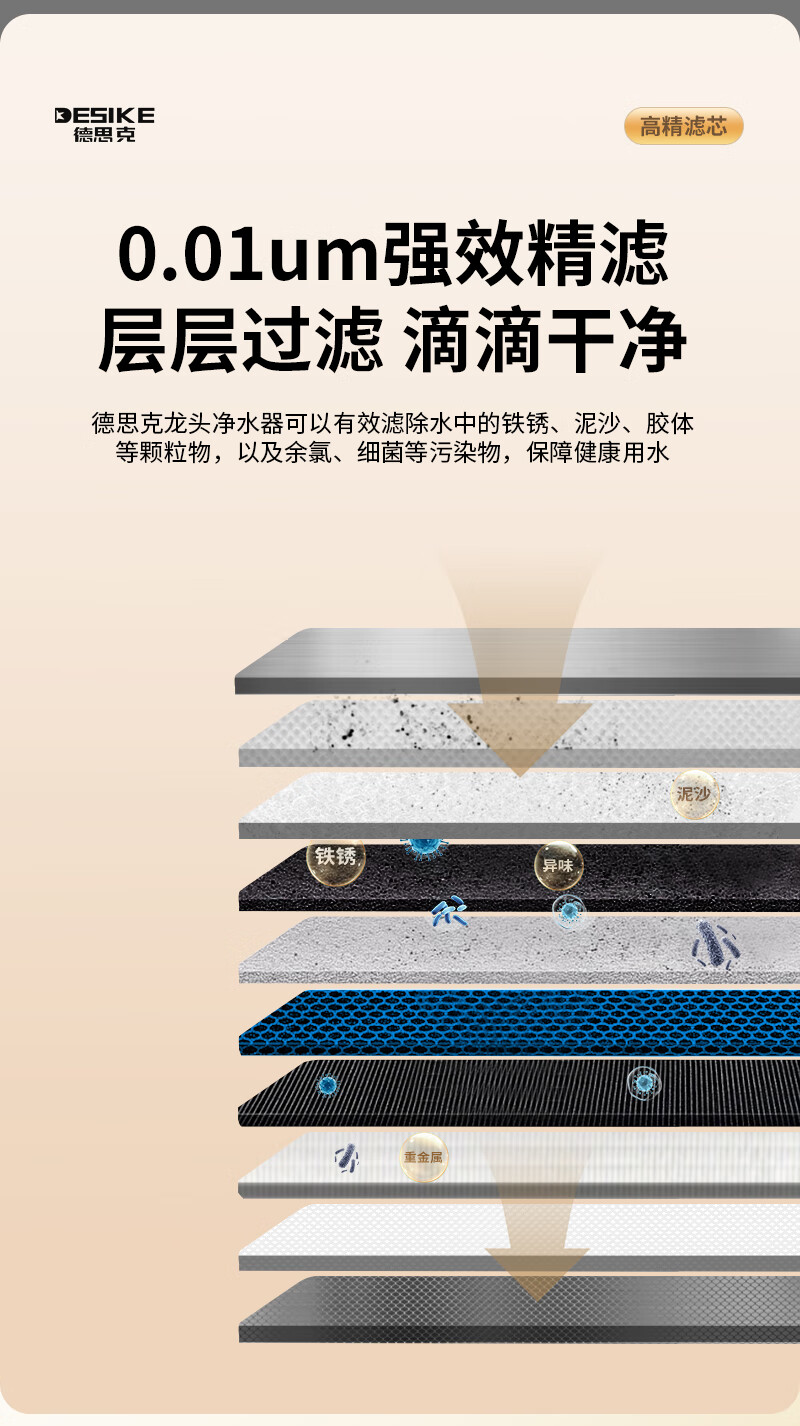 德思克水龙头净水器除水垢余氯家用过滤水垢前置过滤器家用厨房自来水多层过滤 一机六芯【进口椰壳活性碳滤芯】