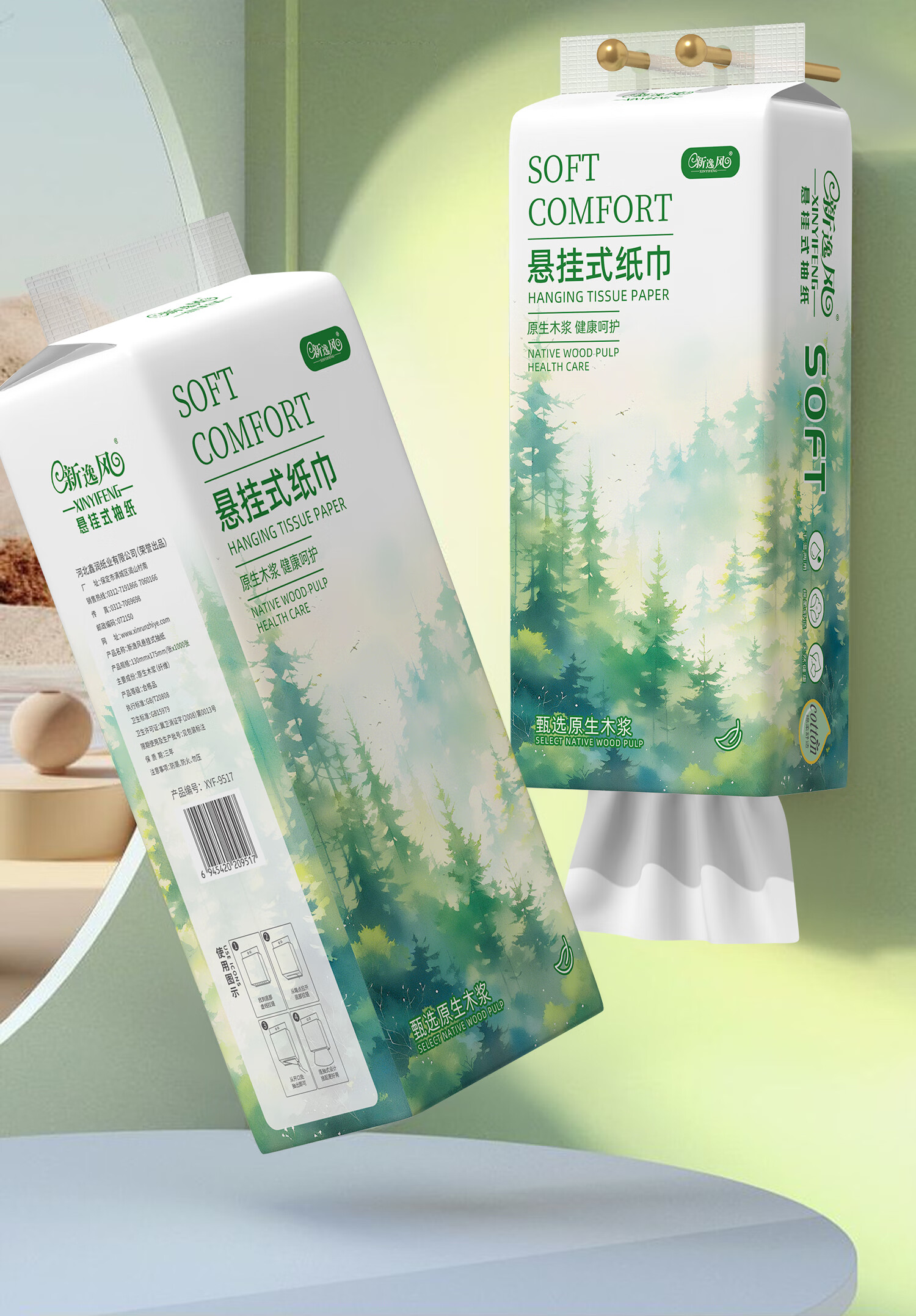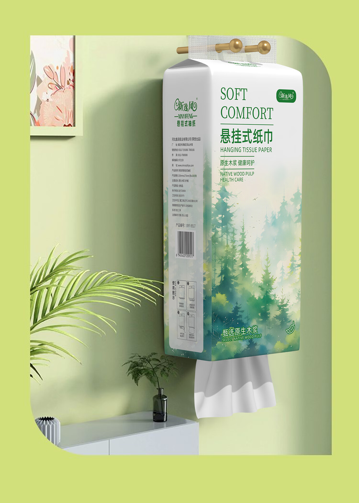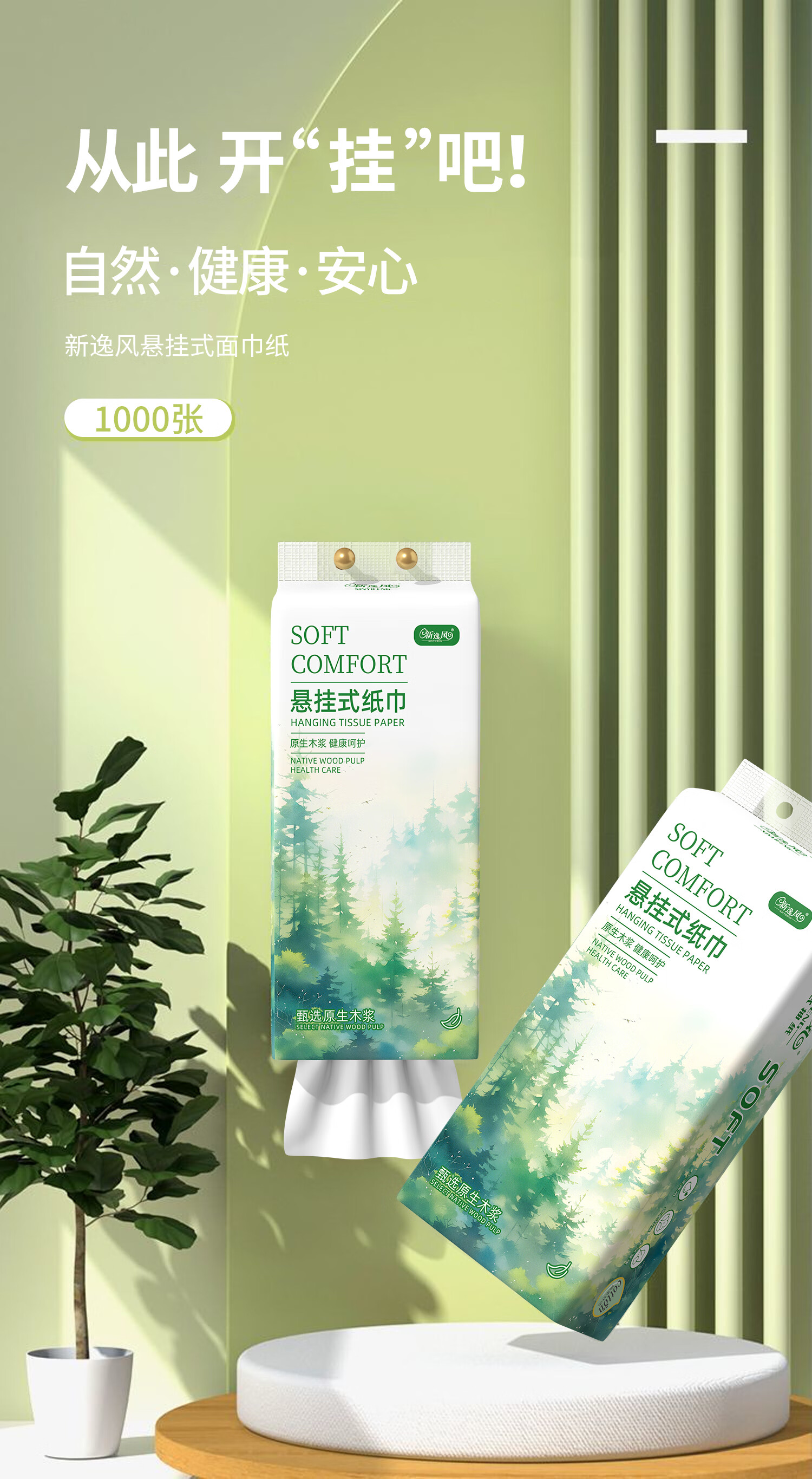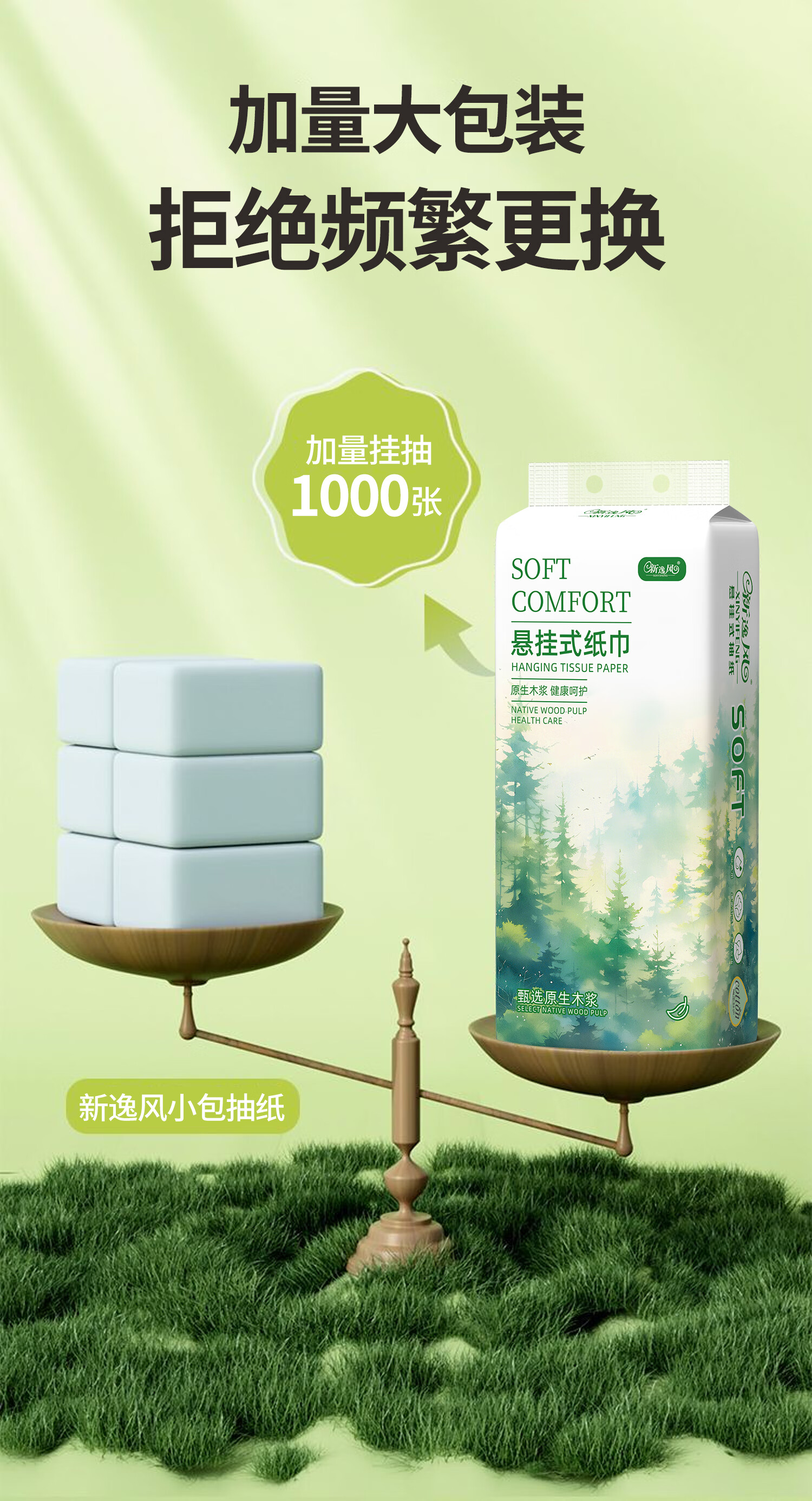 新逸风挂式抽纸 纸巾面巾纸 悬挂卫生纸抽 擦手用纸 【活动款】5层1000张*6提