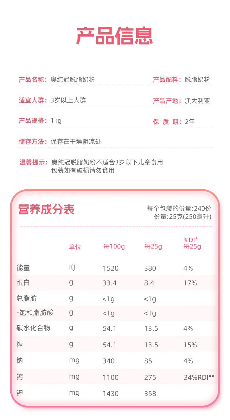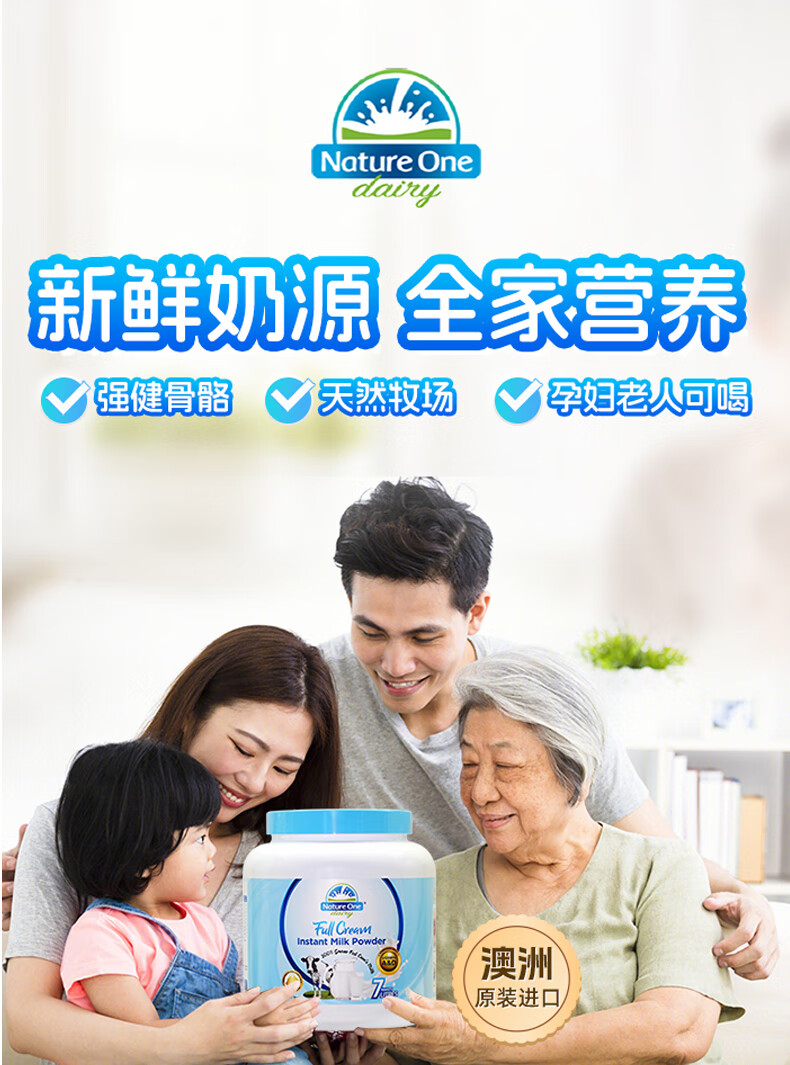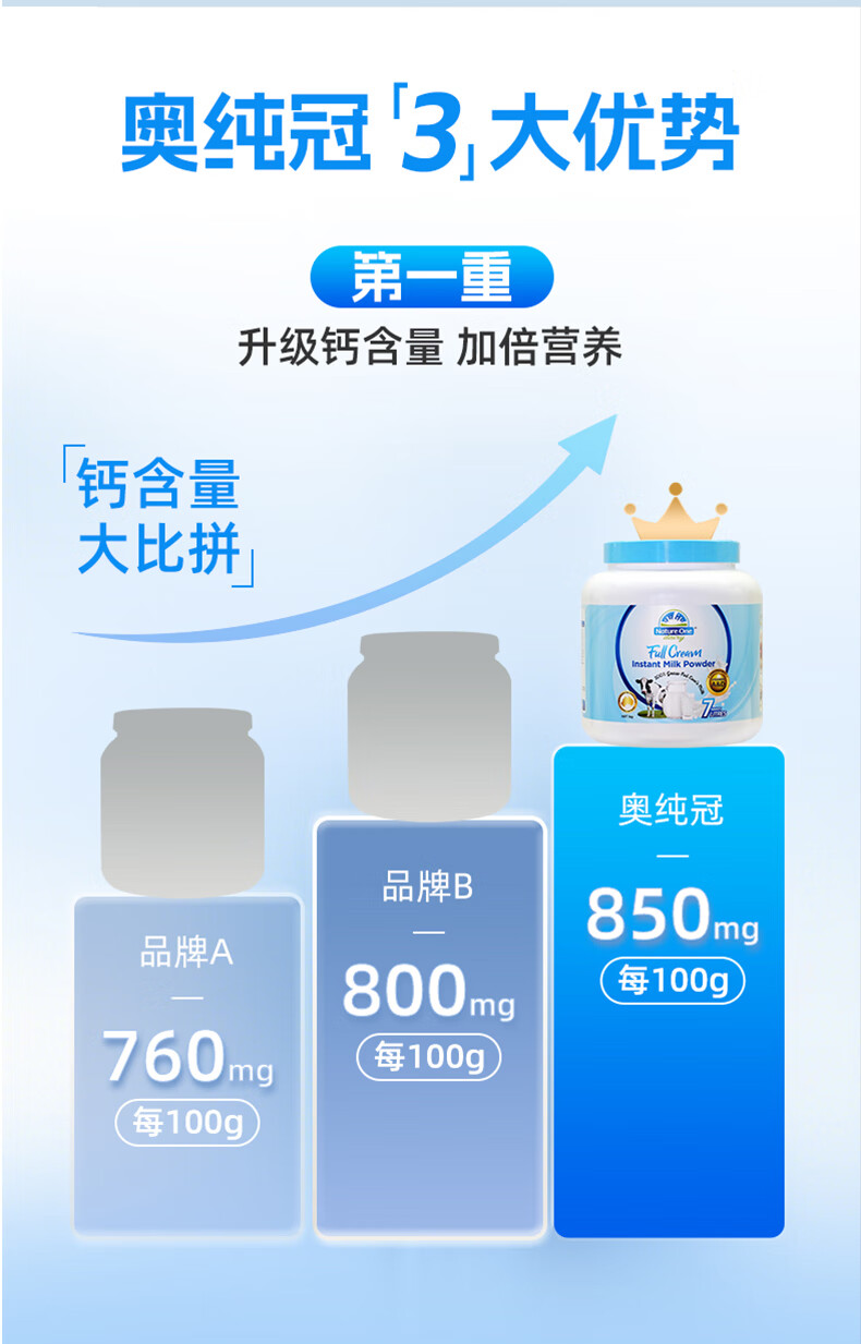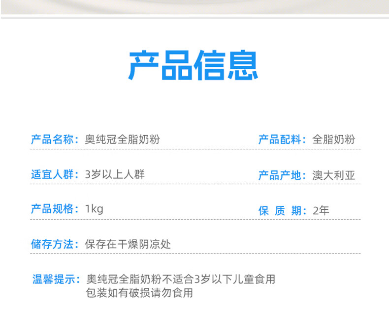 奥纯冠 澳洲成人奶粉进口蓝胖子青少年学生儿童奶粉高钙老年孕妇奶粉 全脂奶粉(蓝胖子)1kg *2罐(效期至26年5月) 保税仓发货
