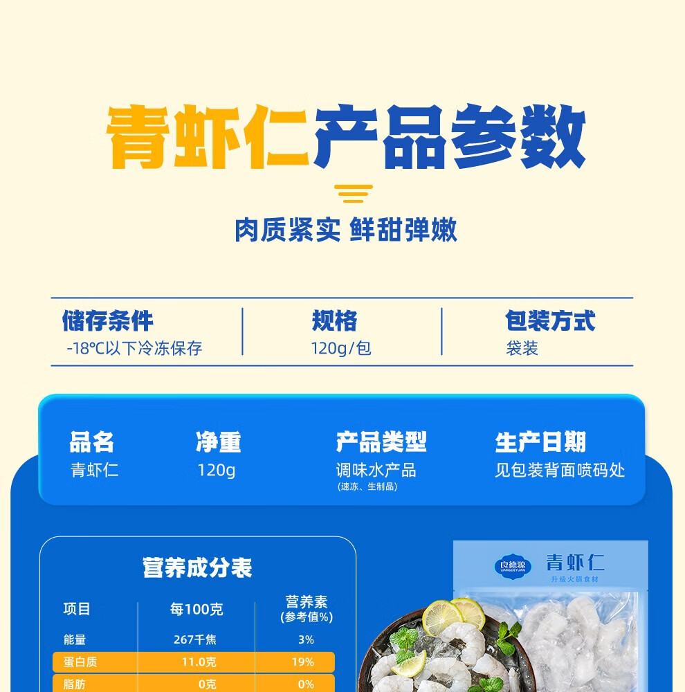 良德源国产北海大号青虾仁净重低脂食材火锅凉拌虾肉手工去虾线速食食材 国产青虾仁*6包共 720g(净重)