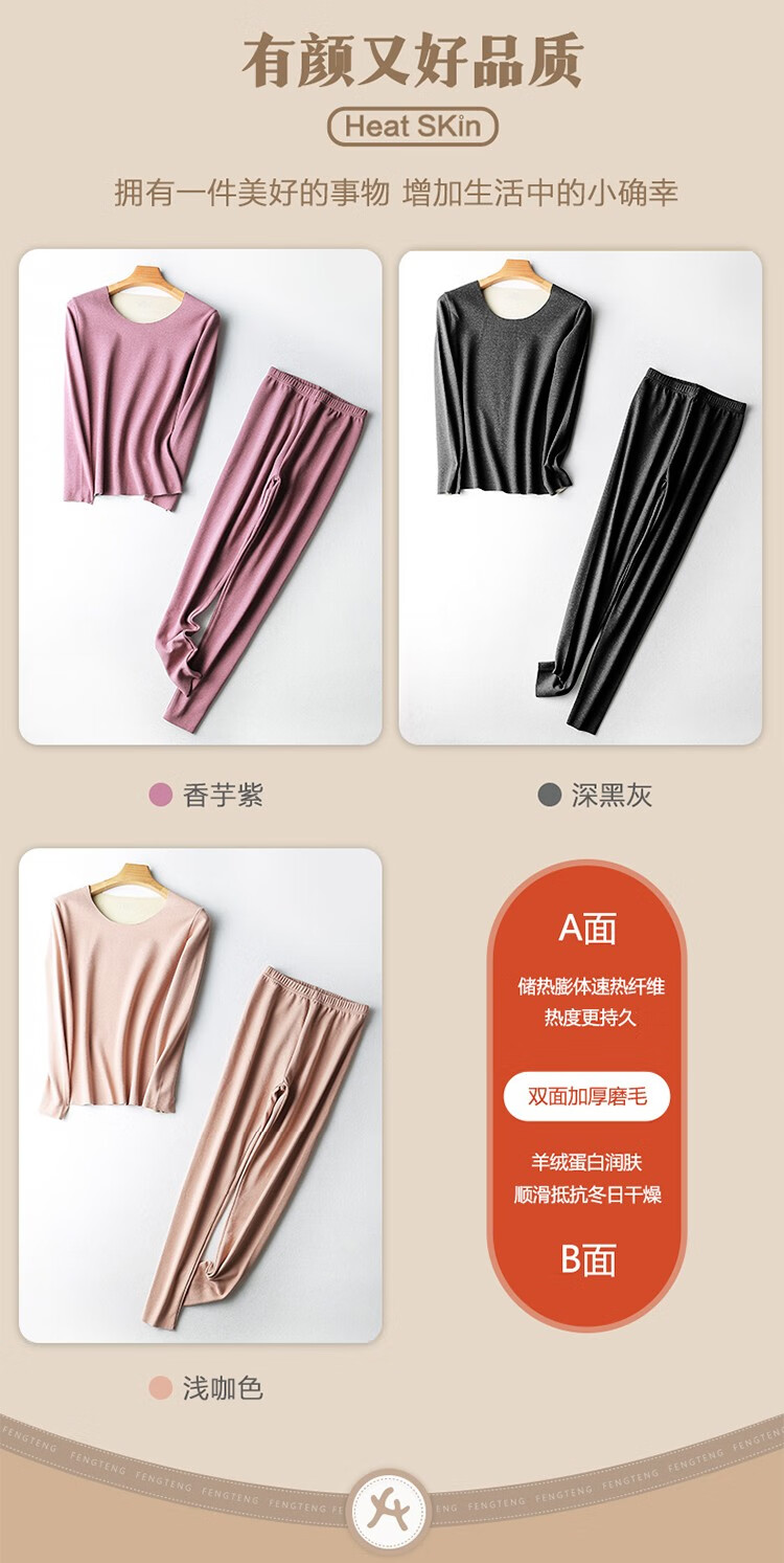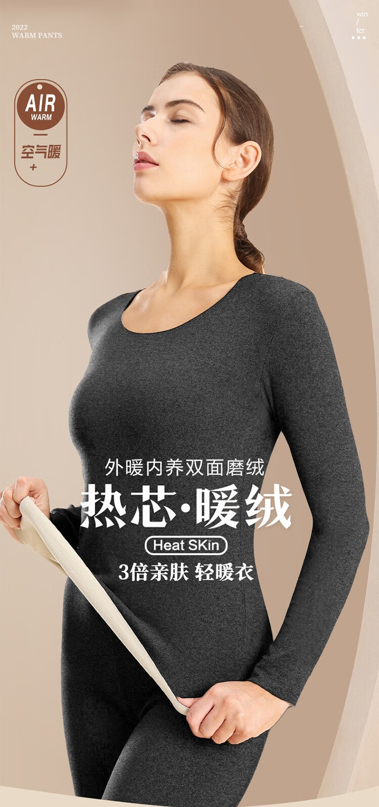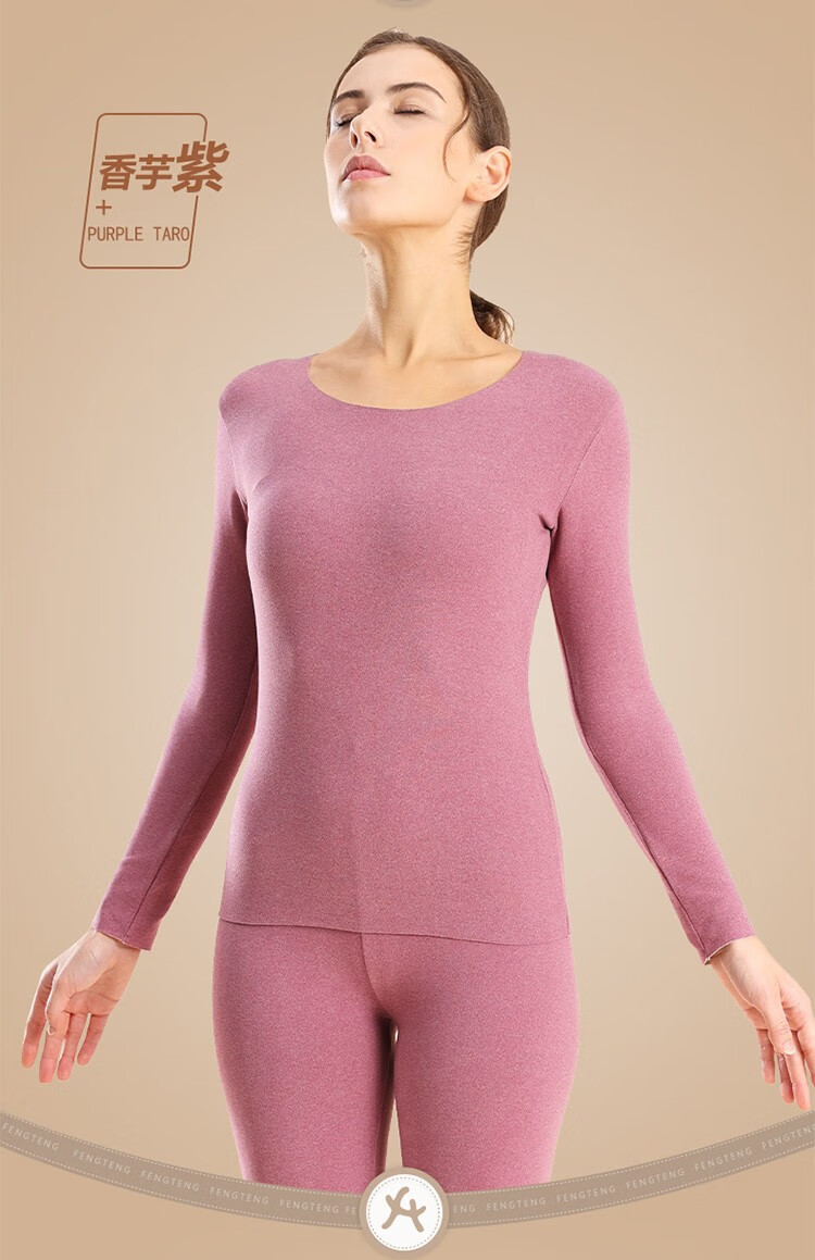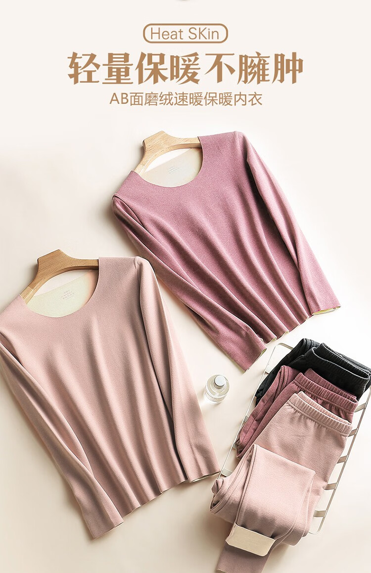 华婷露(Huatinglu) 保暖内衣女双面磨绒修身美体打底内衣抗寒保暖套装圆领打底衫 红色 套装 L (适合85-100斤穿)