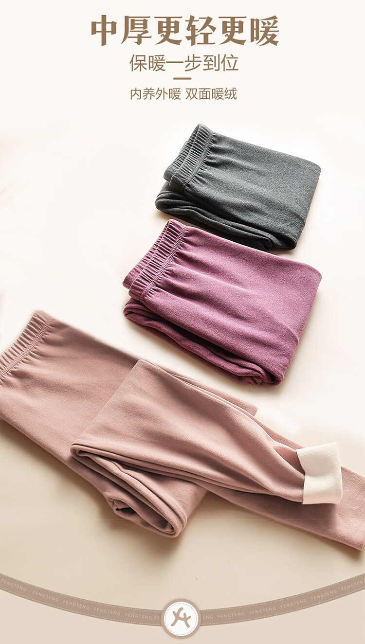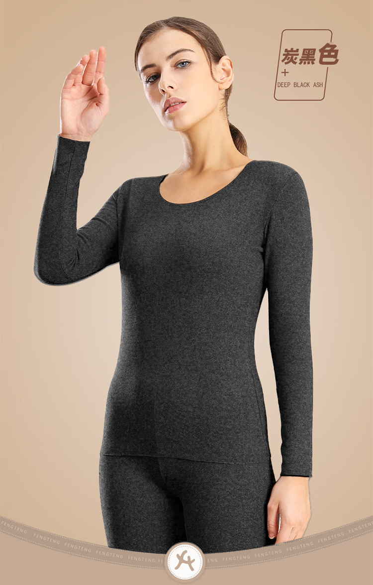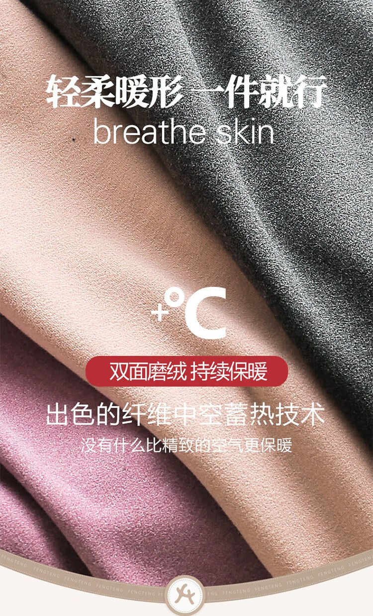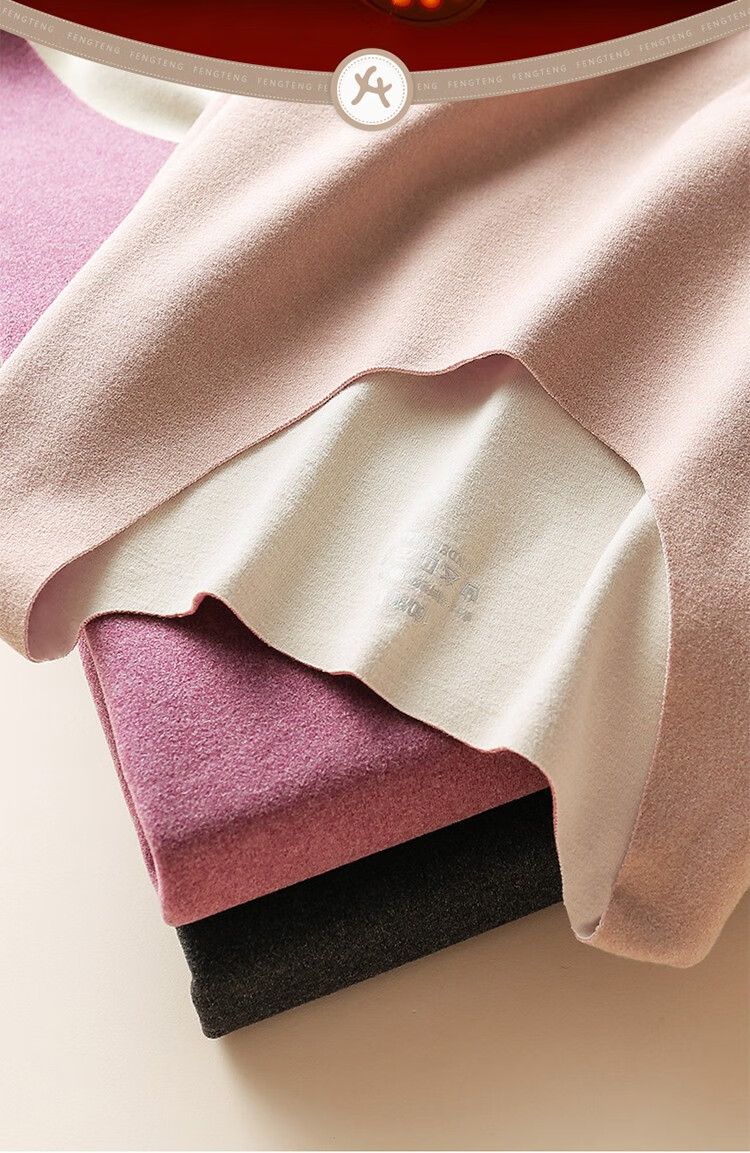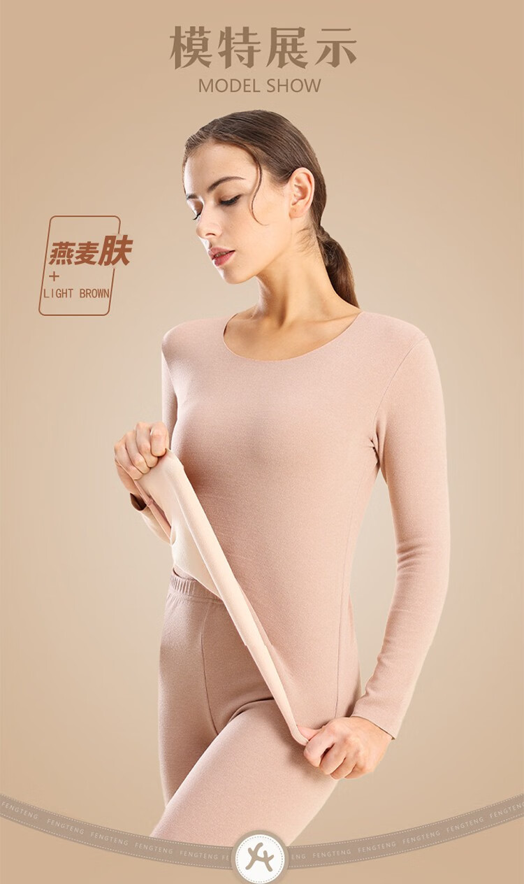 华婷露(Huatinglu) 保暖内衣女双面磨绒修身美体打底内衣抗寒保暖套装圆领打底衫 红色 套装 L (适合85-100斤穿)