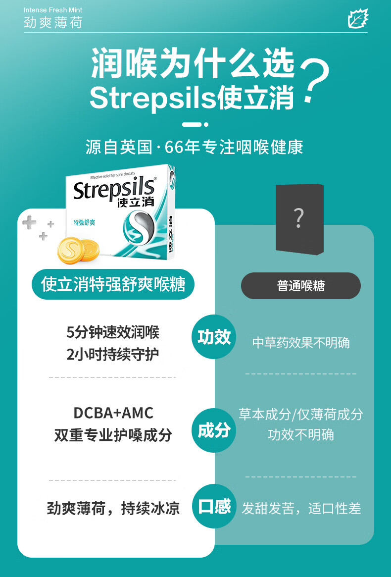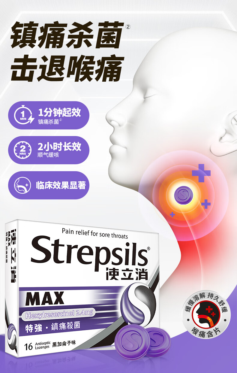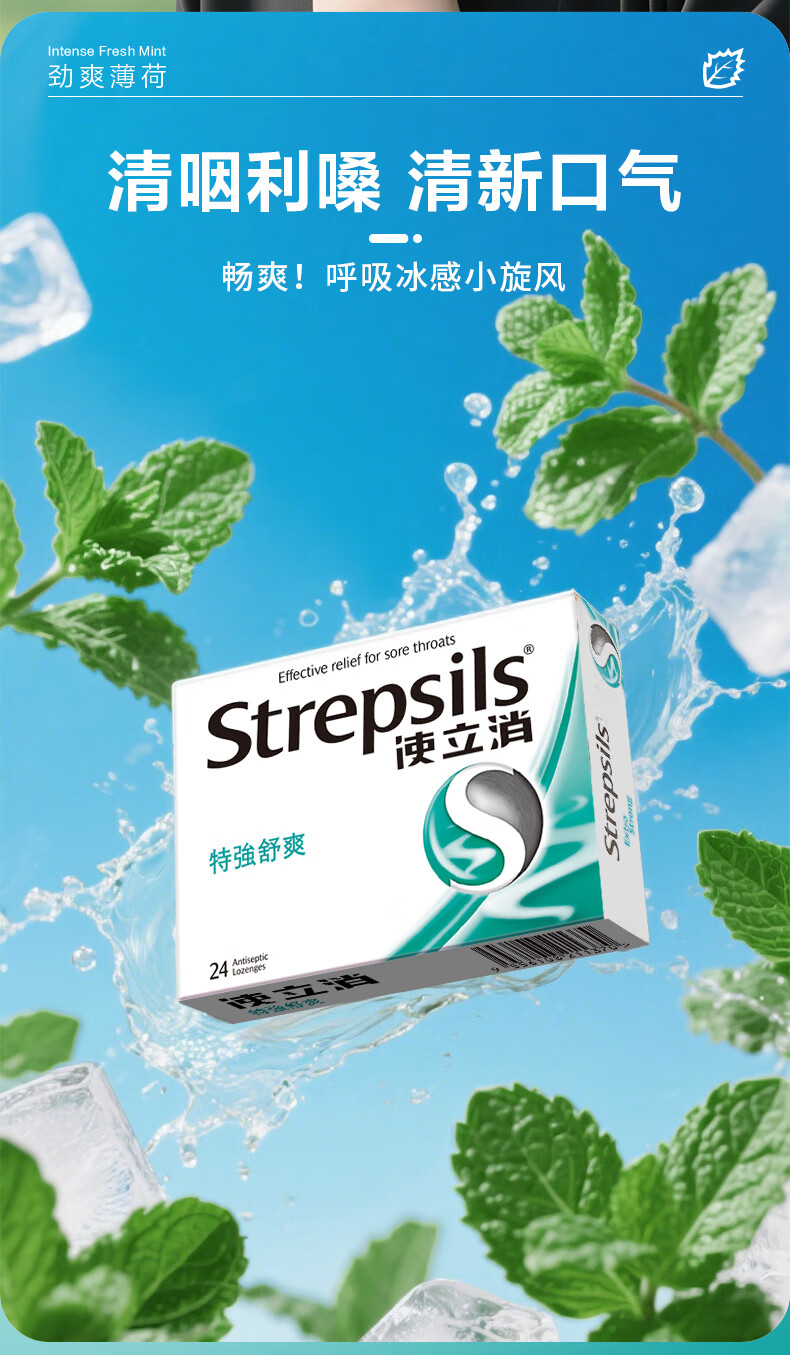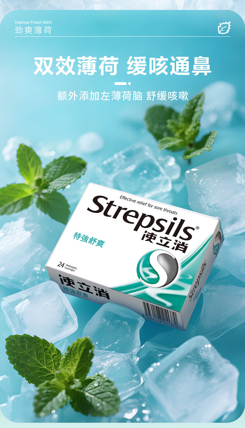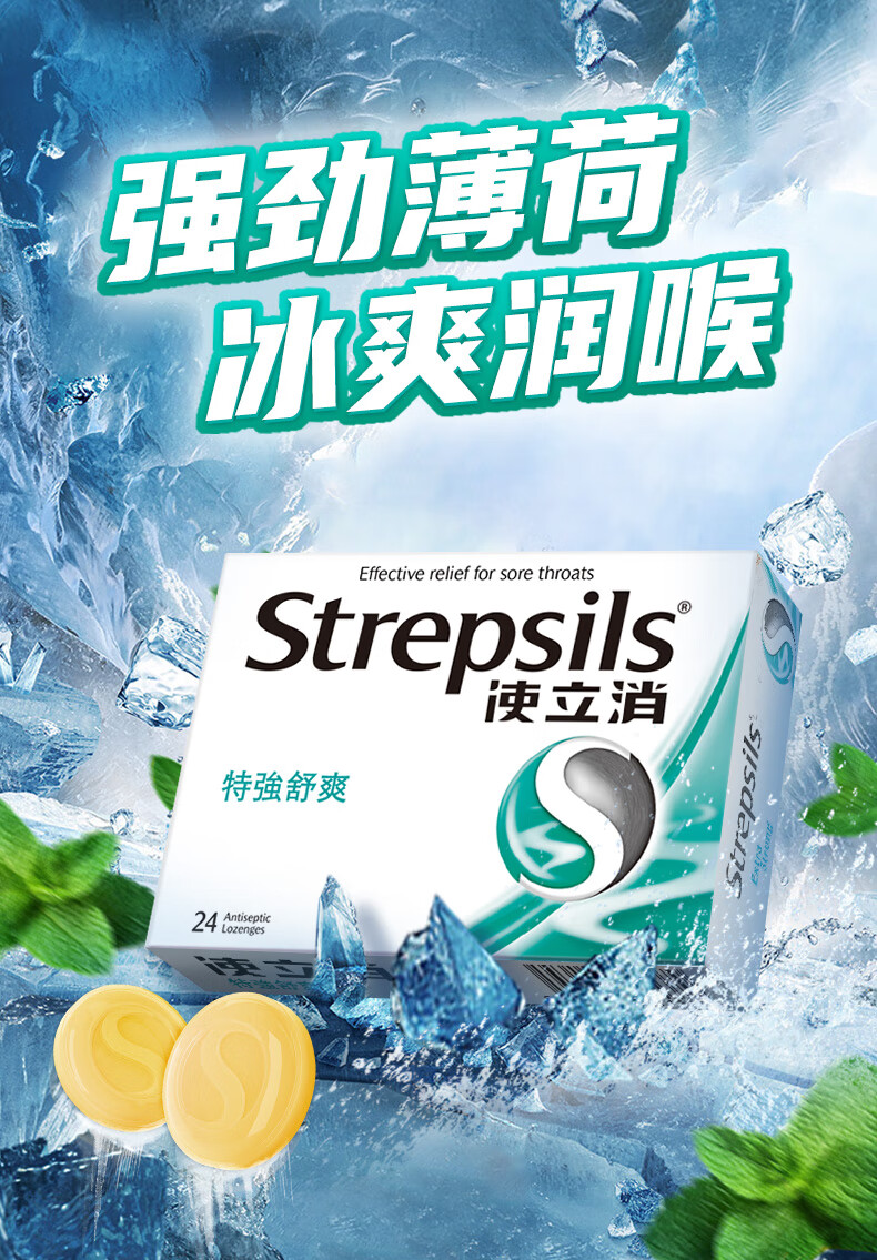 使立消Strepsils润喉糖止咳含片咽炎 咽喉炎镇痛嗓子疼痒喉咙肿痛咳嗽止疼药冰喉除口臭薄荷糖进口 【爆款推荐】镇痛杀菌16粒