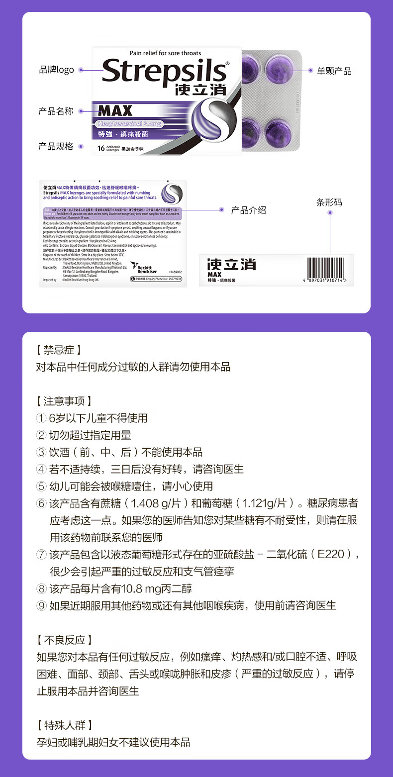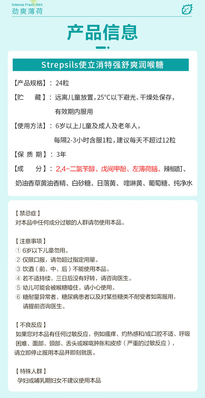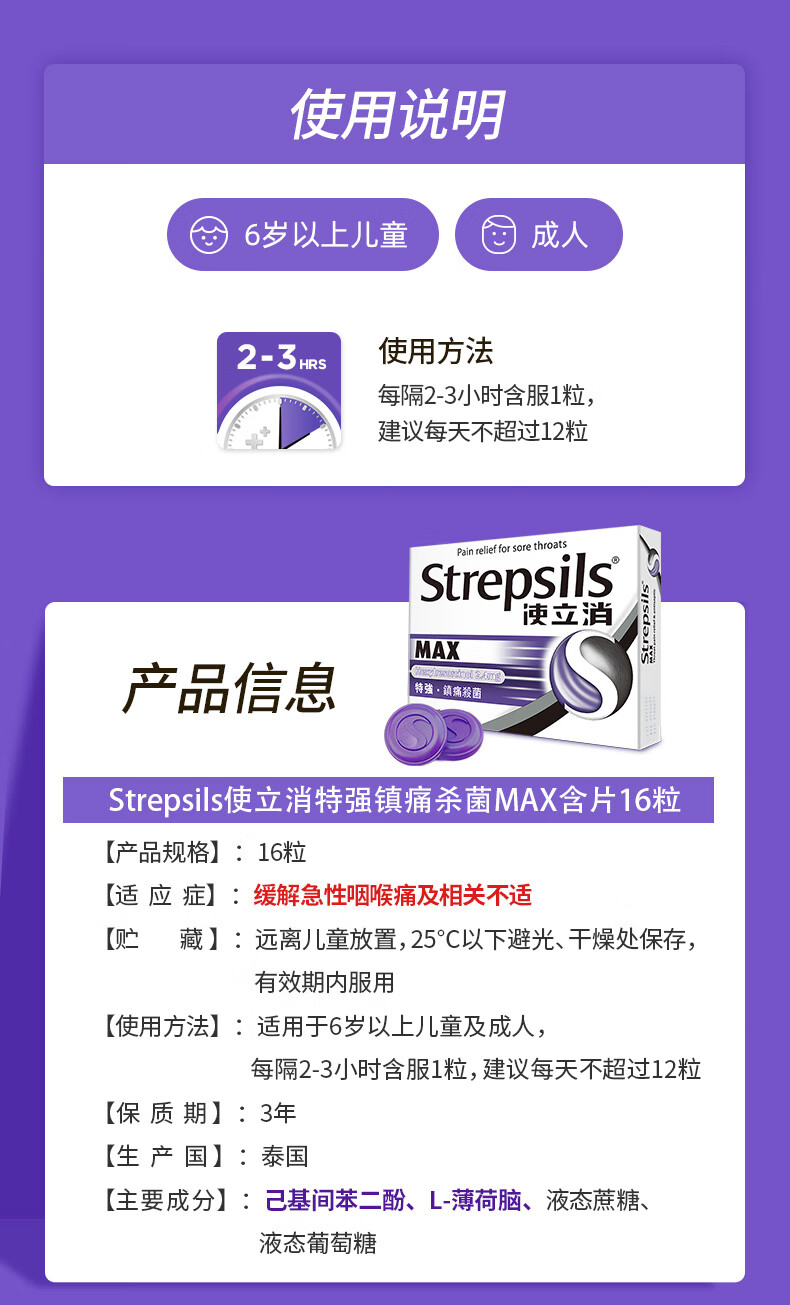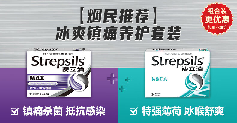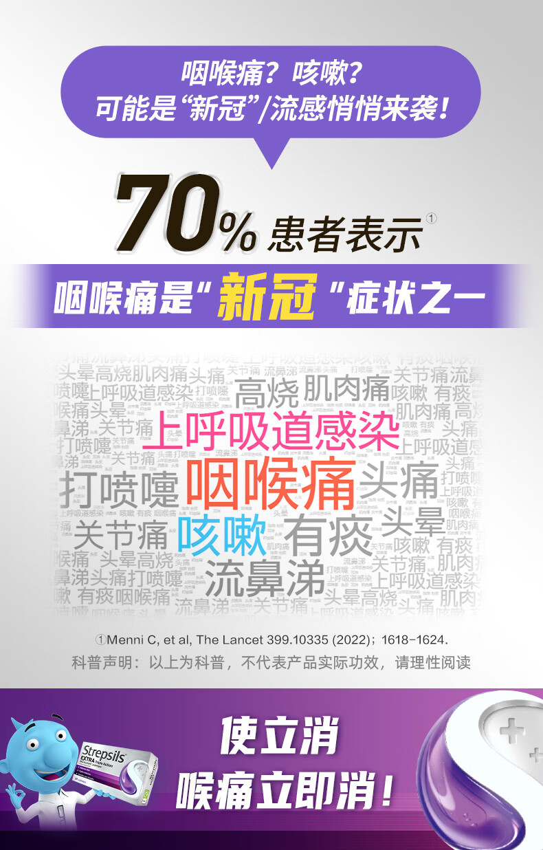 使立消Strepsils润喉糖止咳含片咽炎 咽喉炎镇痛嗓子疼痒喉咙肿痛咳嗽止疼药冰喉除口臭薄荷糖进口 【爆款推荐】镇痛杀菌16粒
