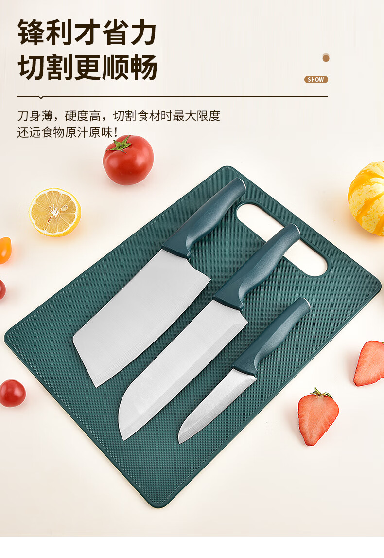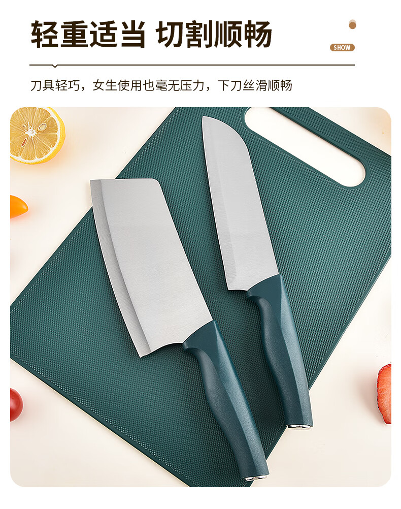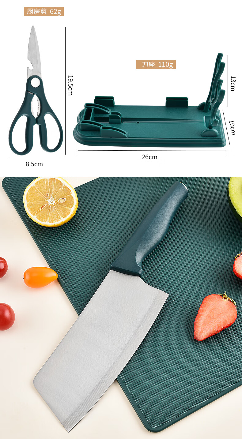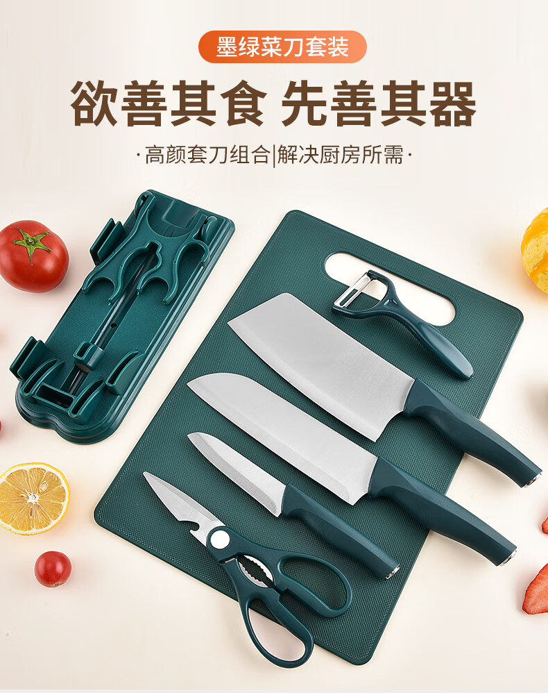 匠小品家用小菜刀菜板二合一厨房案板套装宿舍便携刀具砧板锋利宝宝辅食 墨绿菜刀4件套