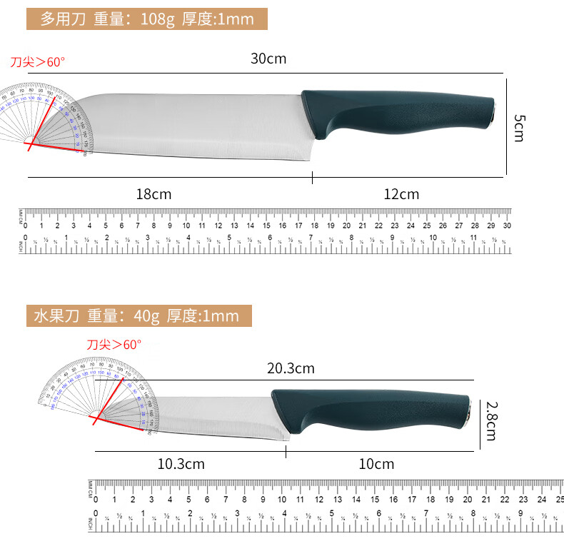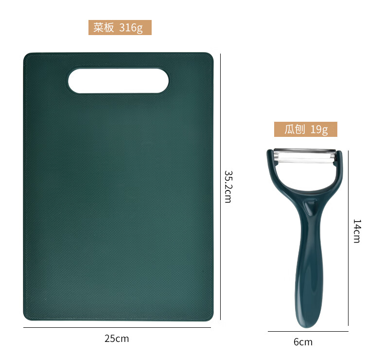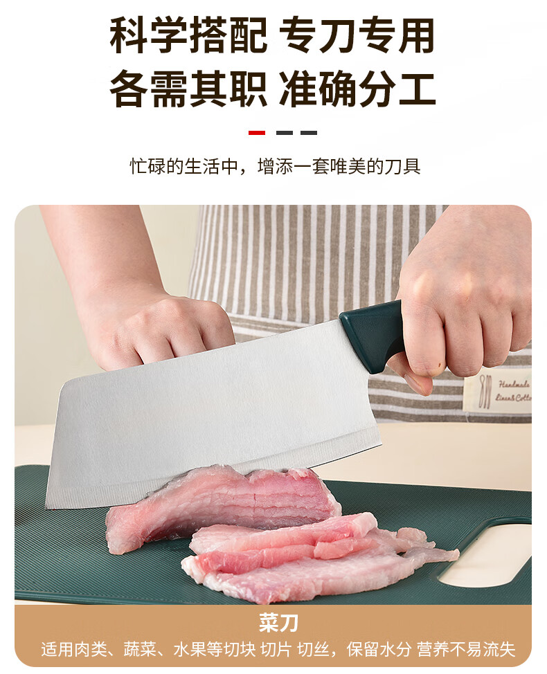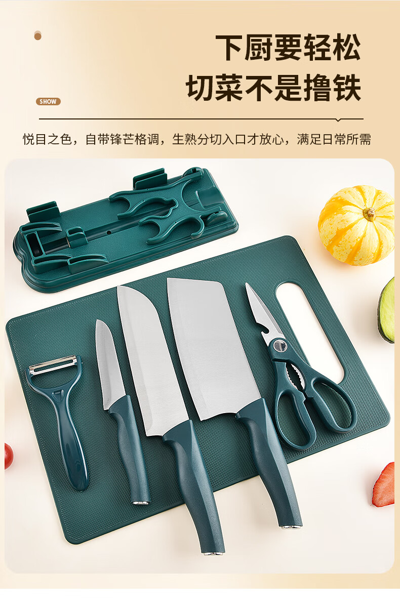 匠小品家用小菜刀菜板二合一厨房案板套装宿舍便携刀具砧板锋利宝宝辅食 墨绿菜刀4件套