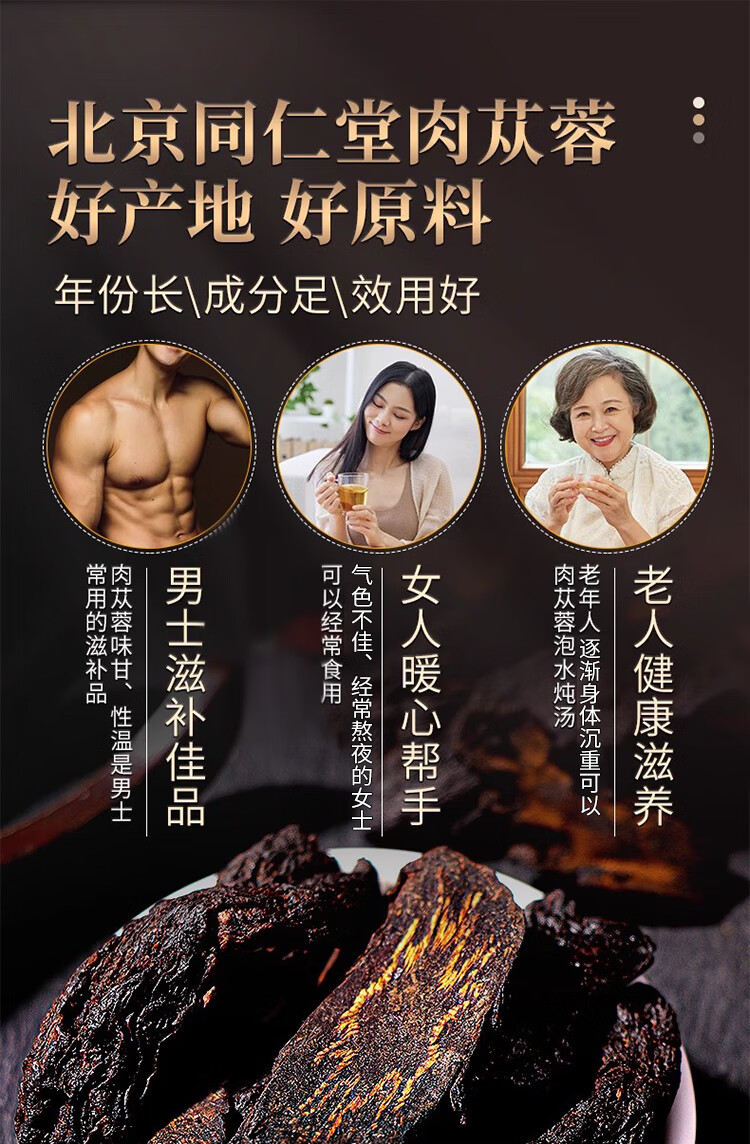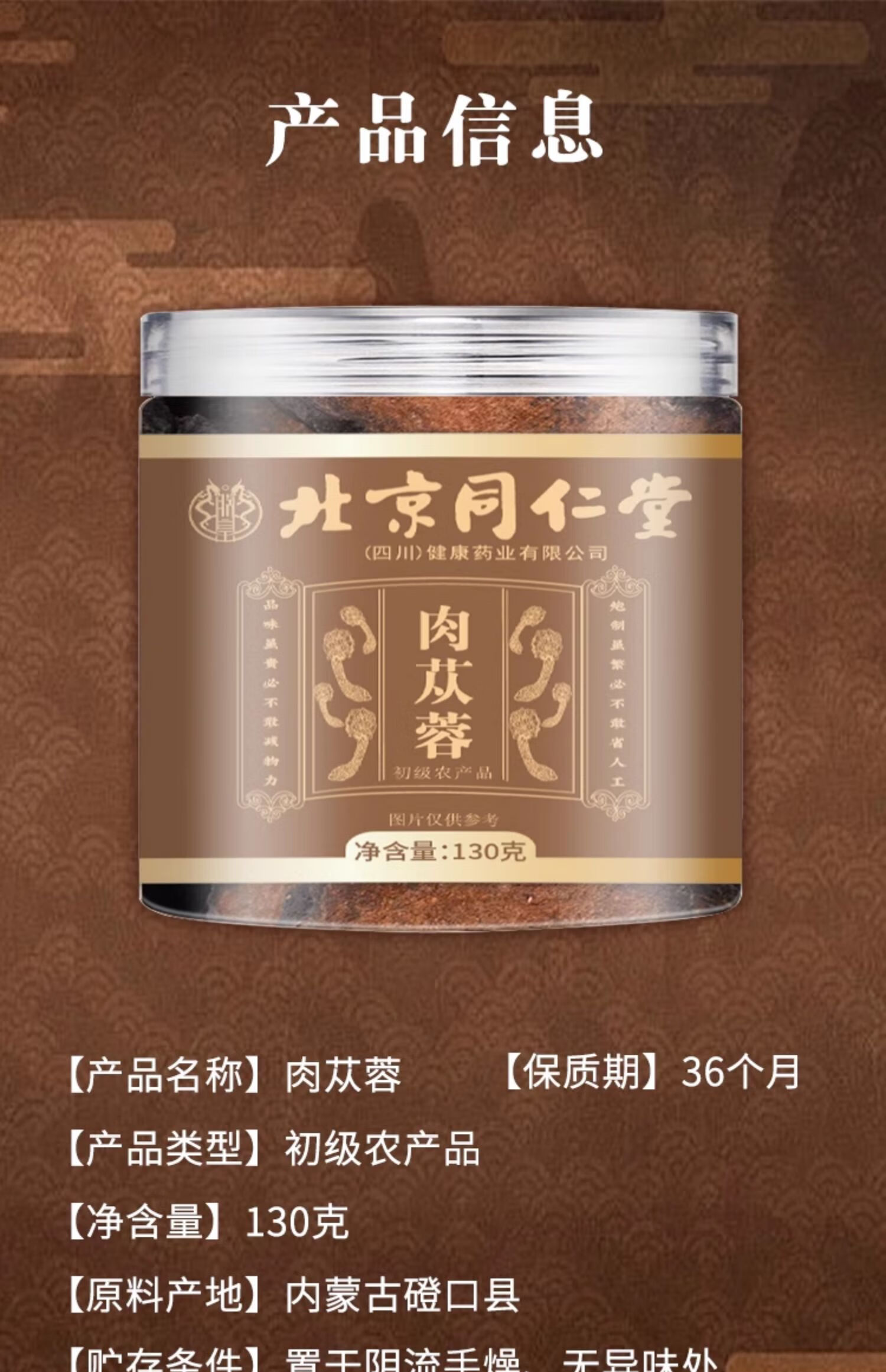朕皇北京同仁堂肉苁蓉片特级正品搭黄精菟丝子淫羊藿非中药材滋补 【1盒体验装】130g/盒