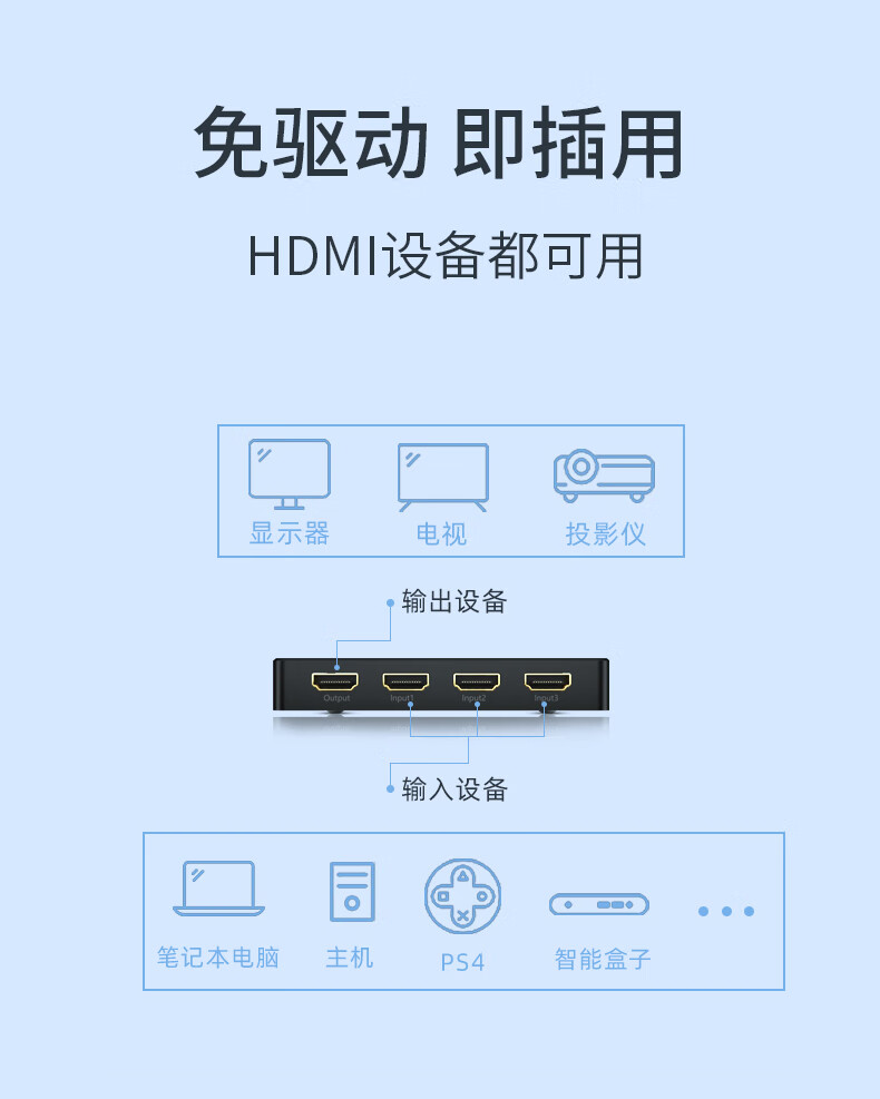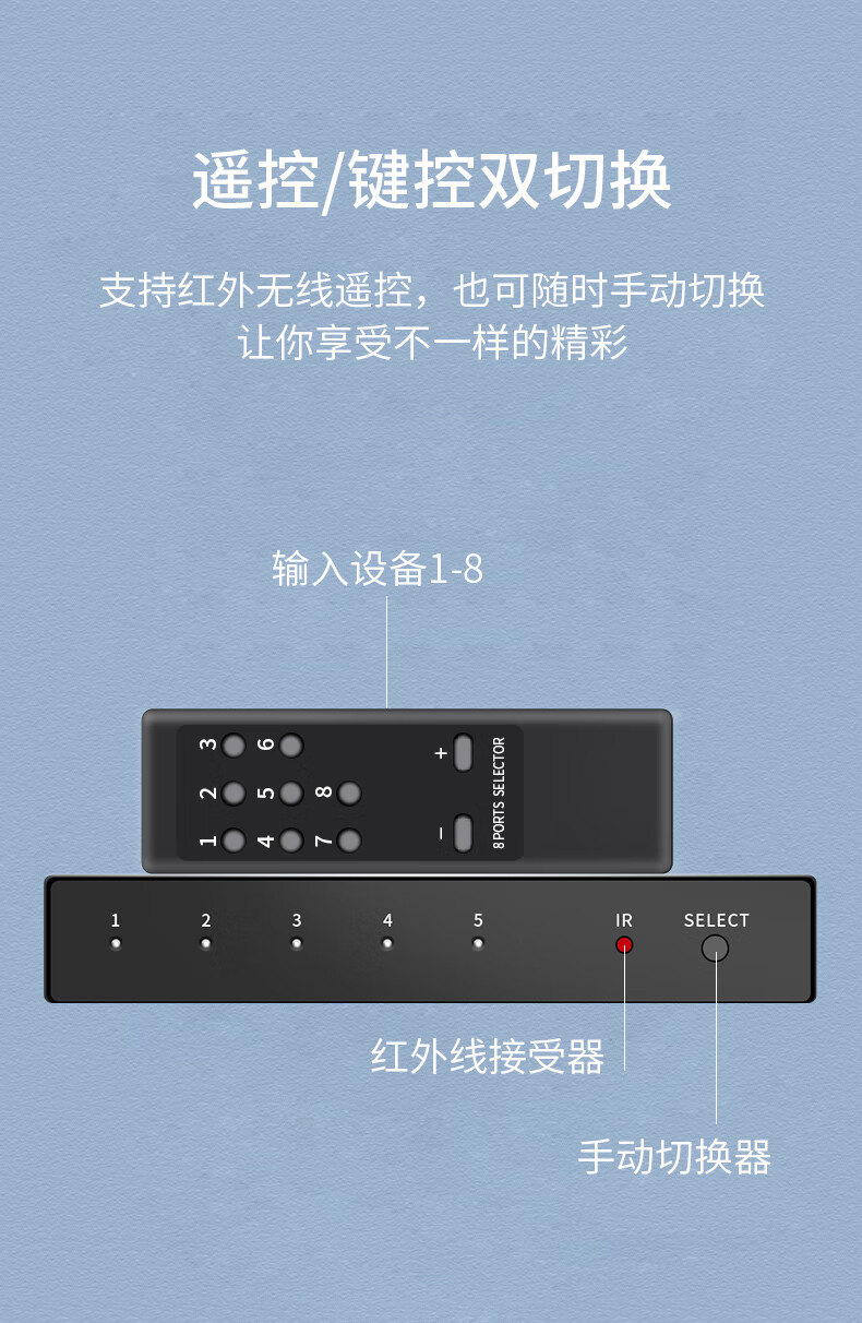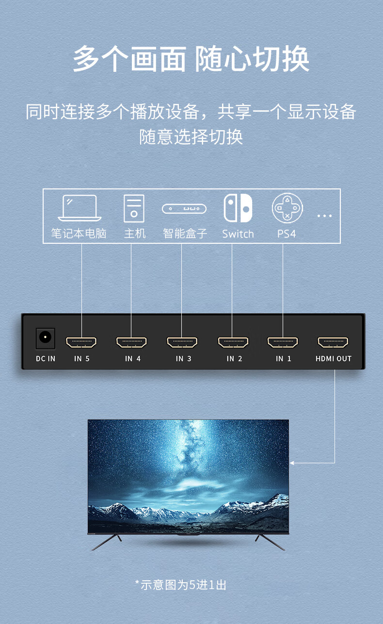 网影 商用多路hdmi切换器二进一出 4K高清视频切屏器 2进1出笔记本电脑智能盒子接电视投影机 16进1出