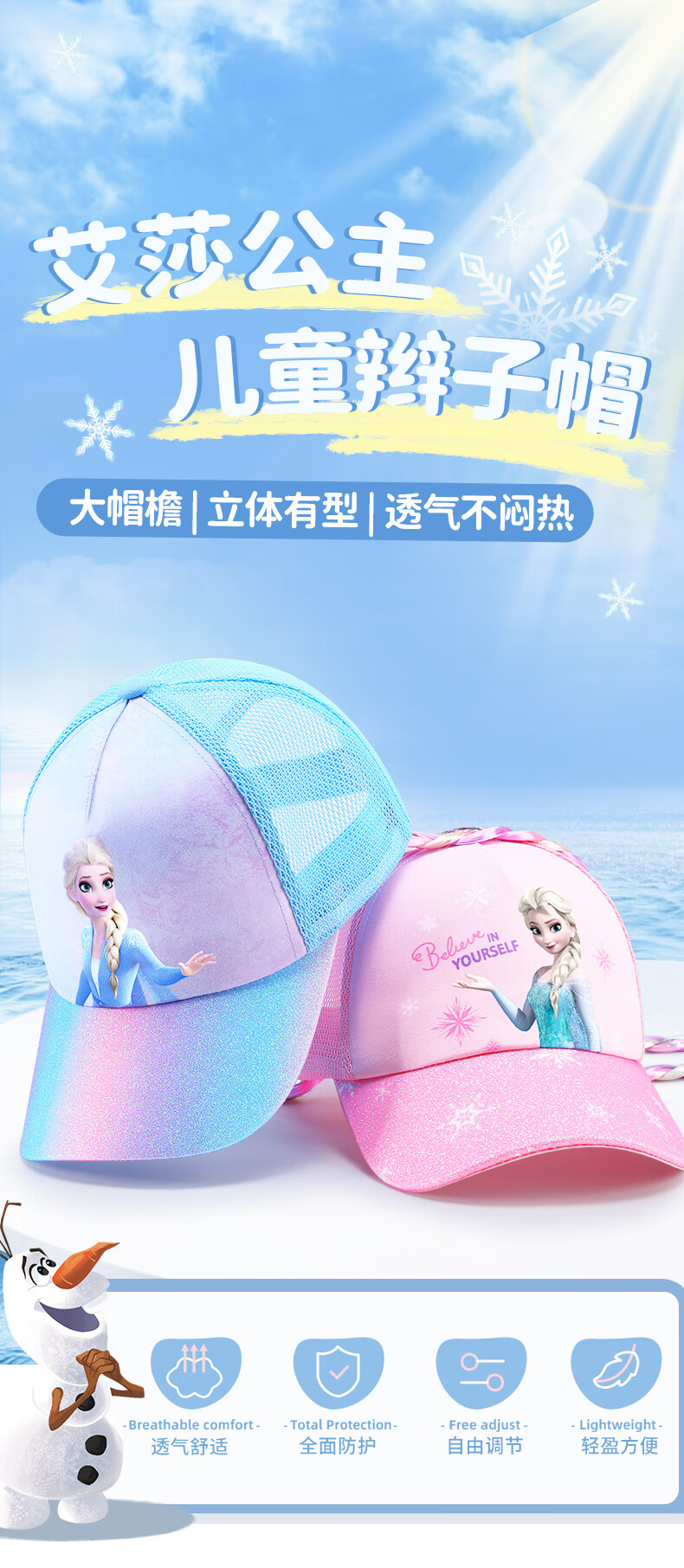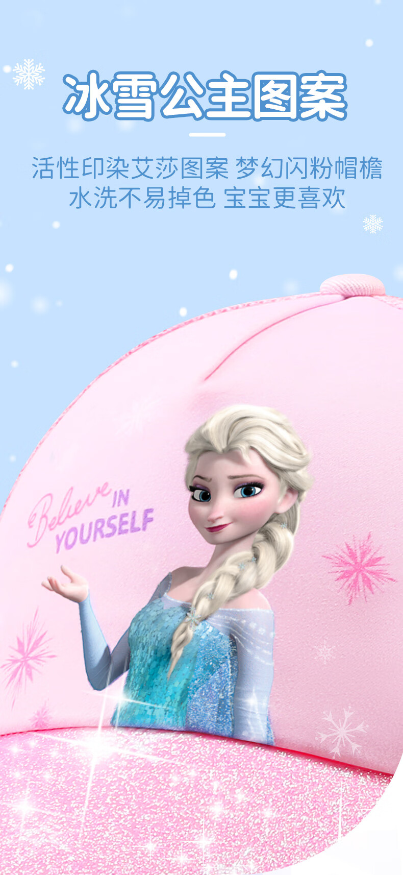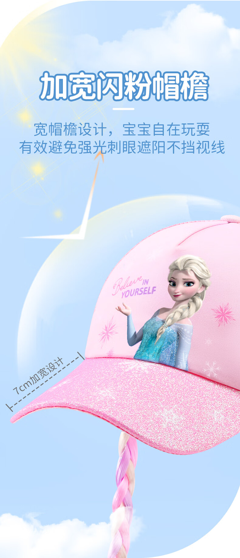 迪士尼(Disney)爱莎公主儿童帽子女孩夏季女童2025新款辫子帽鸭舌帽遮阳帽帽 【艾莎公主】辫子帽紫色 适合3以上
