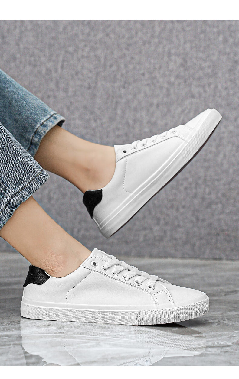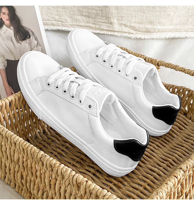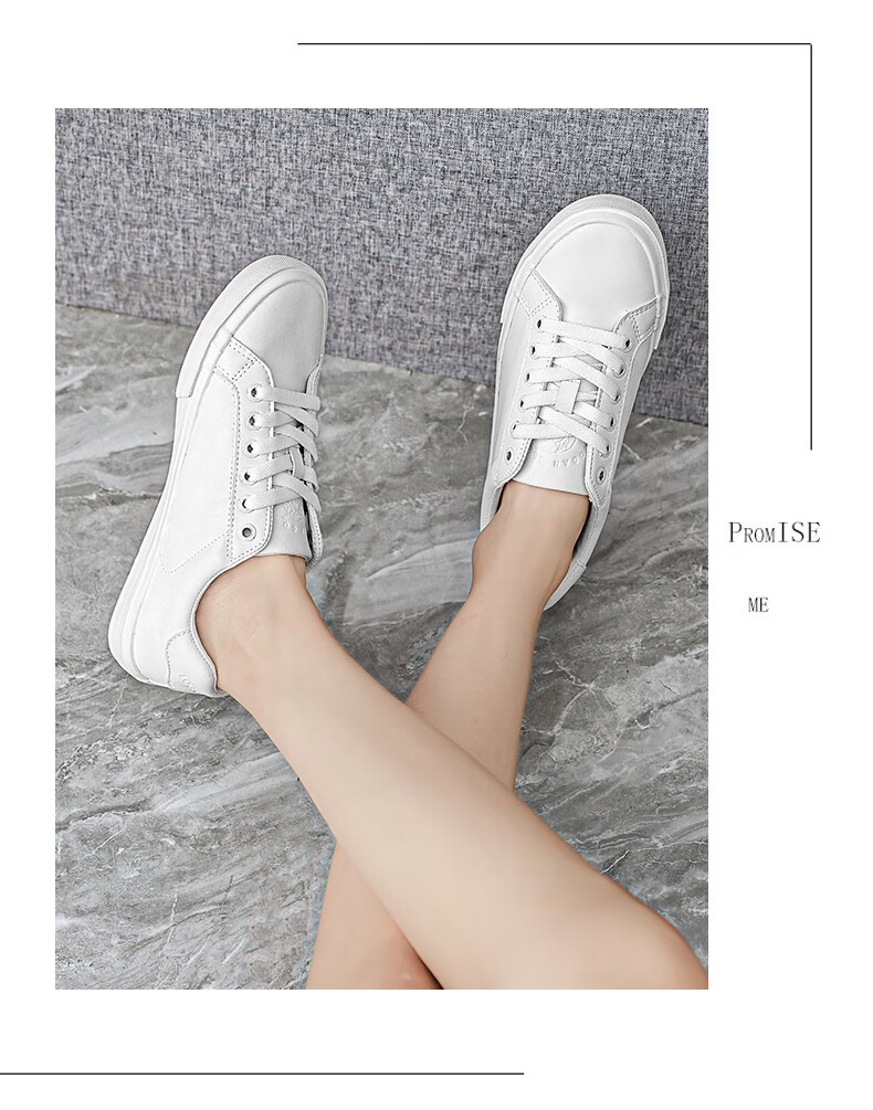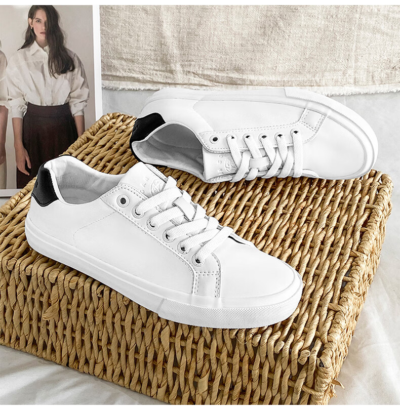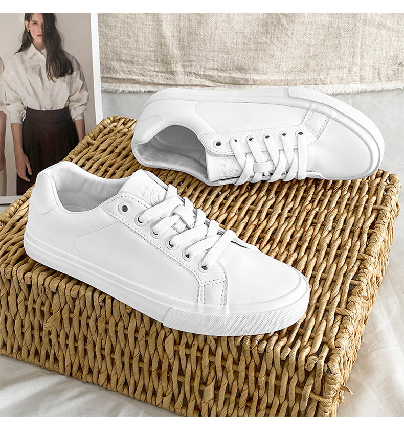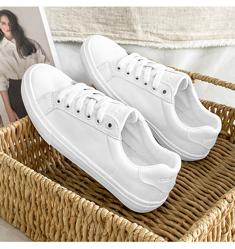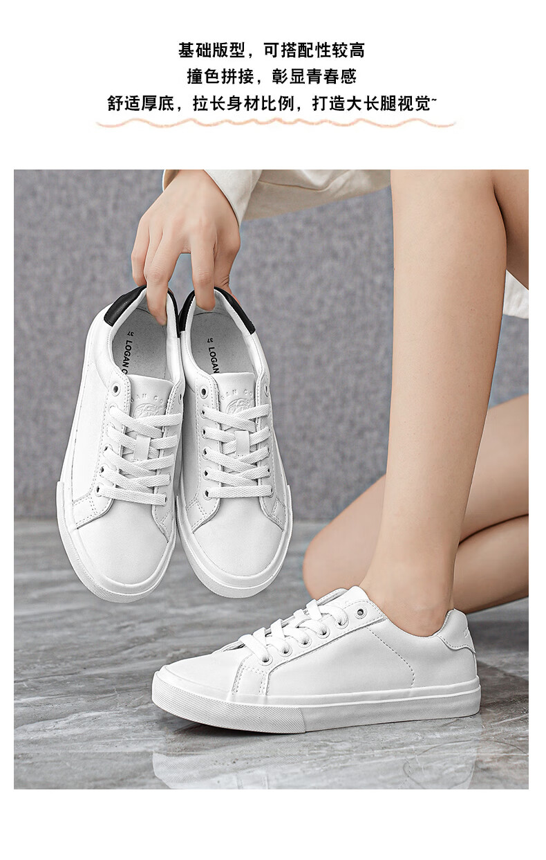 LOGAN COWES春夏潮搭板鞋系带小白鞋真皮百搭韩版平底鞋透气休闲单鞋 白色 36