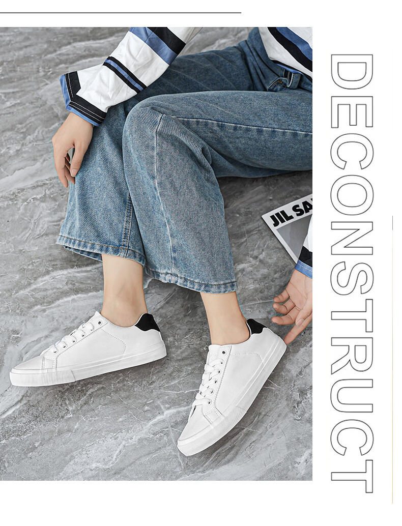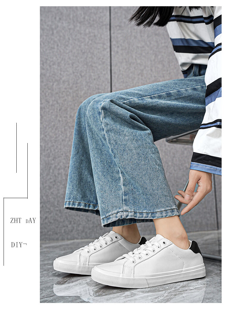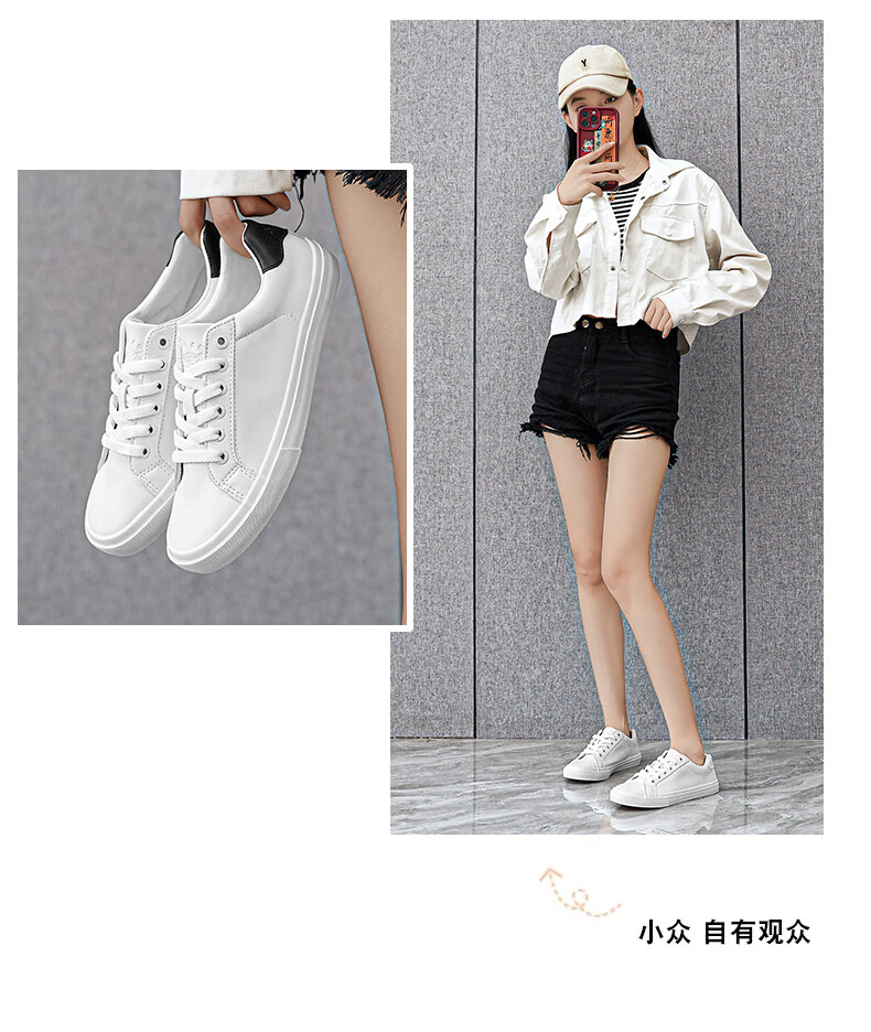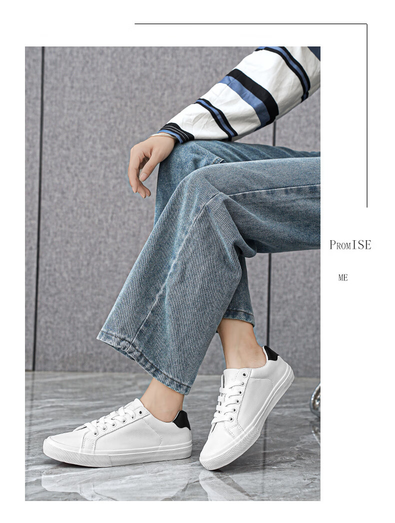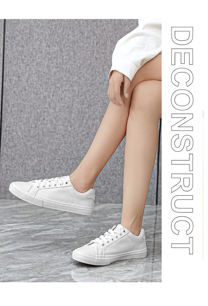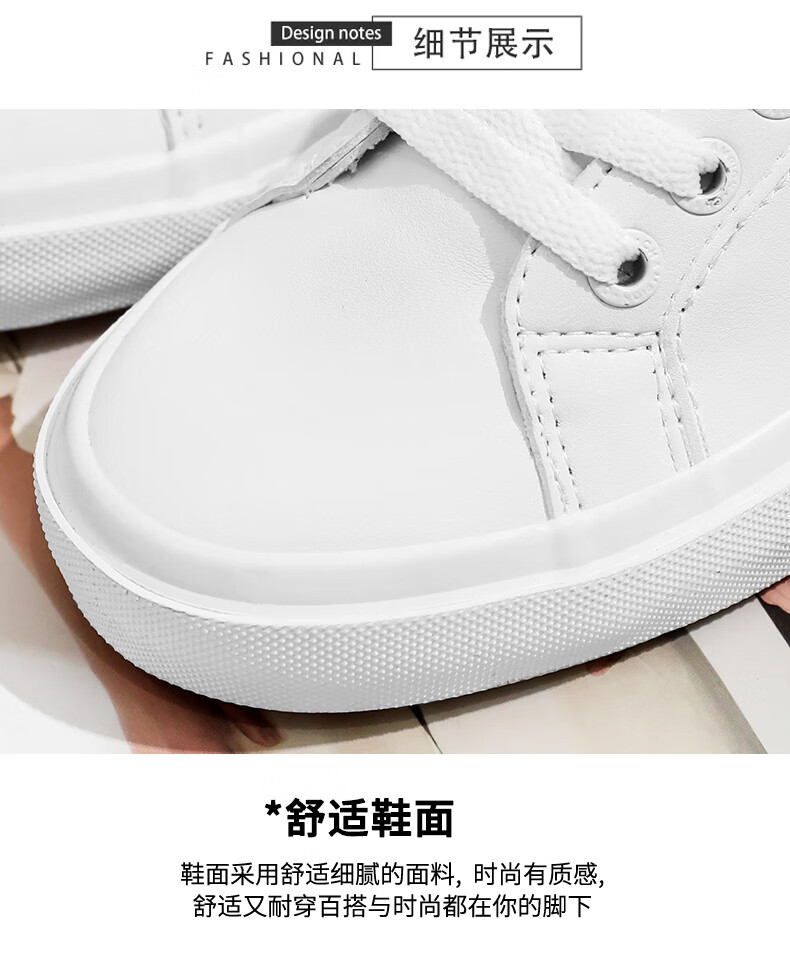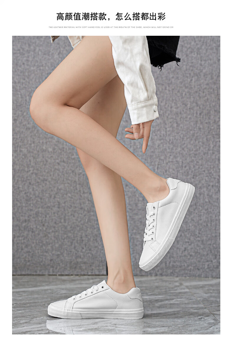 LOGAN COWES春夏潮搭板鞋系带小白鞋真皮百搭韩版平底鞋透气休闲单鞋 白色 36