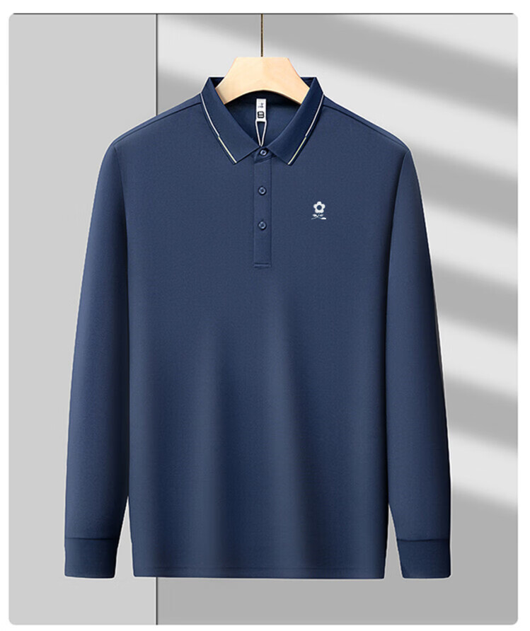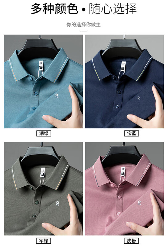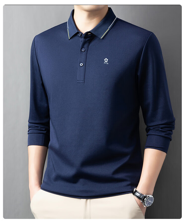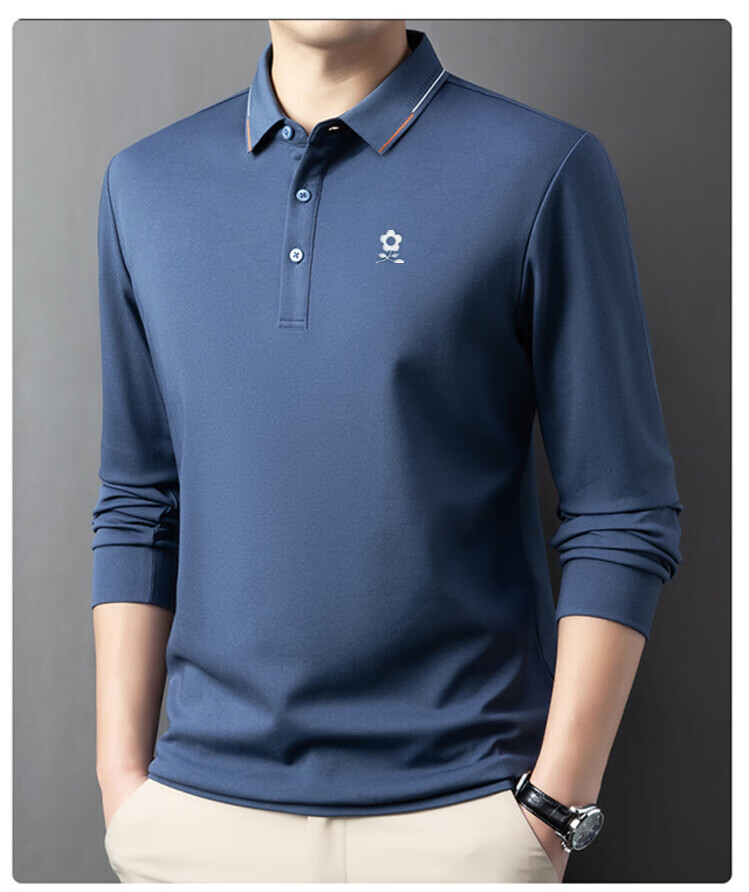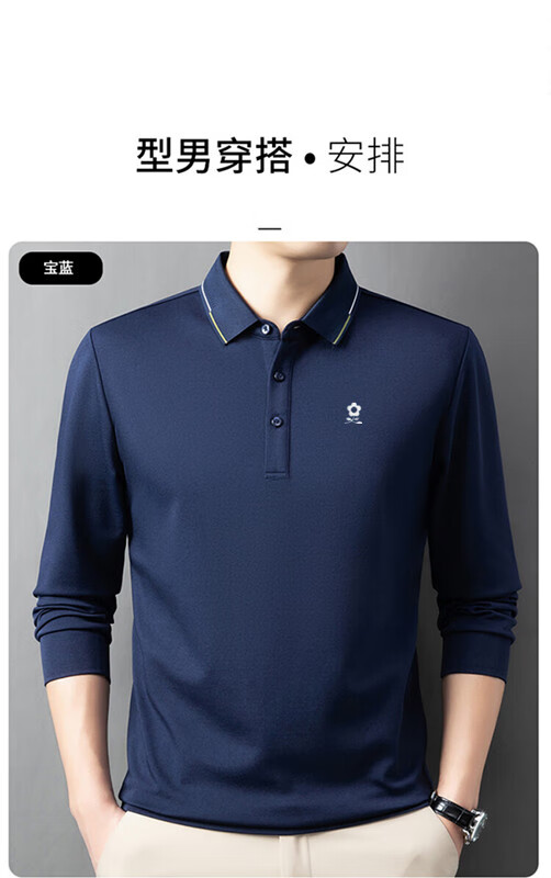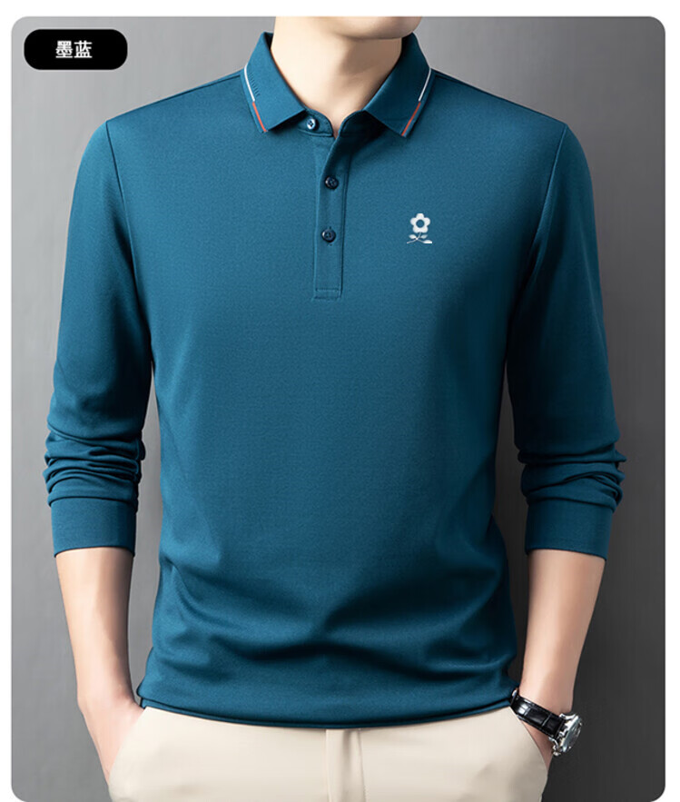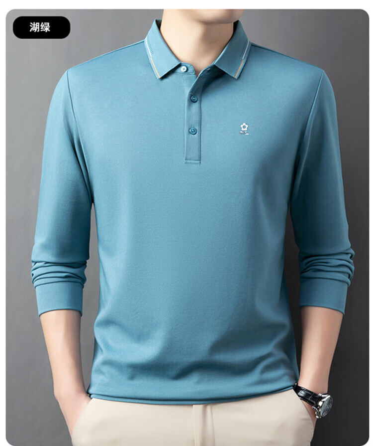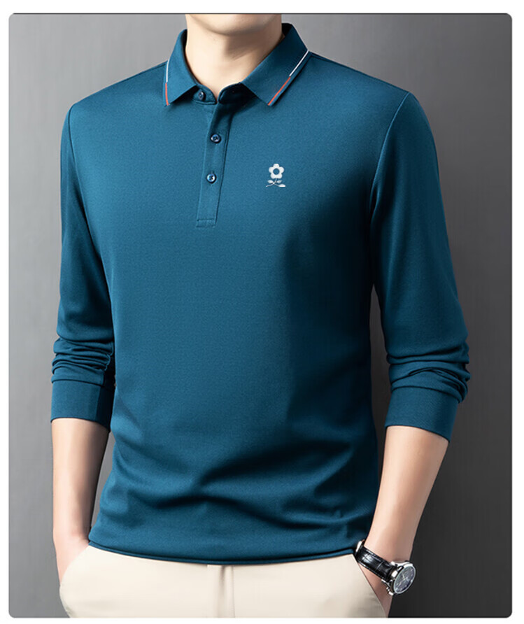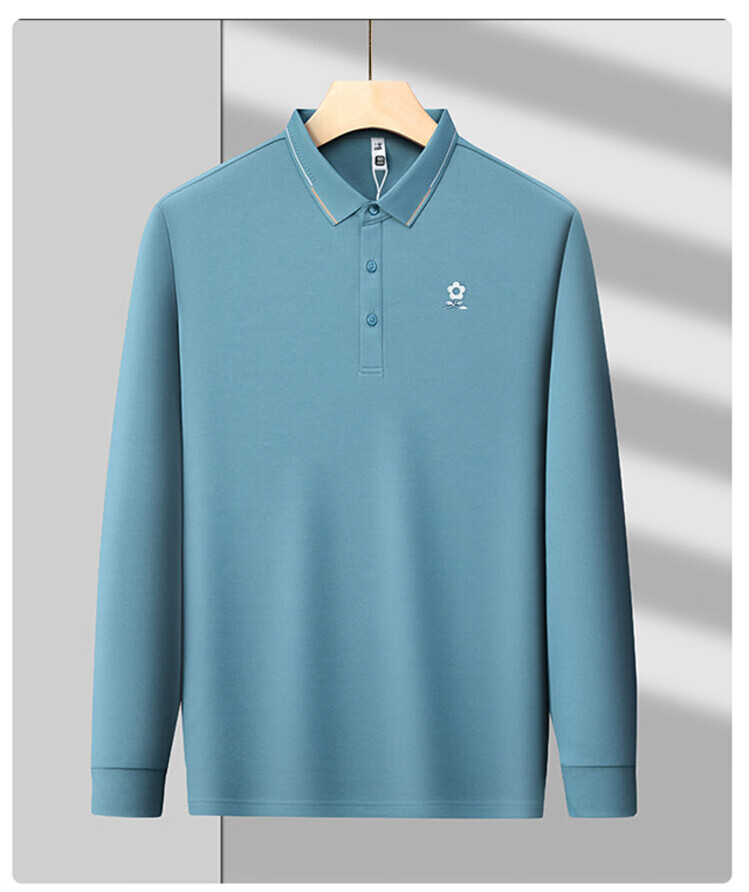 梦特娇(MONTAGUT)长袖t恤男士翻领桑蚕丝中老年爸爸春秋款宽松打底polo衫 湖兰 4XL 190建议(180-200斤)