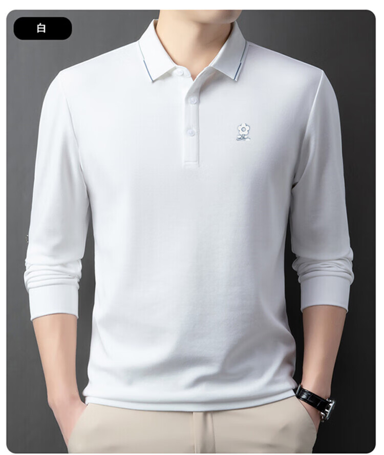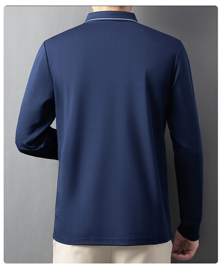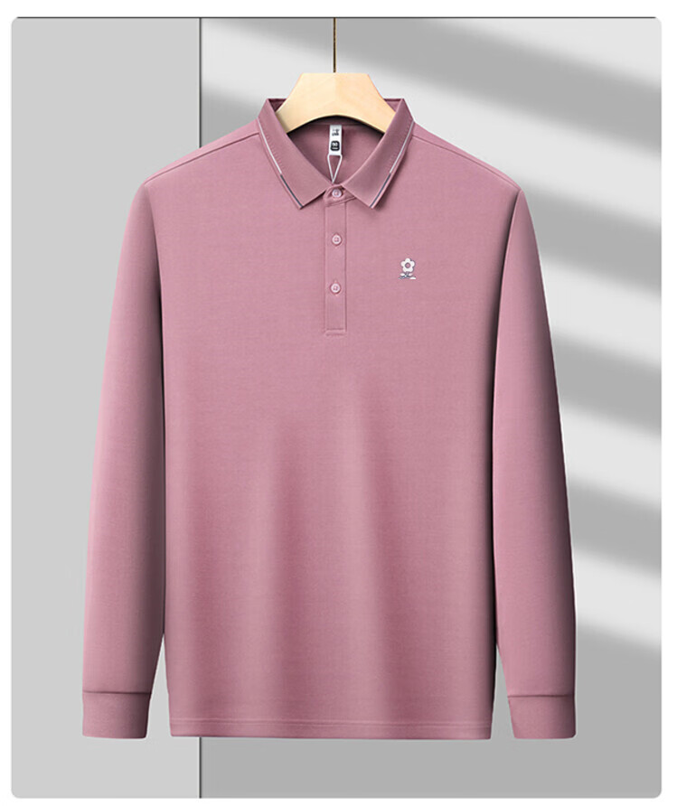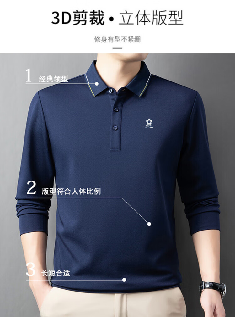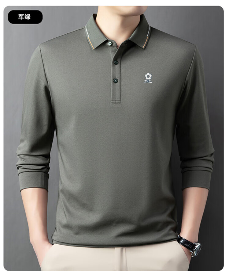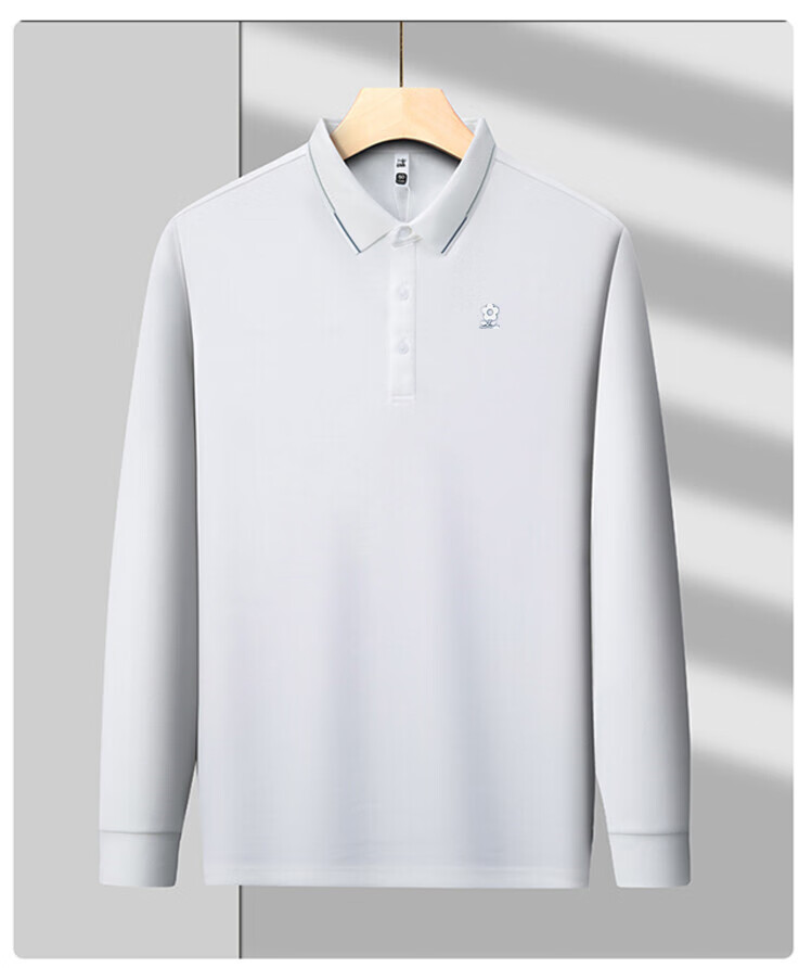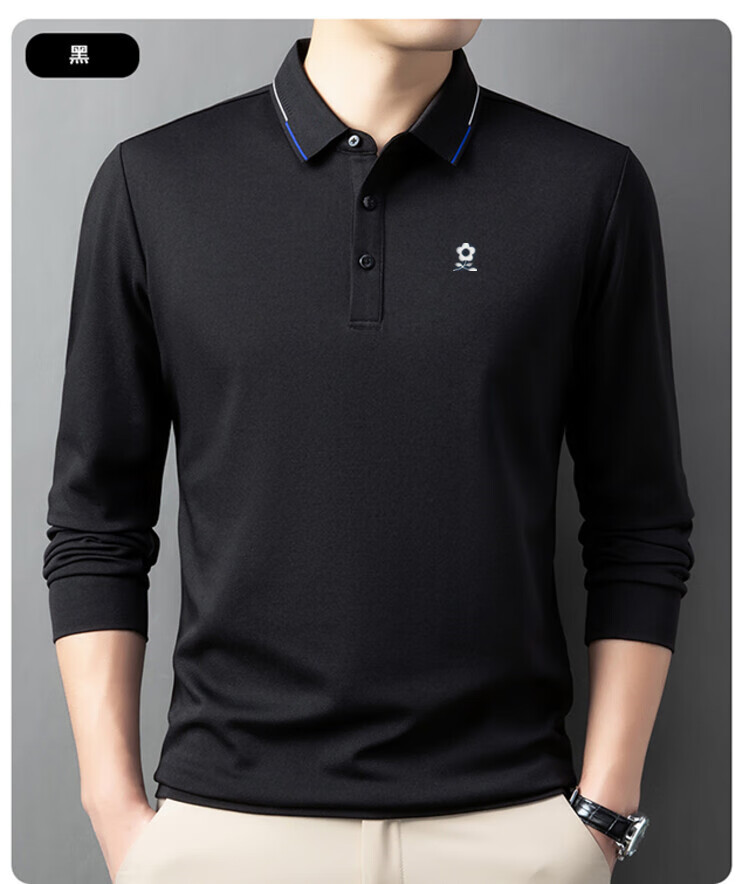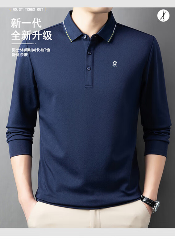 梦特娇(MONTAGUT)长袖t恤男士翻领桑蚕丝中老年爸爸春秋款宽松打底polo衫 湖兰 4XL 190建议(180-200斤)