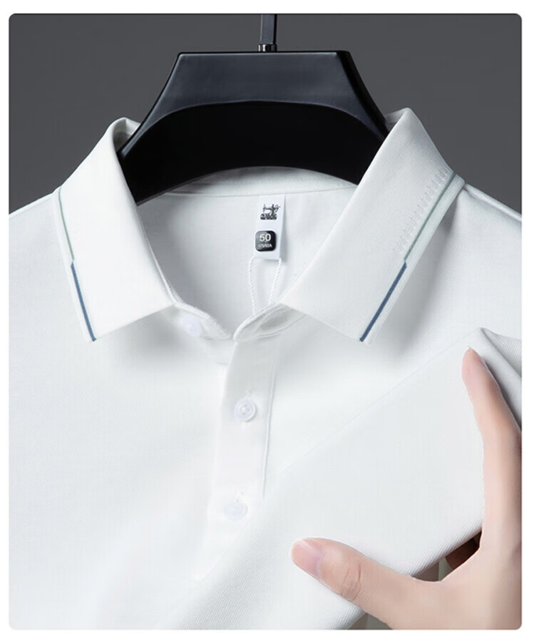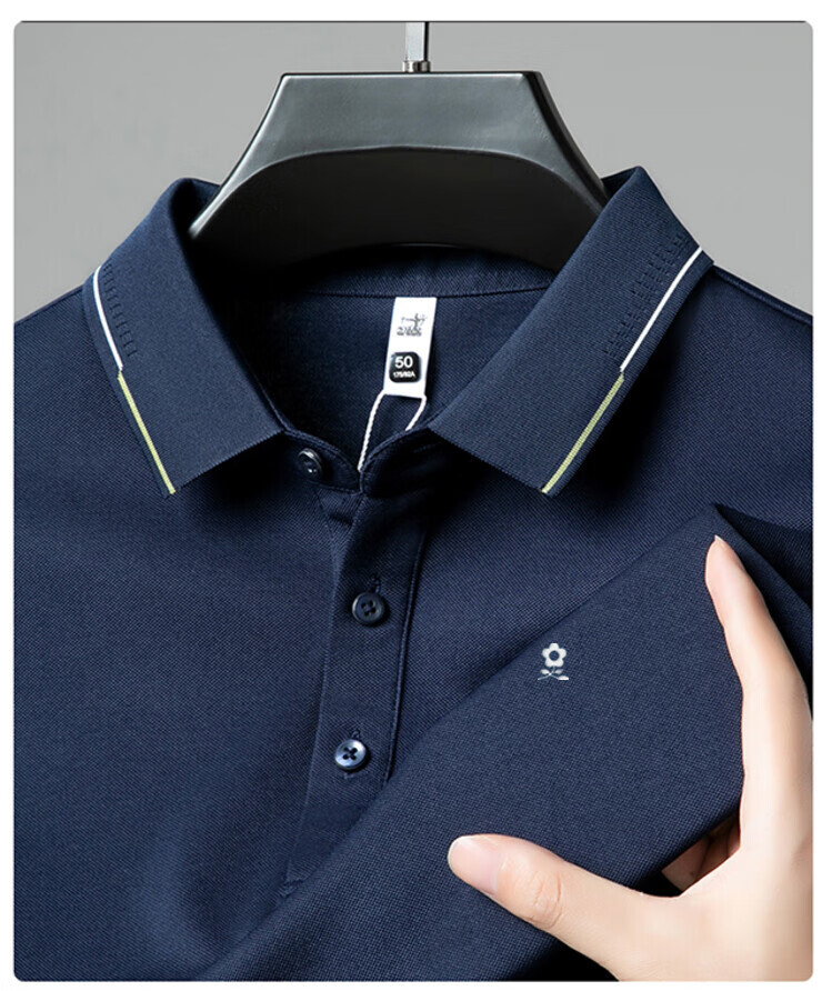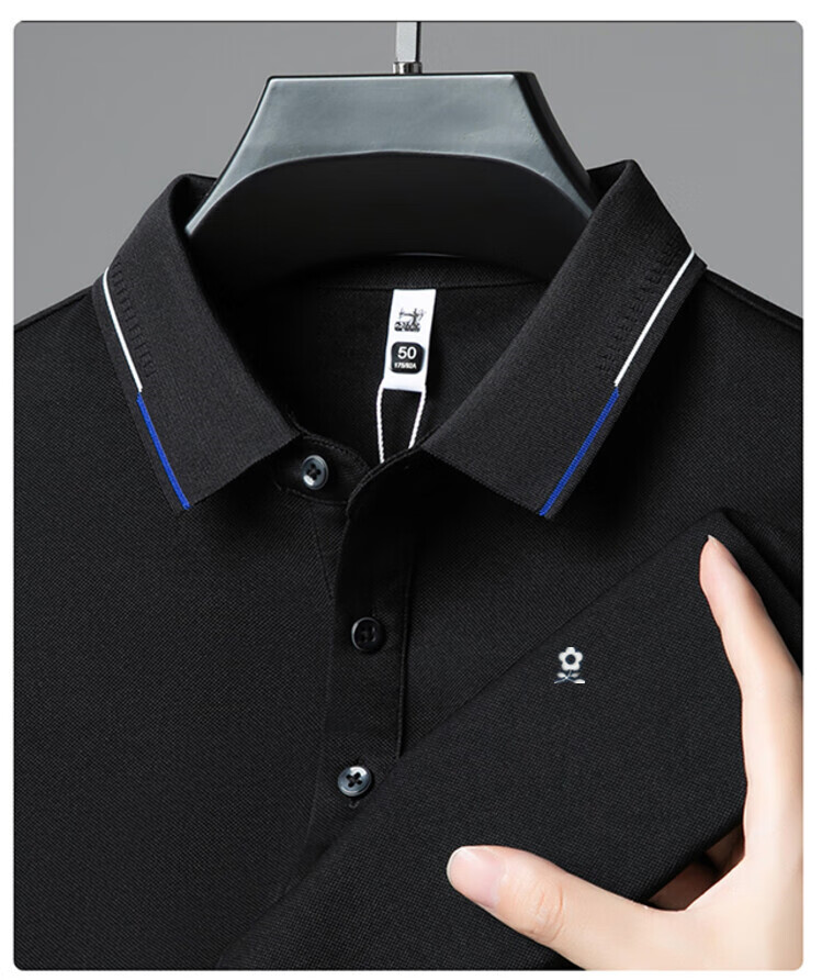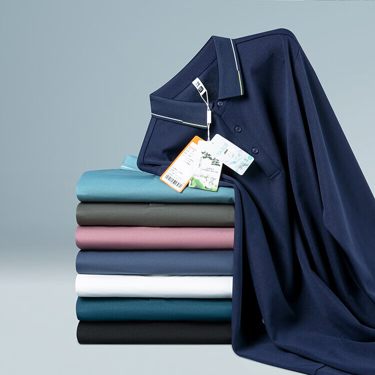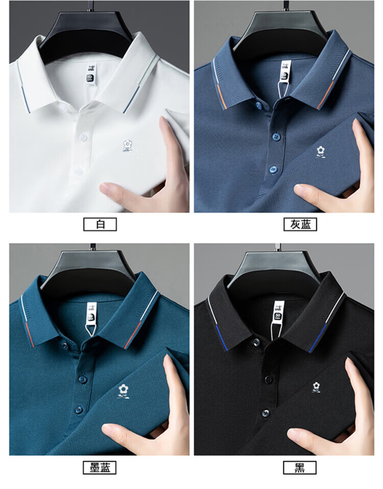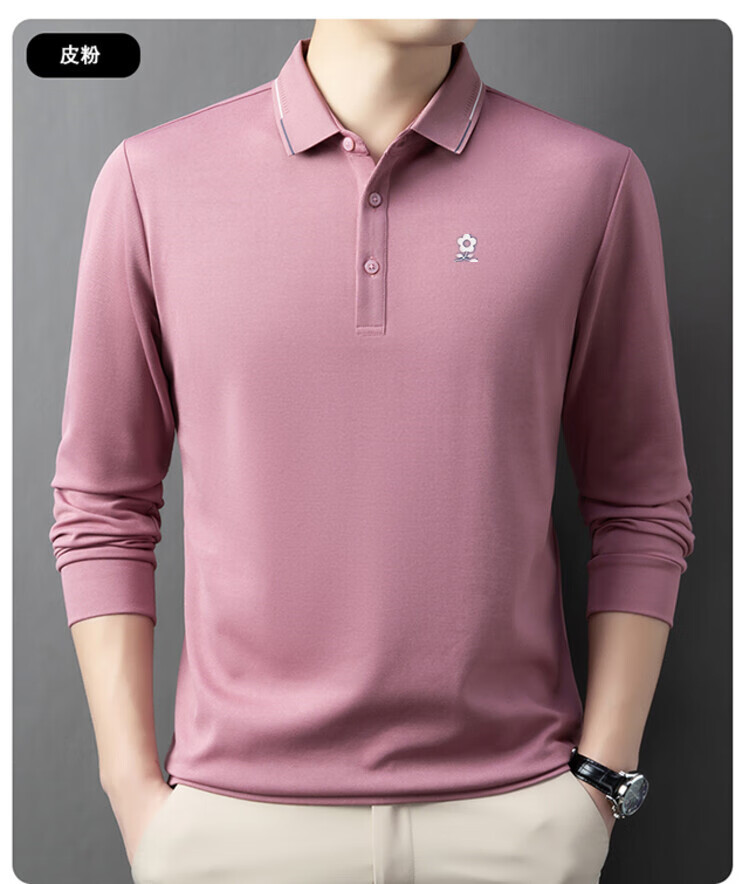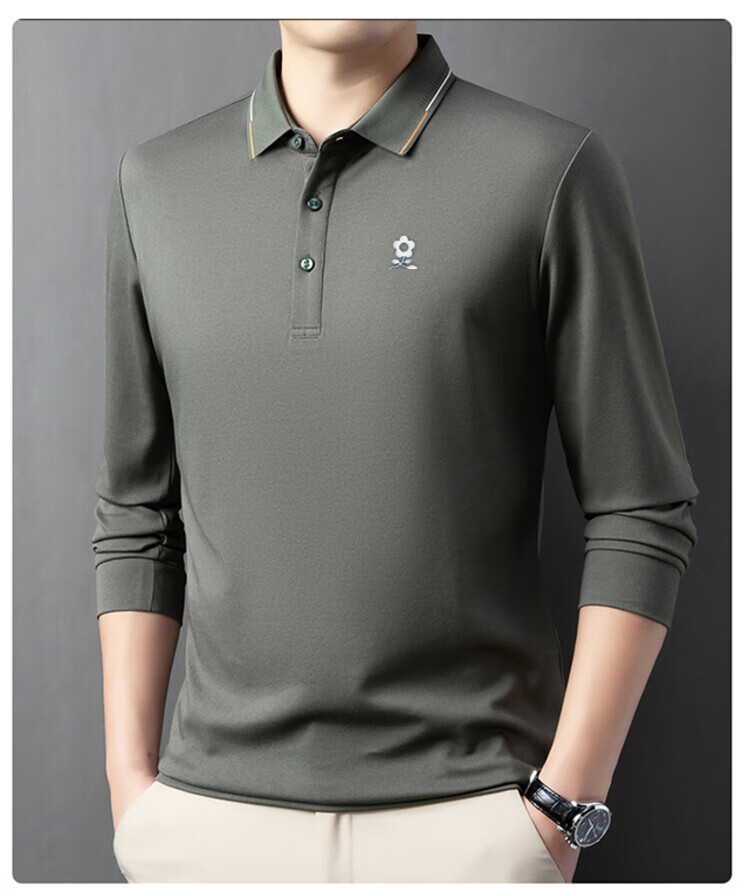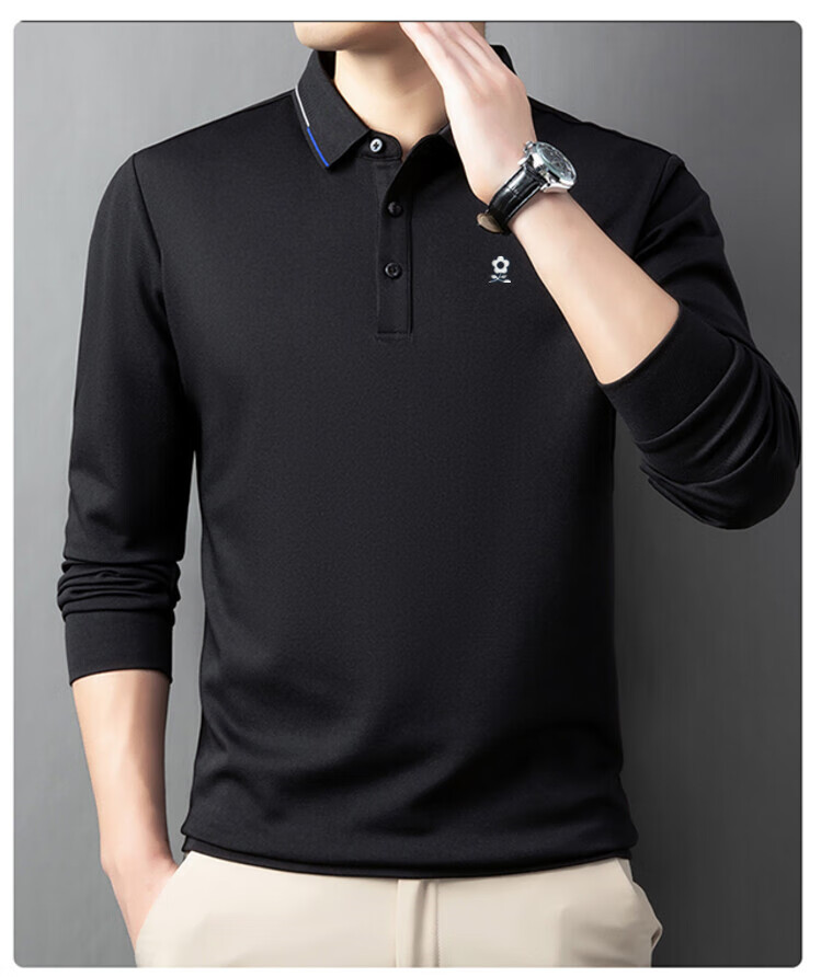 梦特娇(MONTAGUT)长袖t恤男士翻领桑蚕丝中老年爸爸春秋款宽松打底polo衫 湖兰 4XL 190建议(180-200斤)
