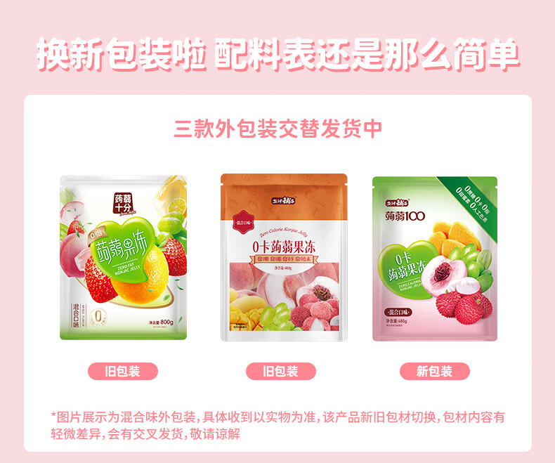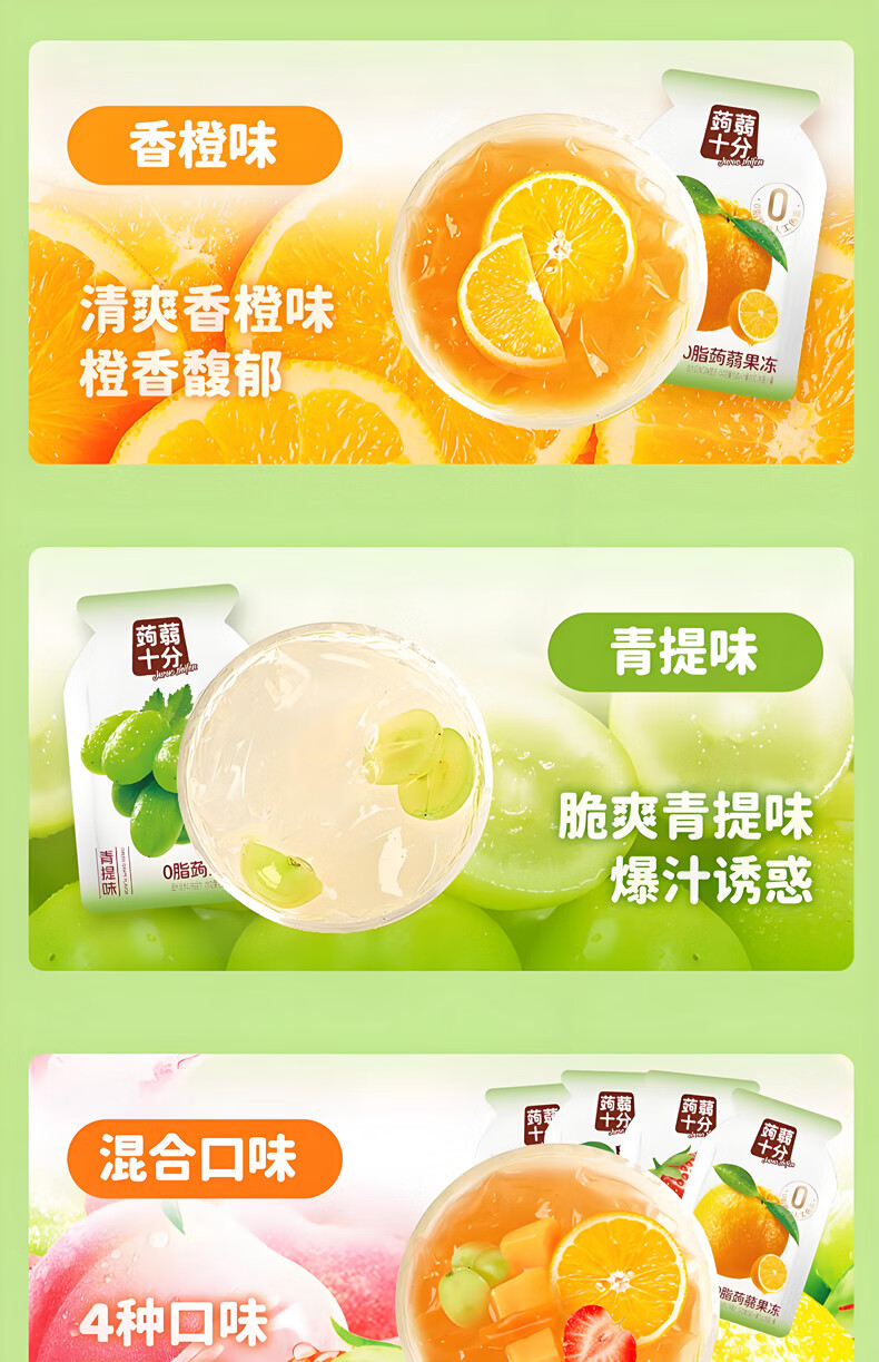 盐津铺子蒟蒻果冻0脂0添加零食小吃 休闲食品解馋吸吸冻独立包装儿童果冻 混合味【共1600g约160包】