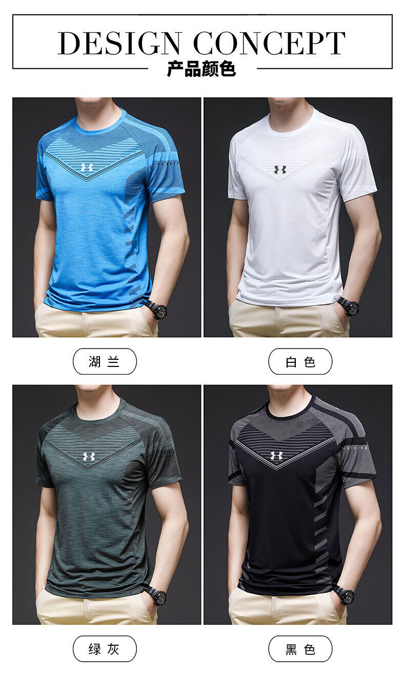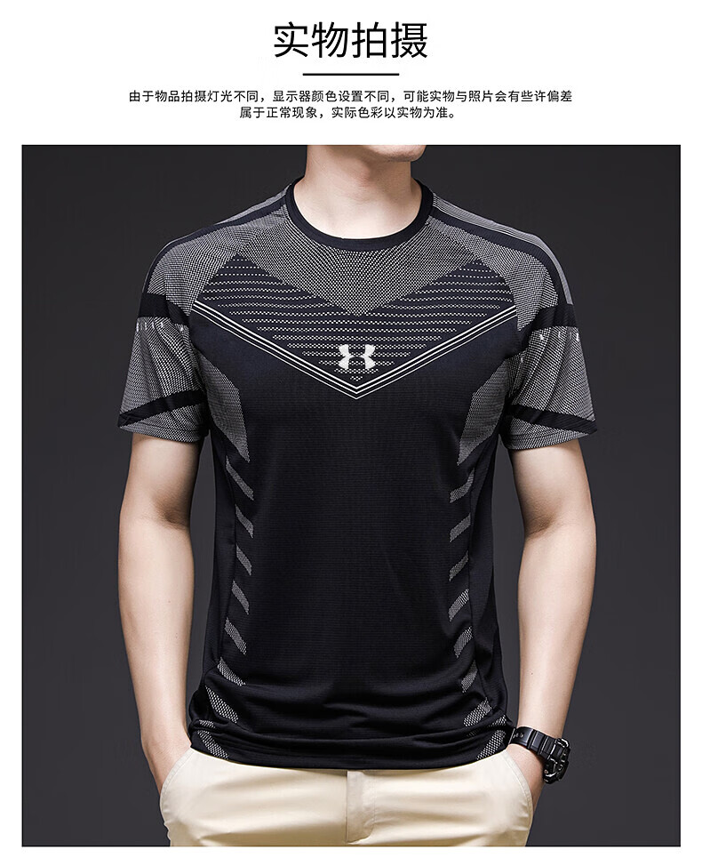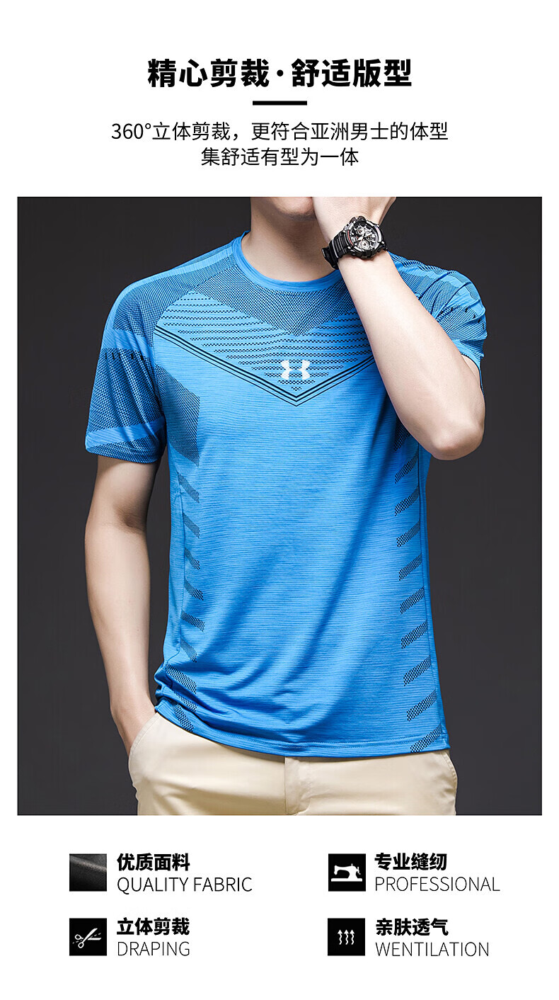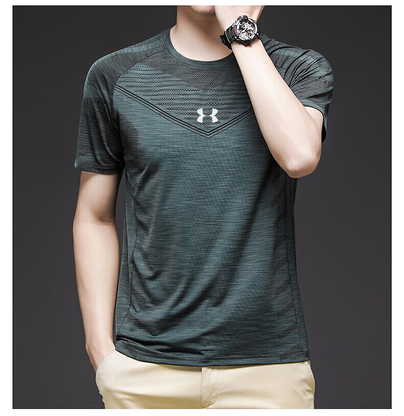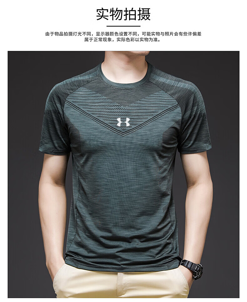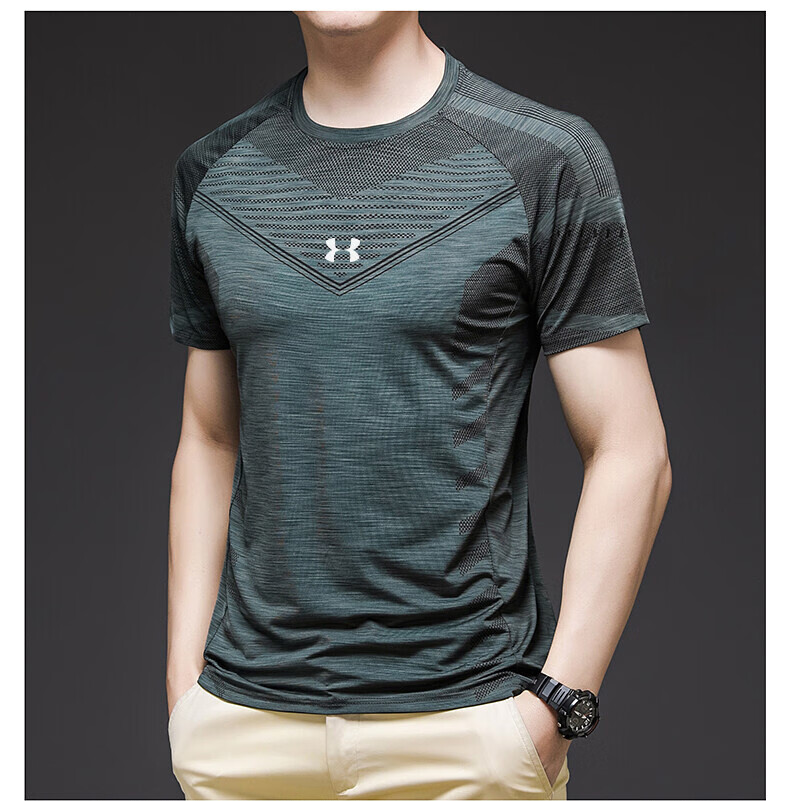 运动短袖t恤男冰丝跑步健身速干衣男士圆领上衣夏季宽松半袖体恤 UA702063绿灰 3XL(170-185斤)